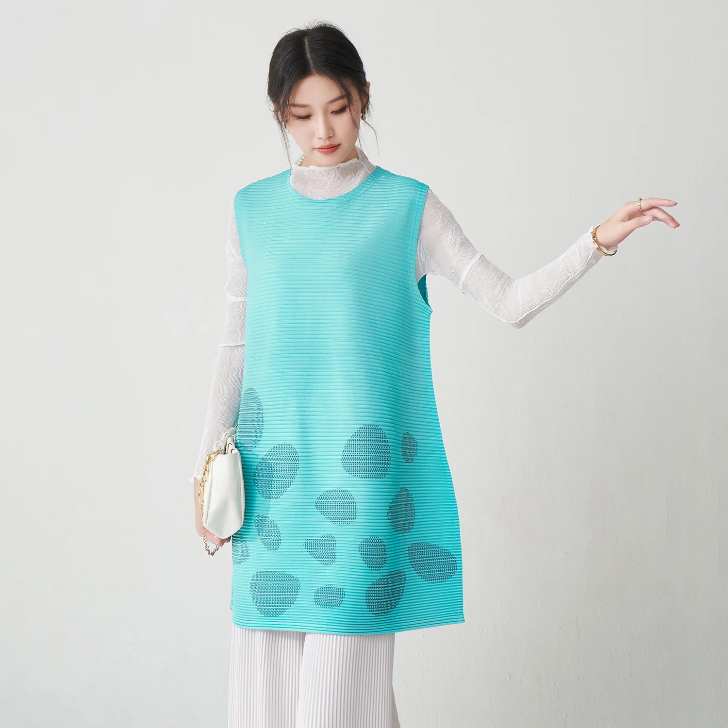 2025 Newest Design Women's Elegant Tops High Quality Summer Women's Sleeveless Shirts Pleated Printed Casual T-shirts