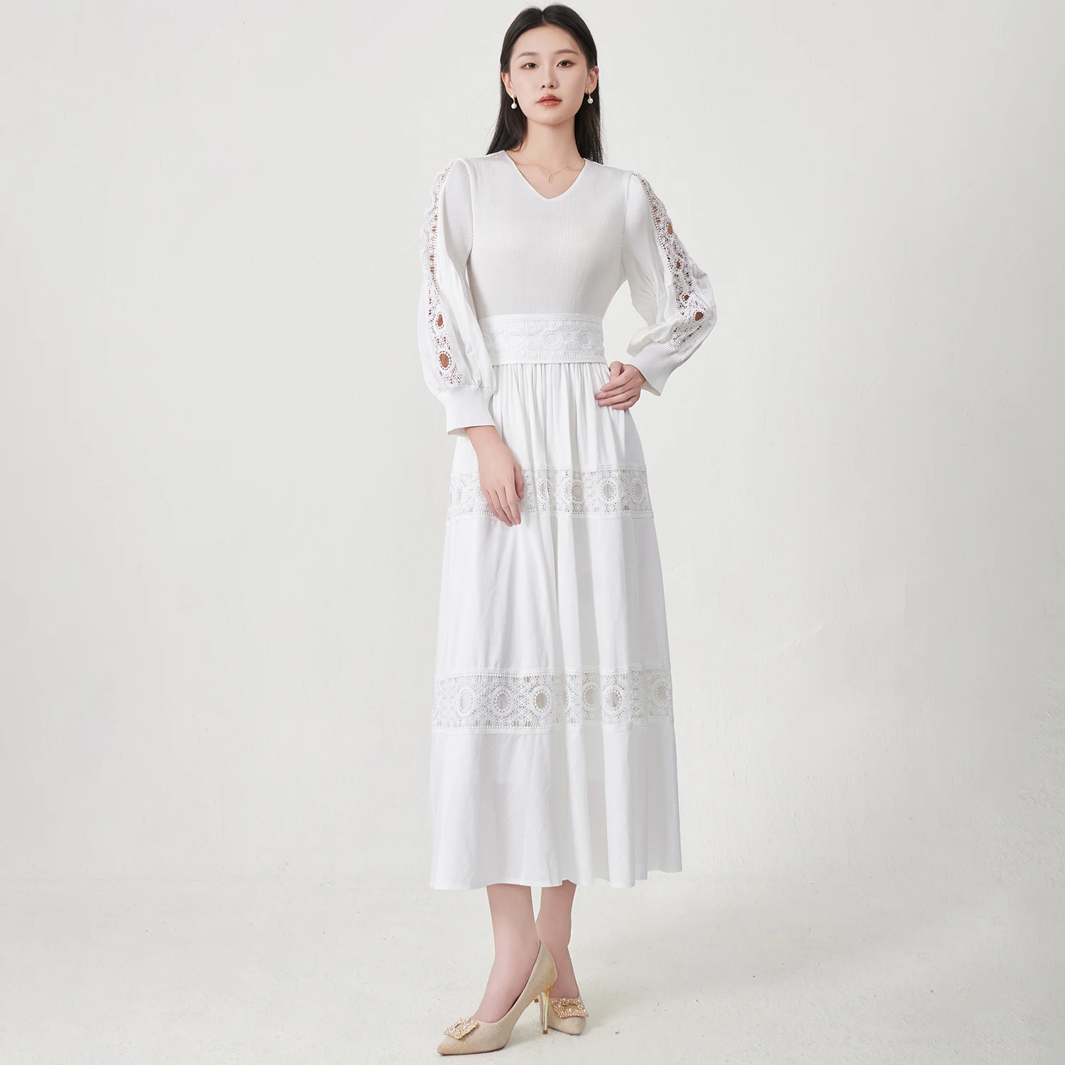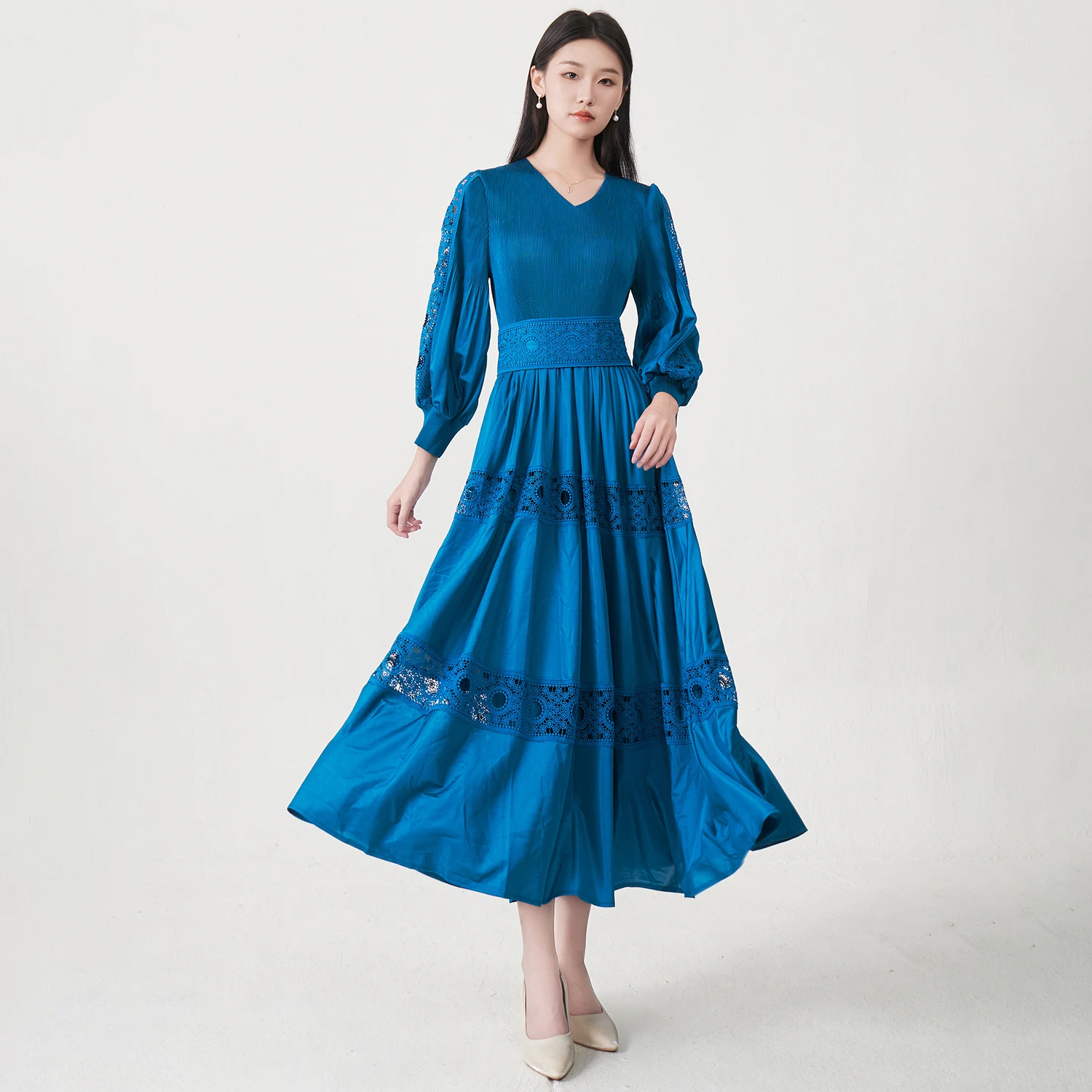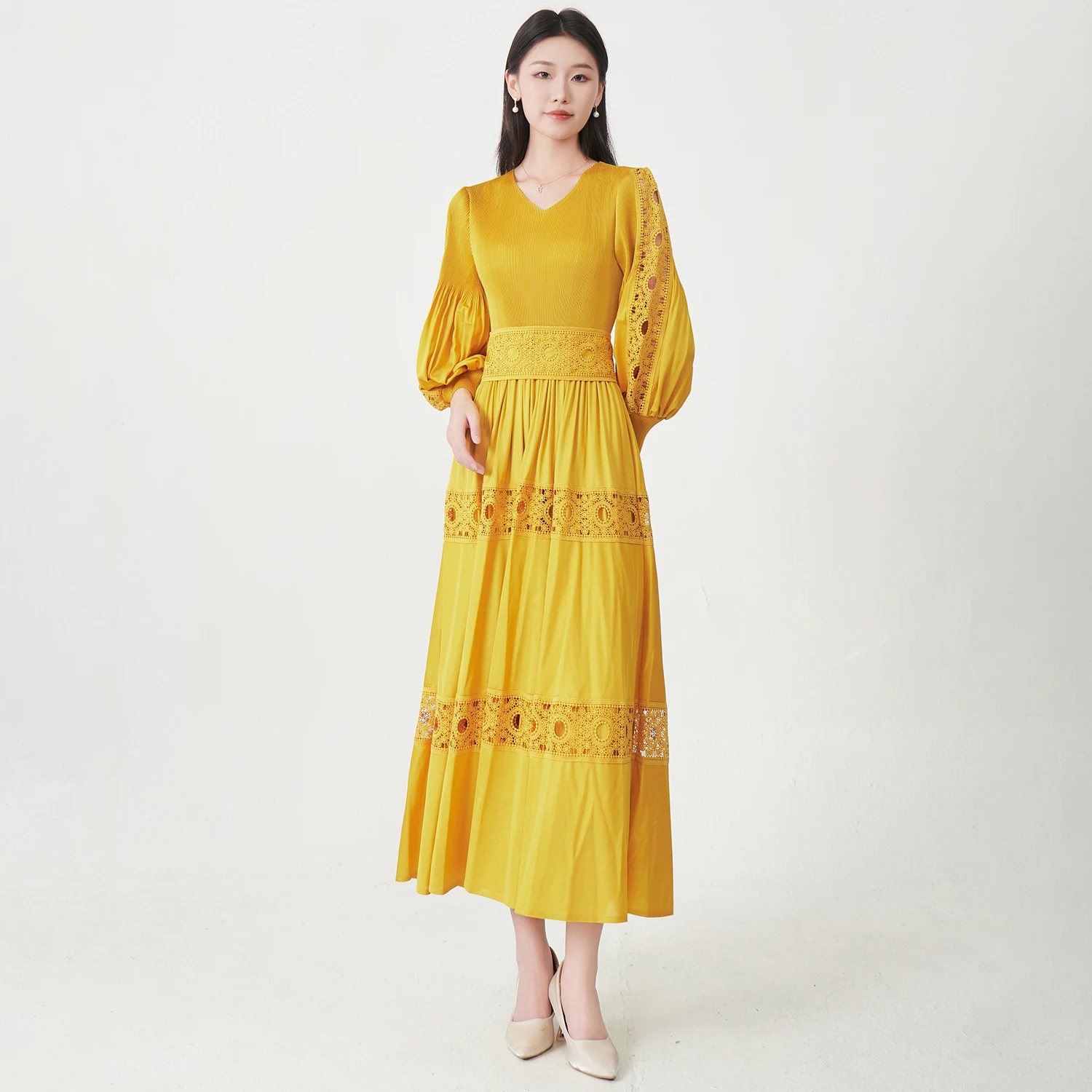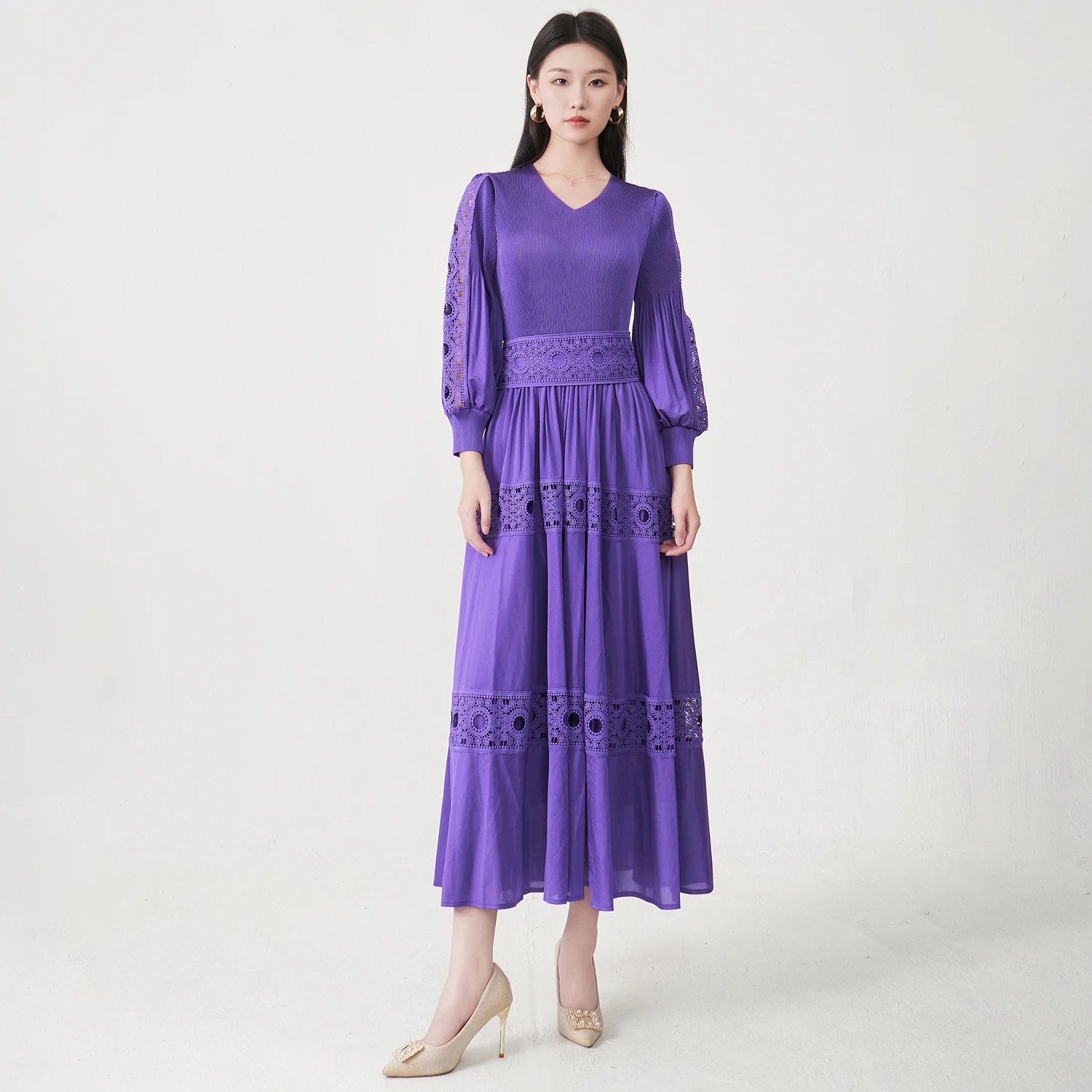 Direct From the Factory Miyake Pleated Dress Hollow Embroidery Dress Design Party Dress Women's Elegant Dresses