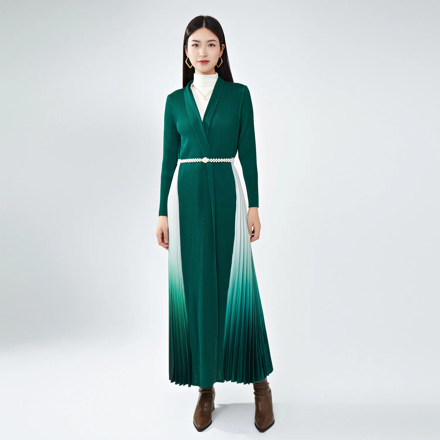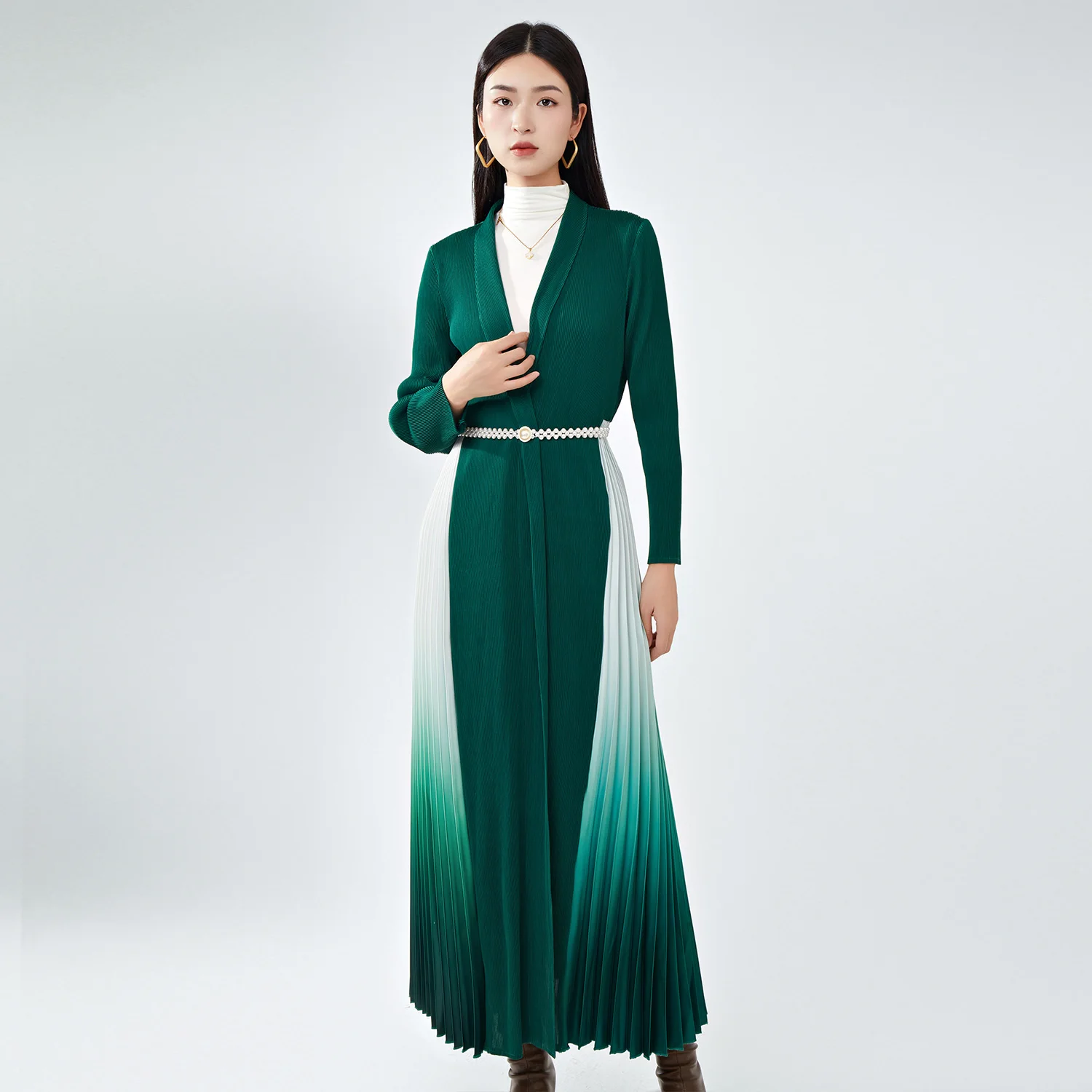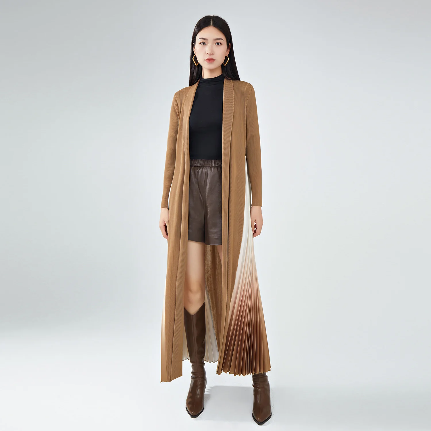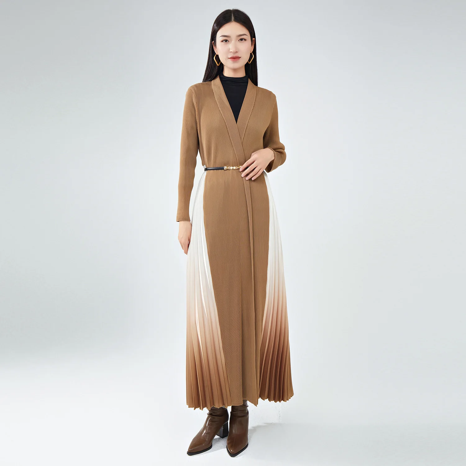 Hot Sale Factory Customized High Quality Gradient Color Designer Long Coat Splicing Pleated Robes