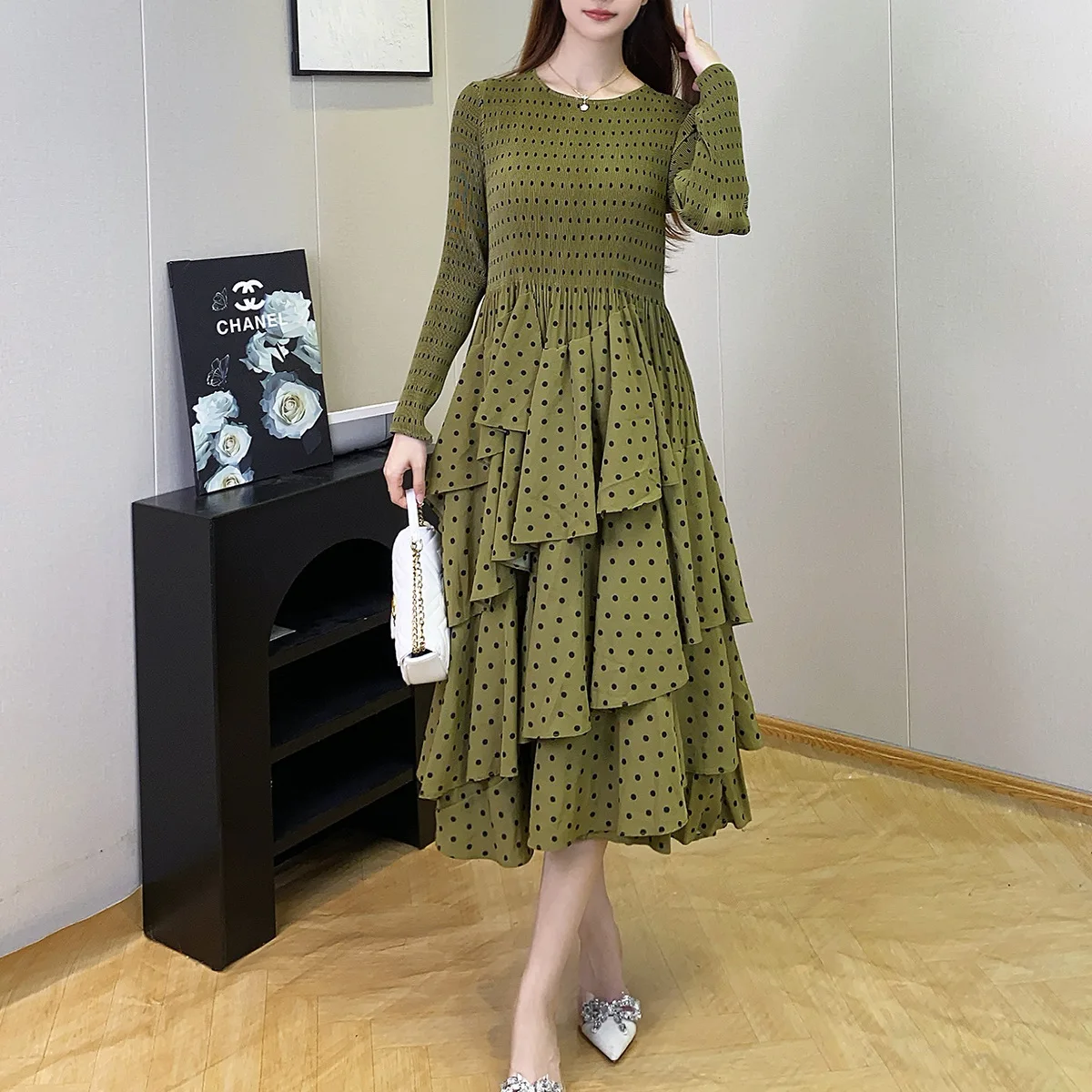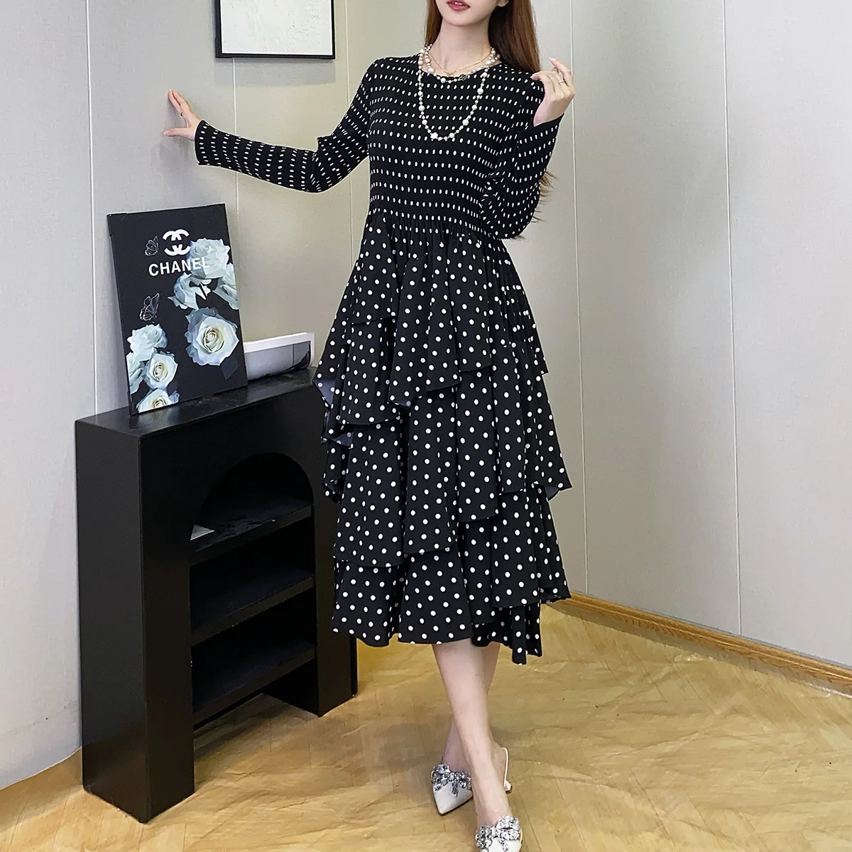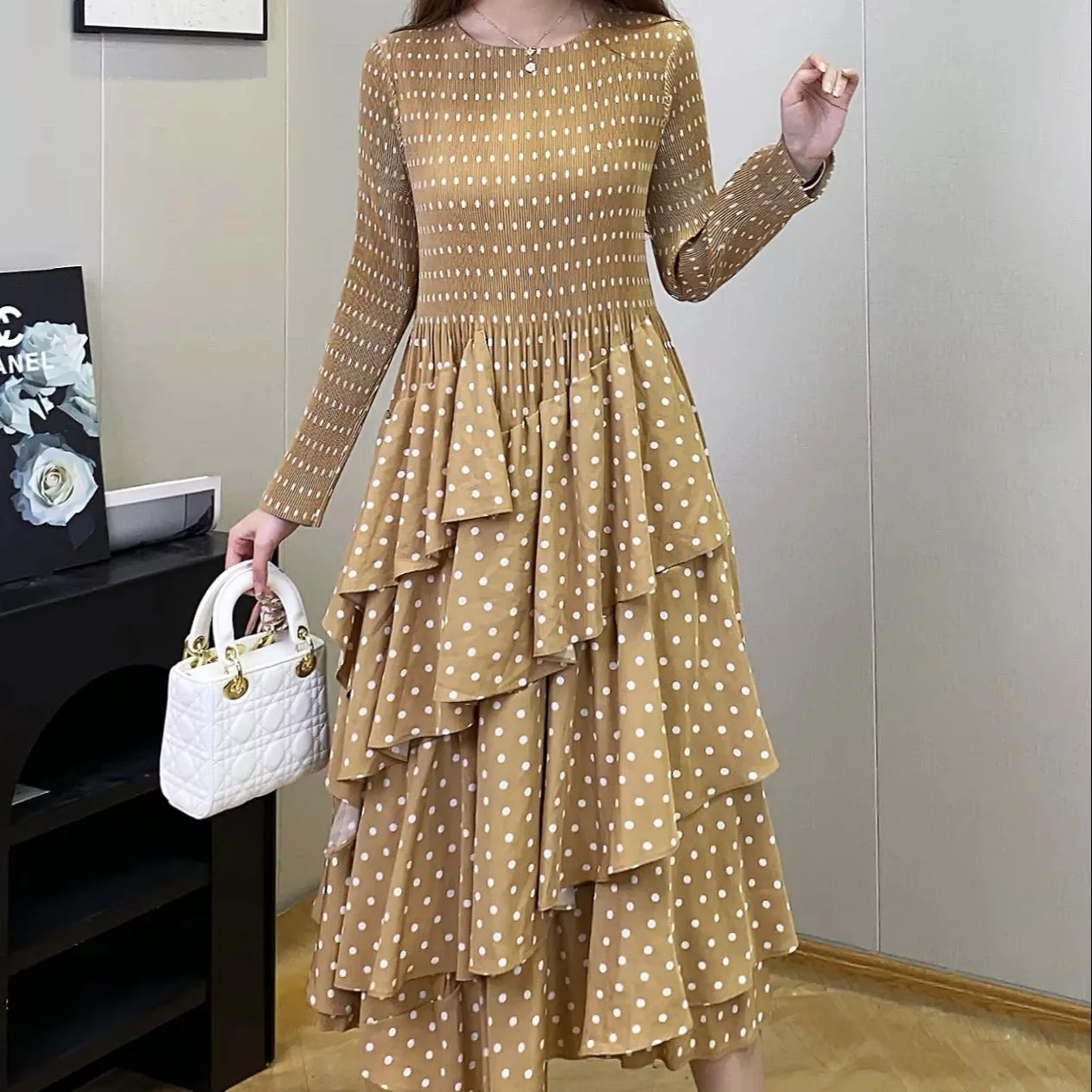 Factory Direct Bohemian Dress Autumn Long Sleeve Dress Polka Dot Cake Dress Design Midi Dress Women's Elegant Dresses