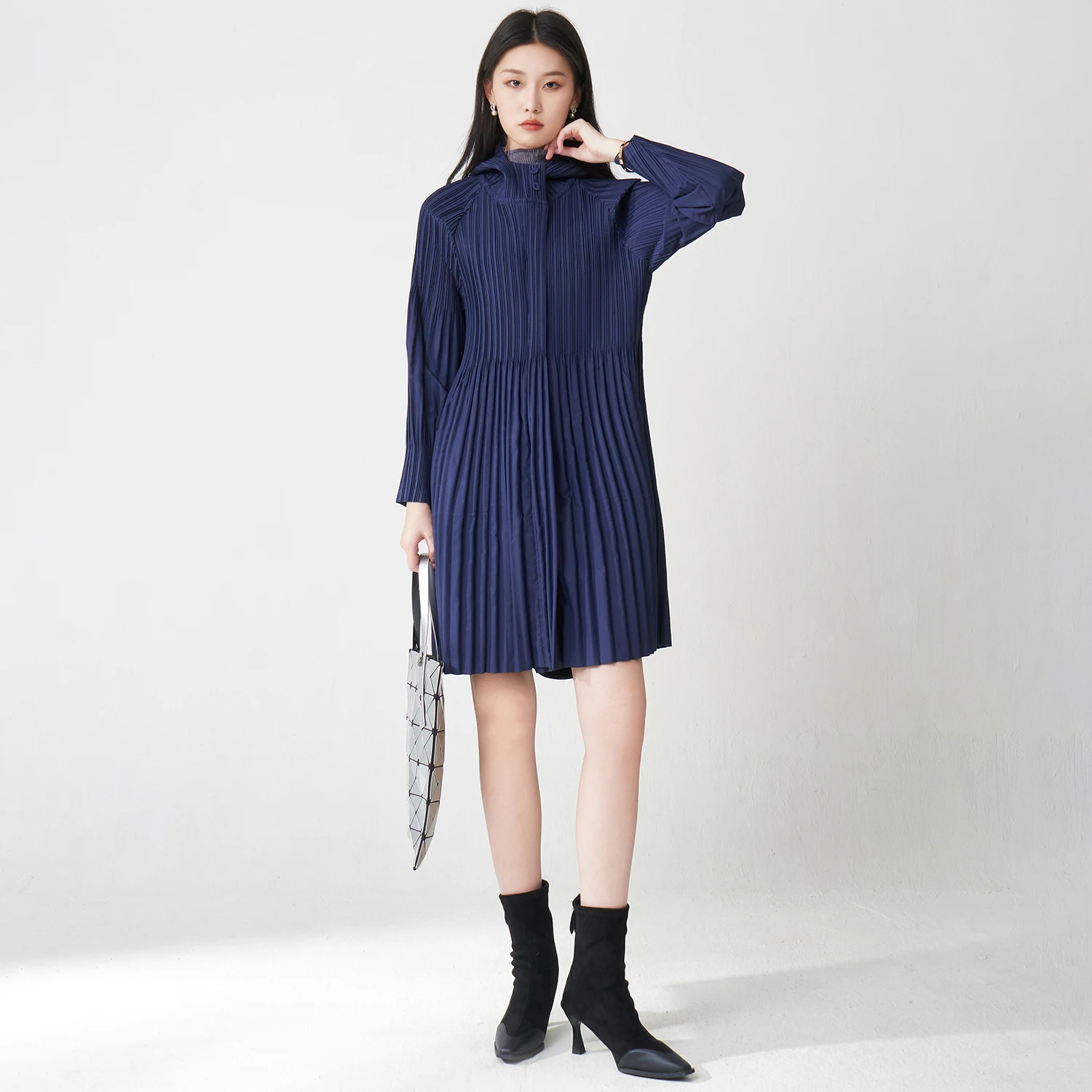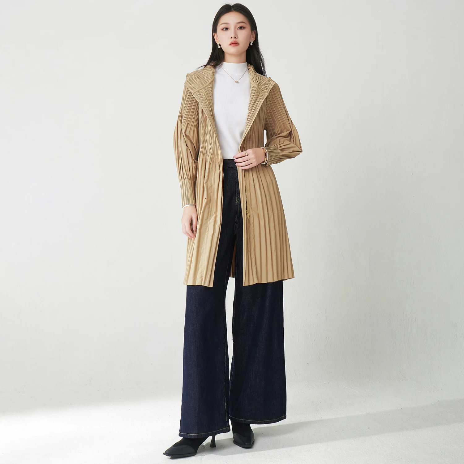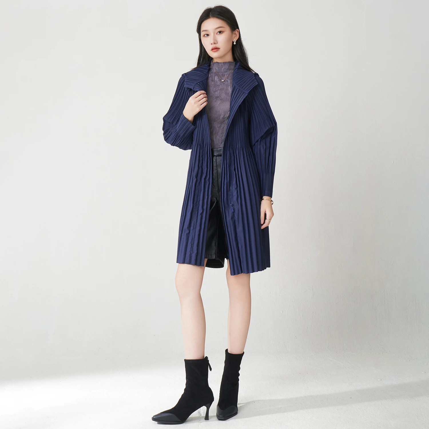2025 New Miyake Pleated Jacket Autumn Women's Fashion Coat Zipper Mid-Length Casual Windbreaker Factory Wholesale