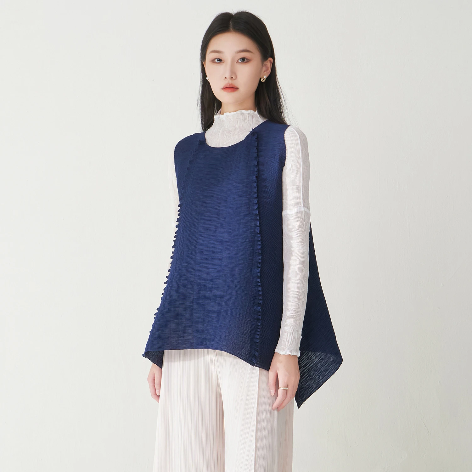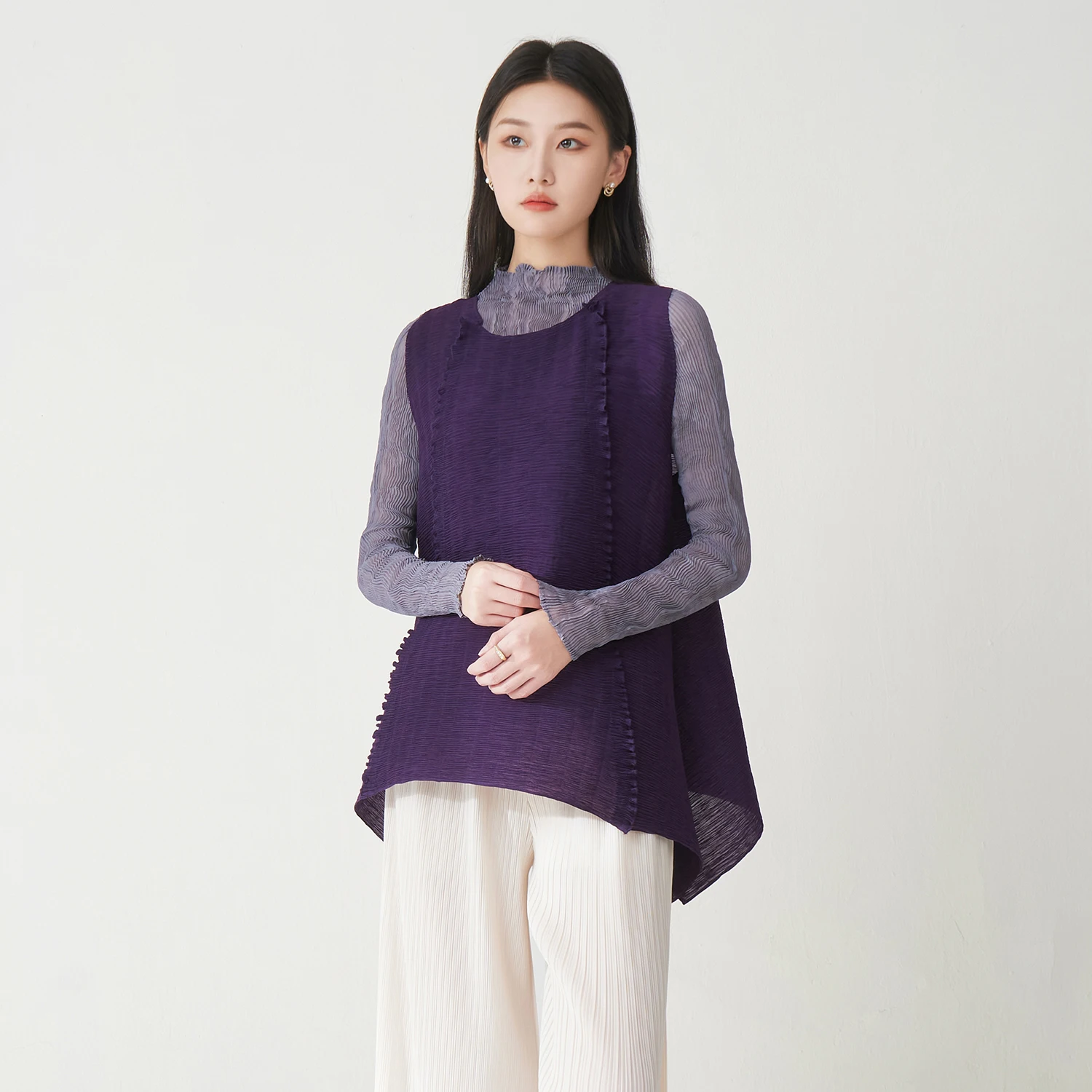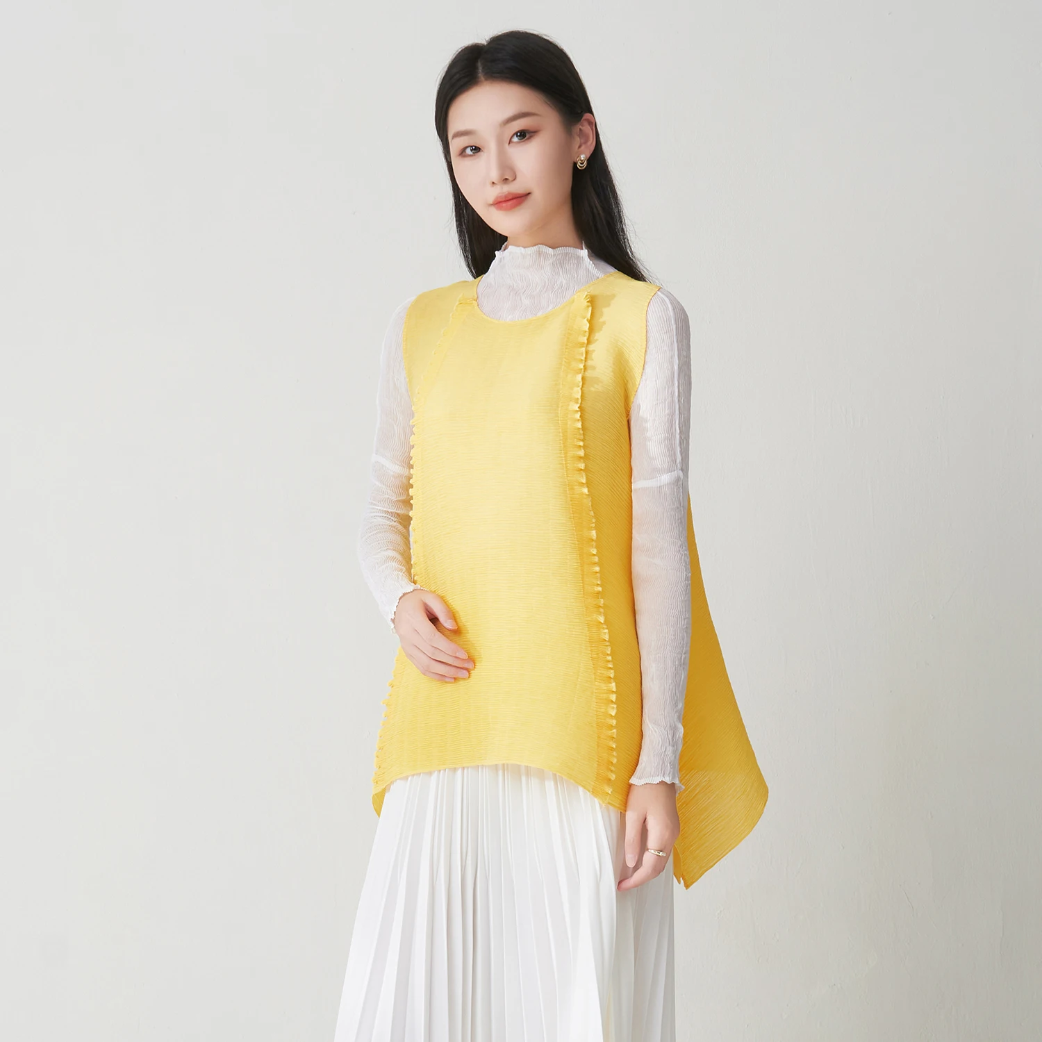 Factory Direct Women's Fashion Tops High Quality Sleeveless Tops Solid Color Casual T-shirts One Size Miyake Pleated Shirt