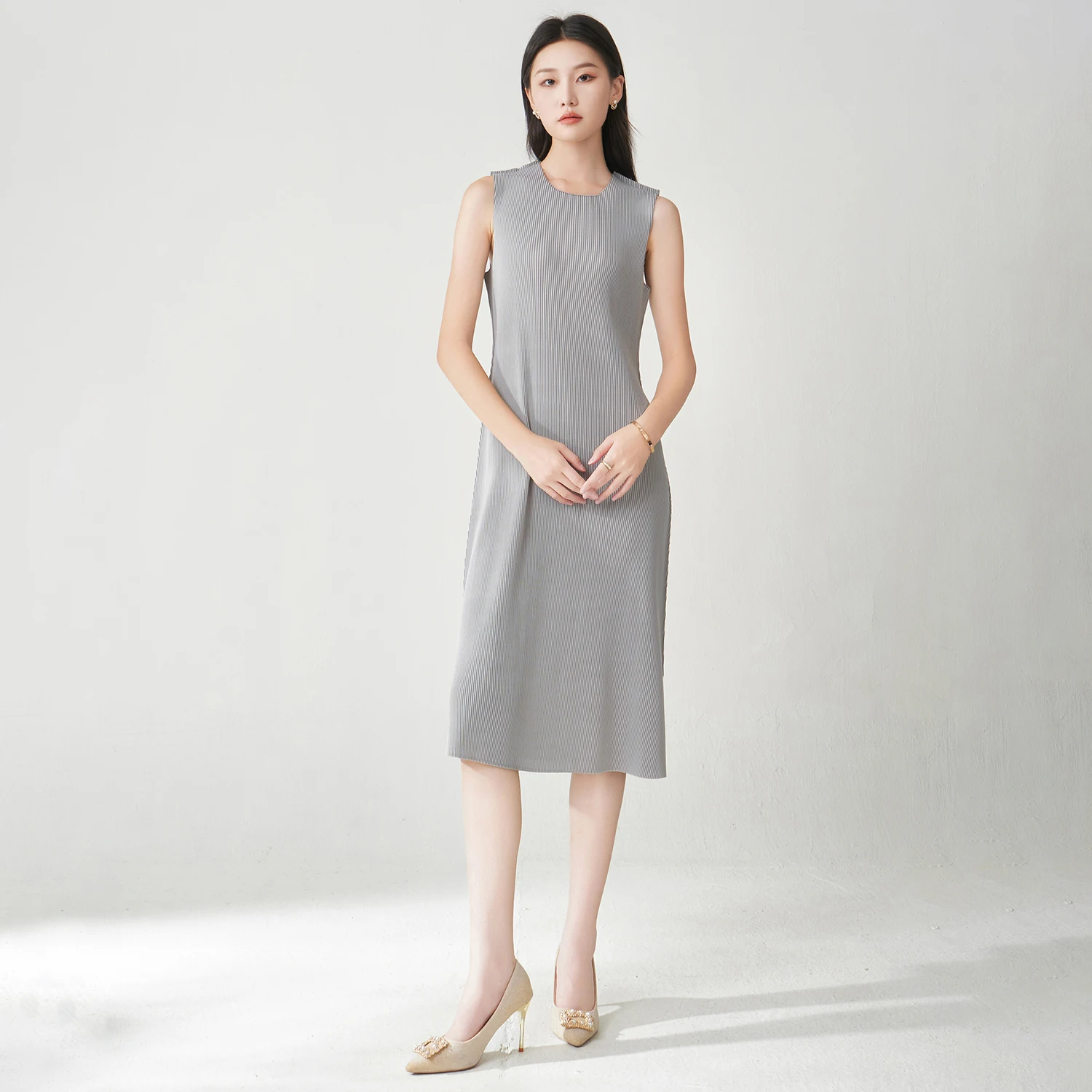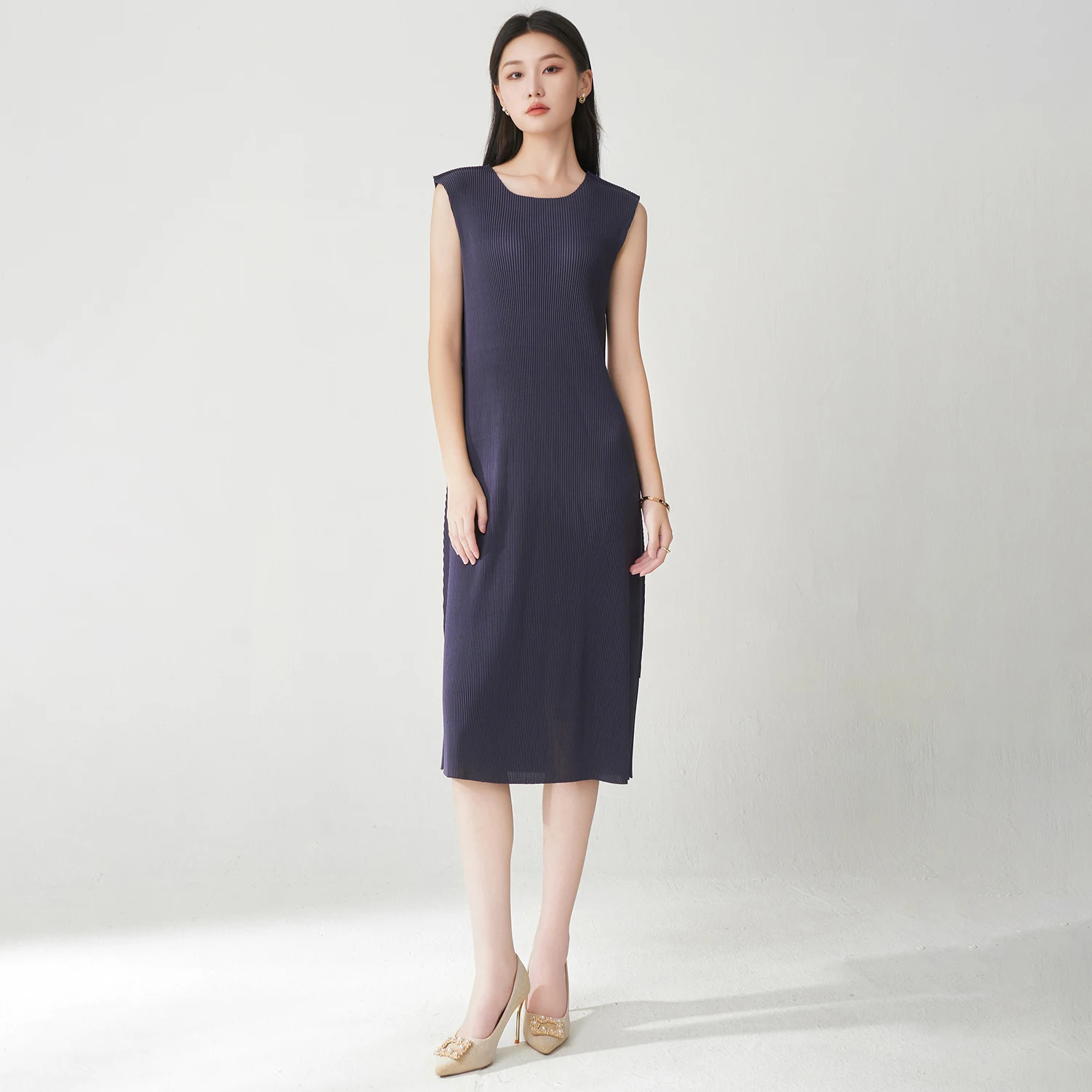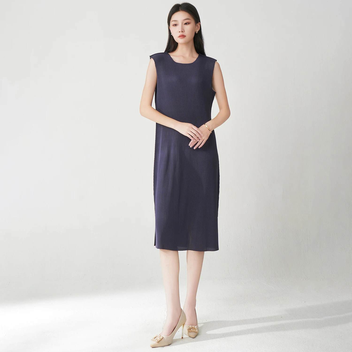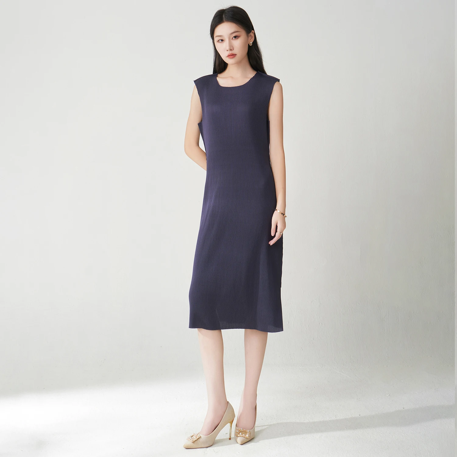 Factory Wholesale Women's Pleated Dress Design Summer Sleeveless Midi Dress One Size Casual Dress