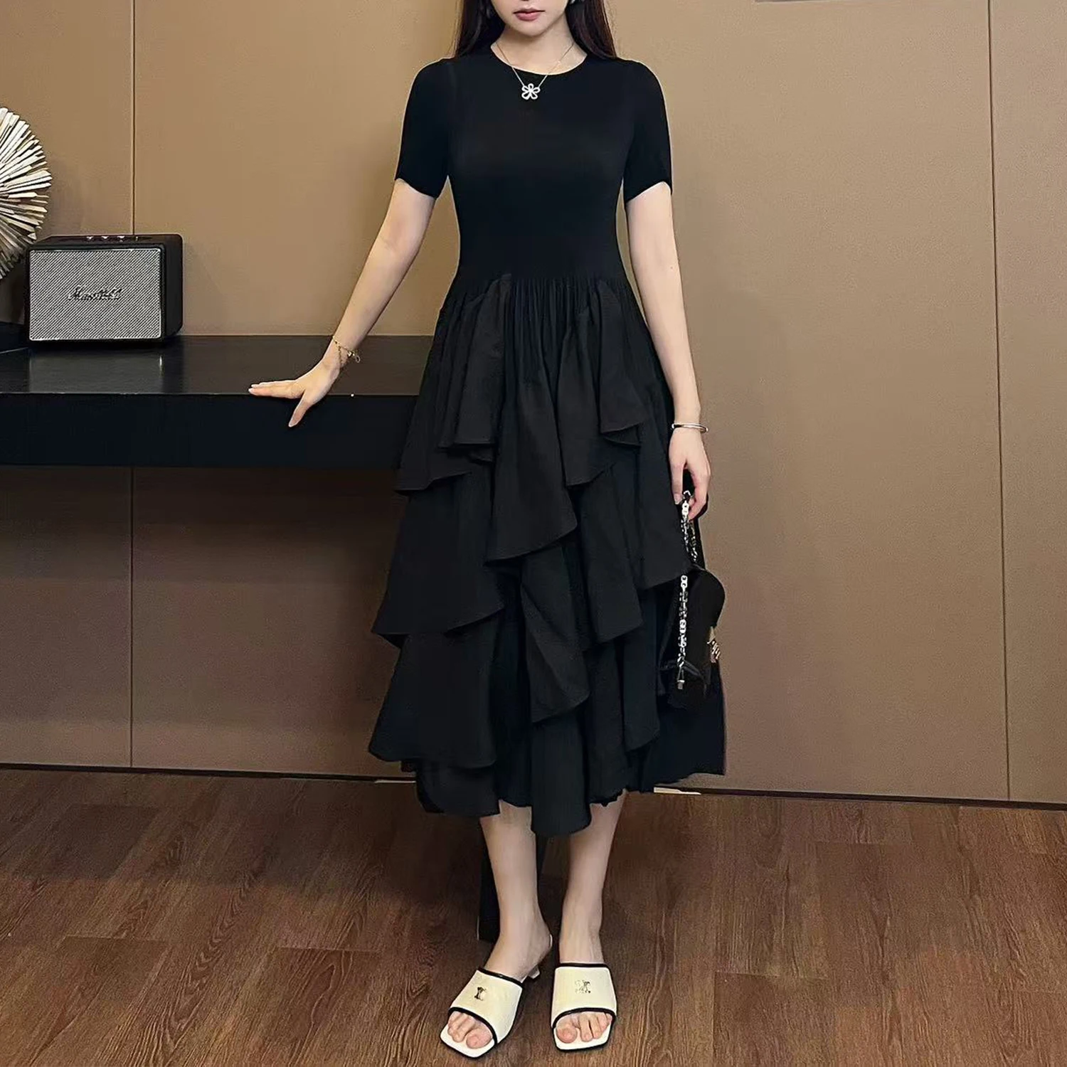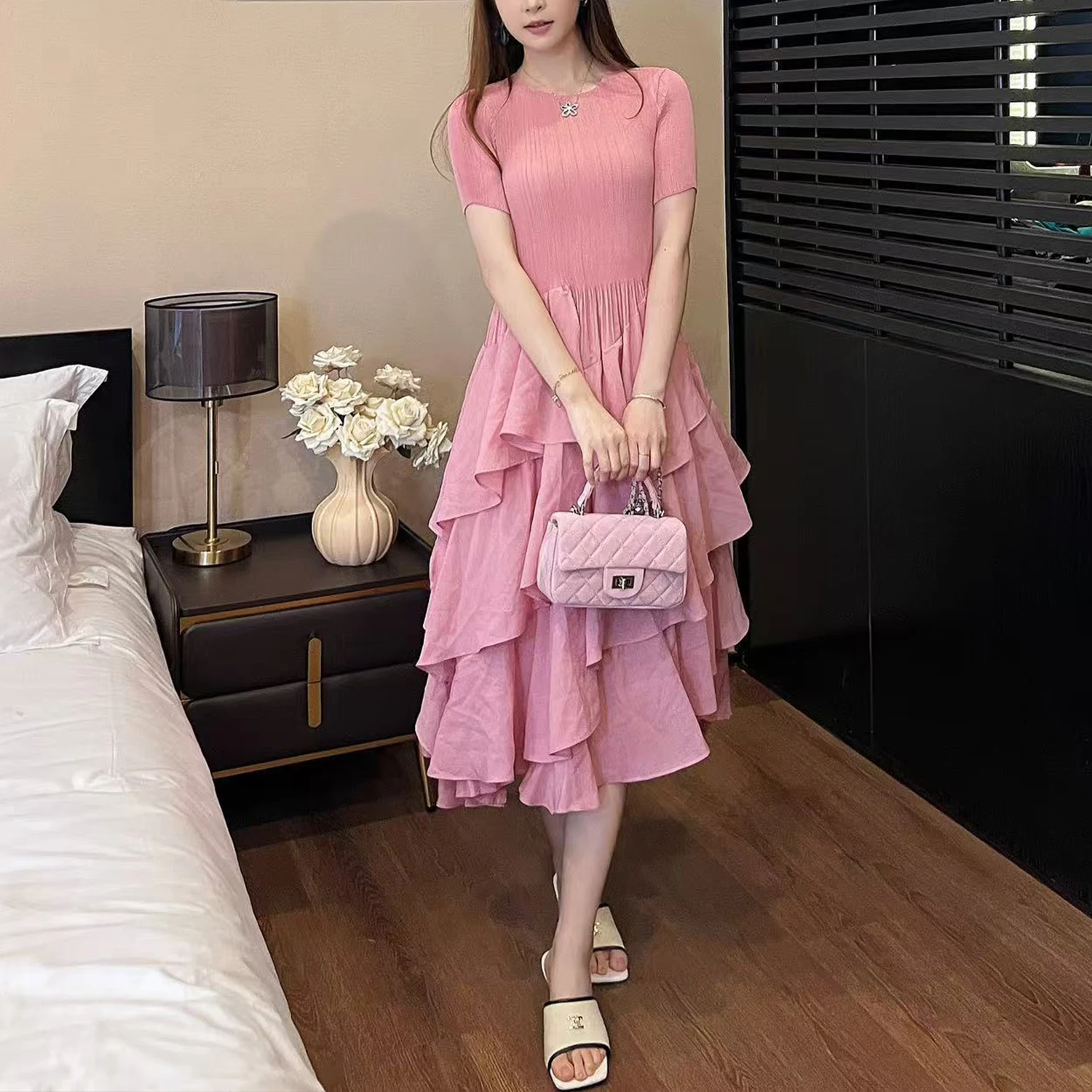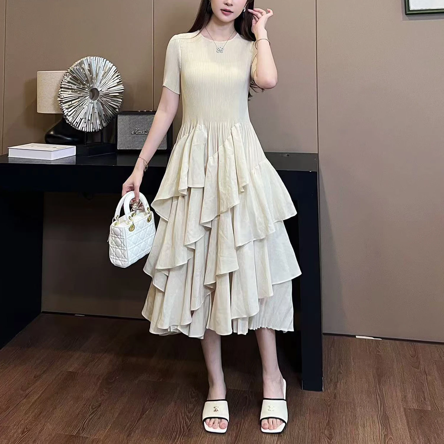 Chic Pleats Women's Fashion Dress High Quality Solid Color Stretch Casual Irregular Dress Miyake Pleated Dress Polyester Fabric