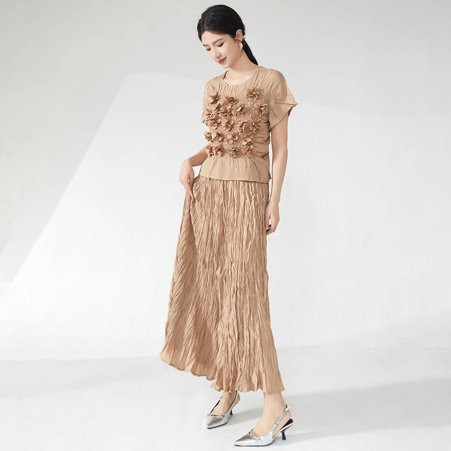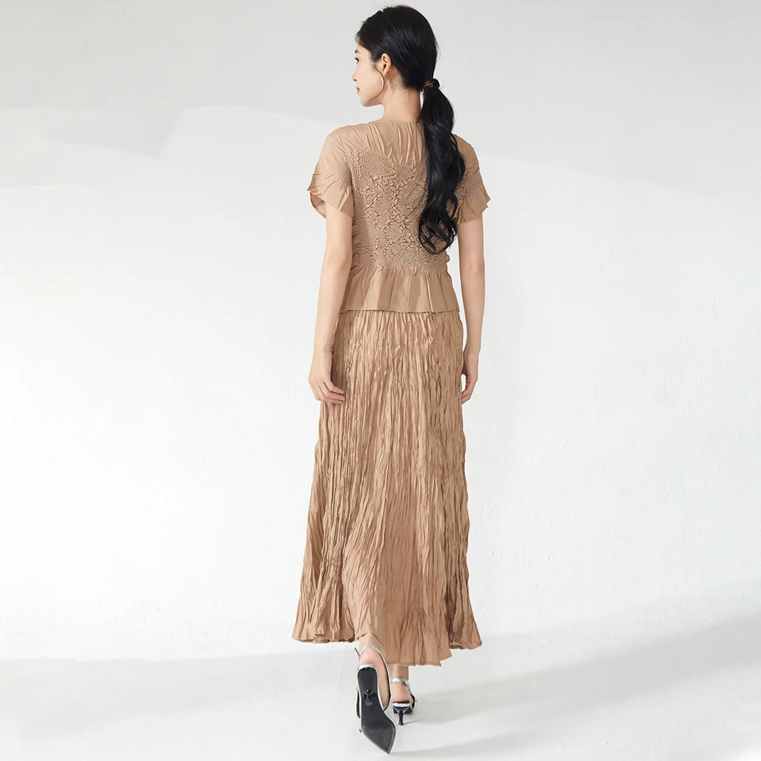 2025 Latest Design Women's Elegant Two Piece Set Designer Embroidered Top and Skirt Set Polyester Fabric Casual Set