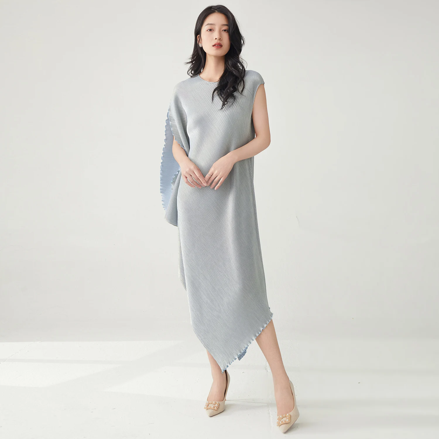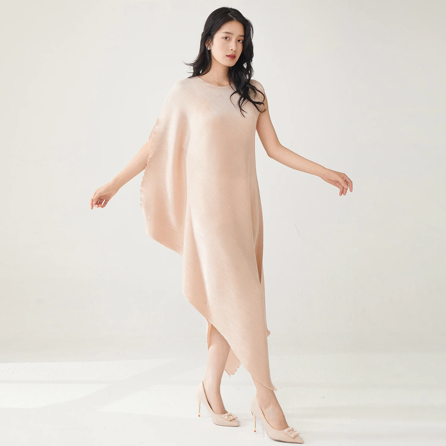 2025 Latest Design Pleated Dress Irregular Loose Elegant Dress Ladies Party Fashion Dresses