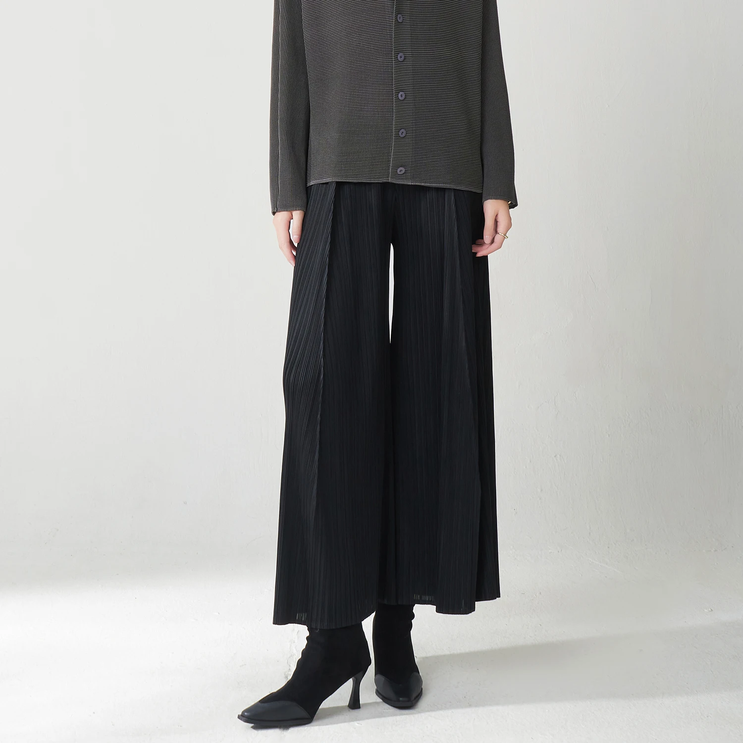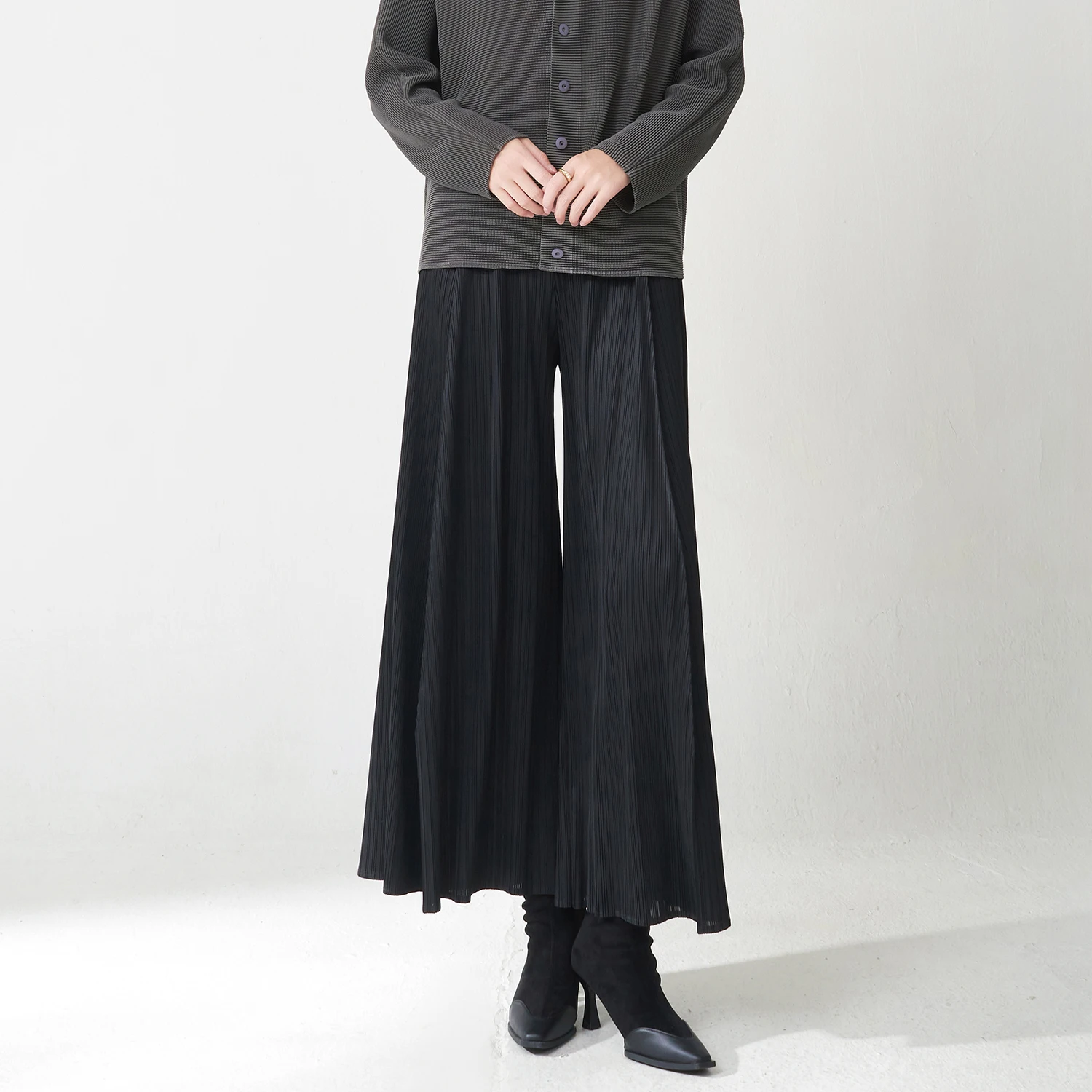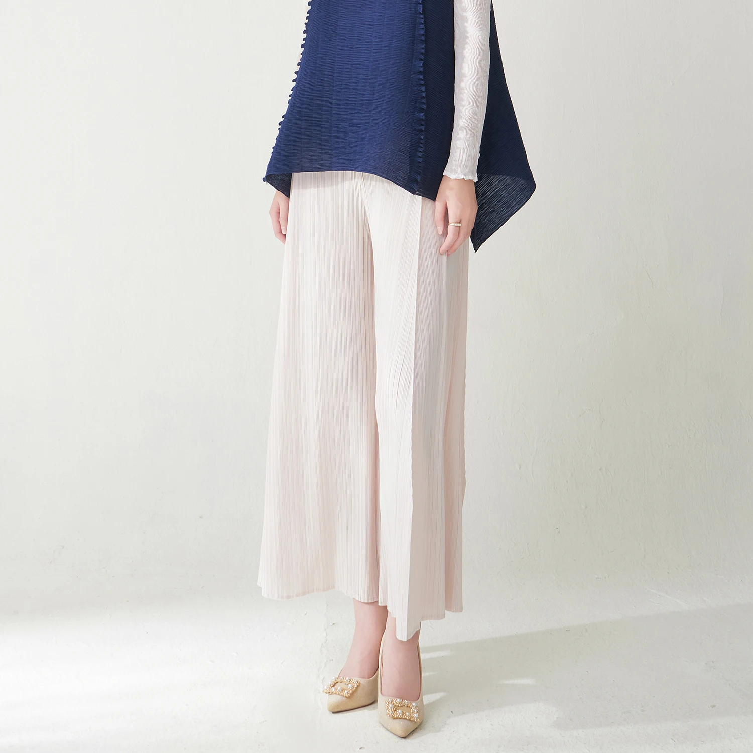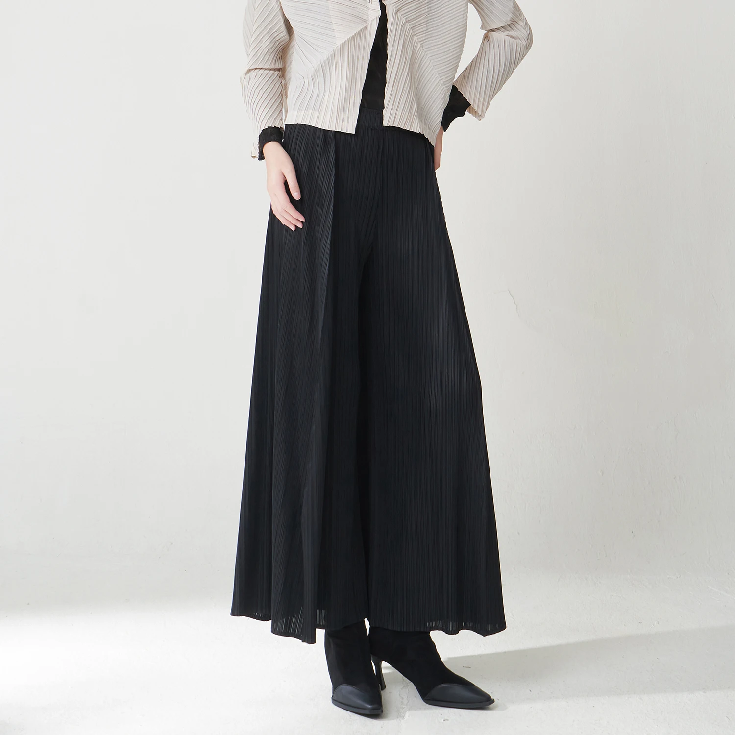 Latest Design Women's Trousers Design Sense Stretch Loose Casual Pants Miyake Pleated Pants Polyester Fabric Wide Leg Pants