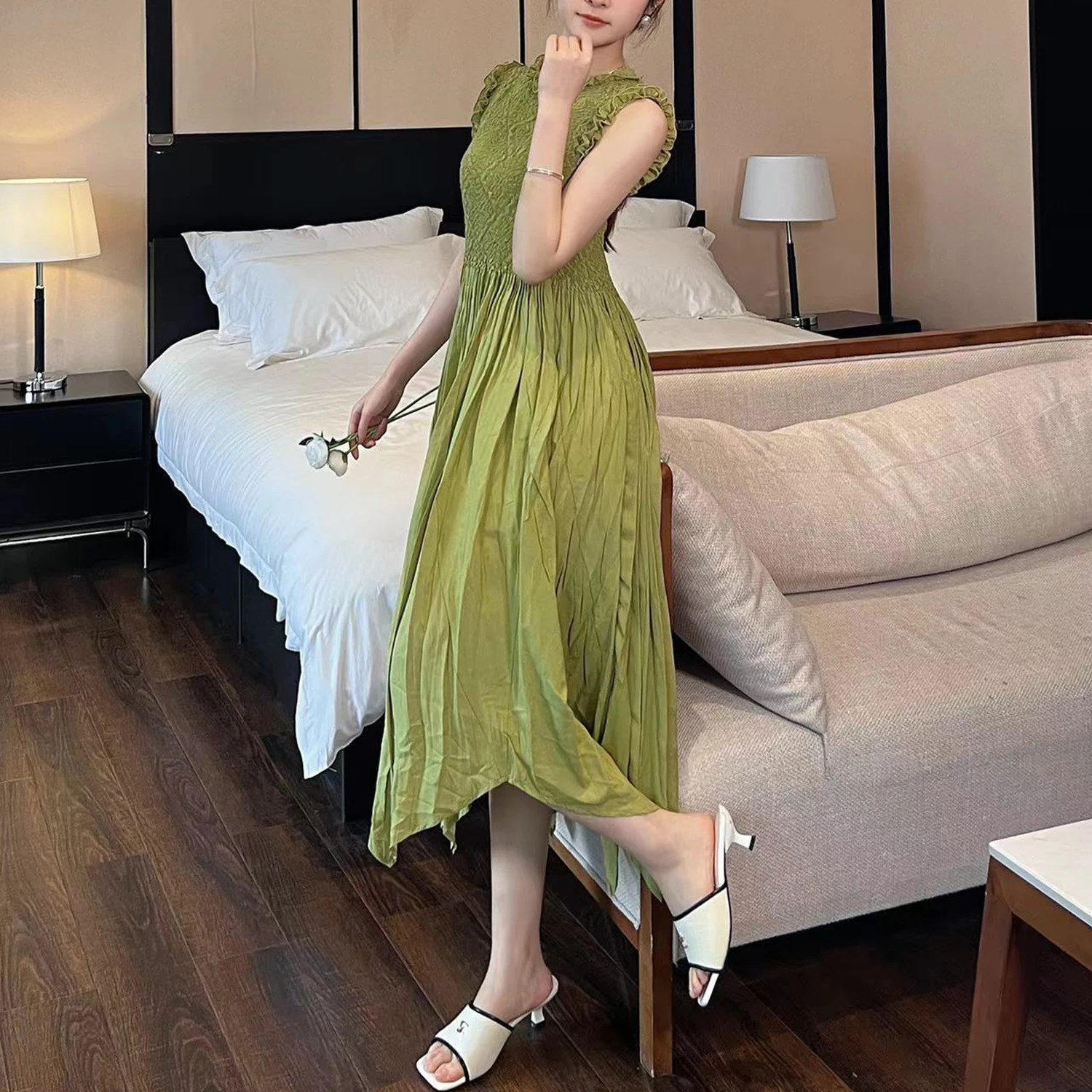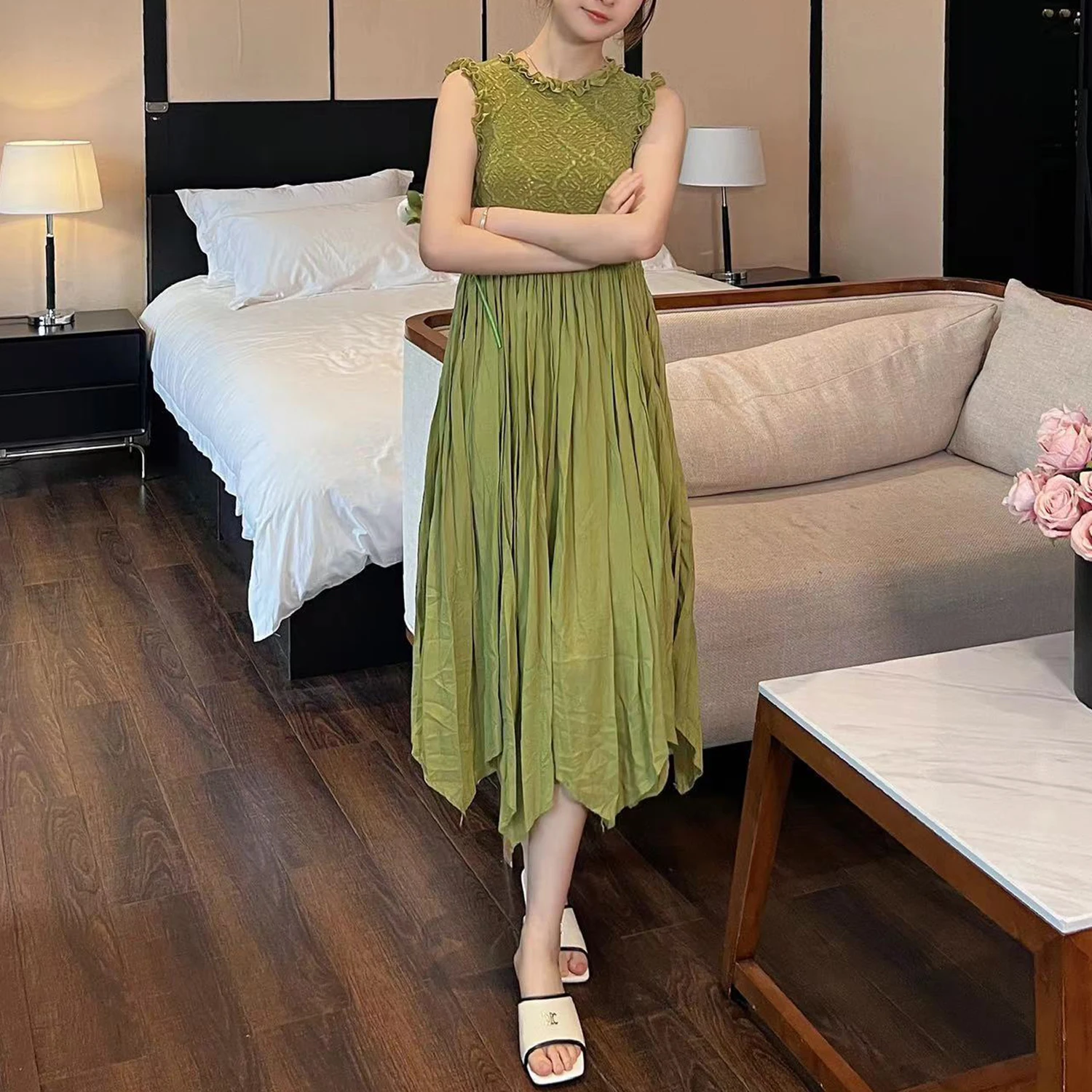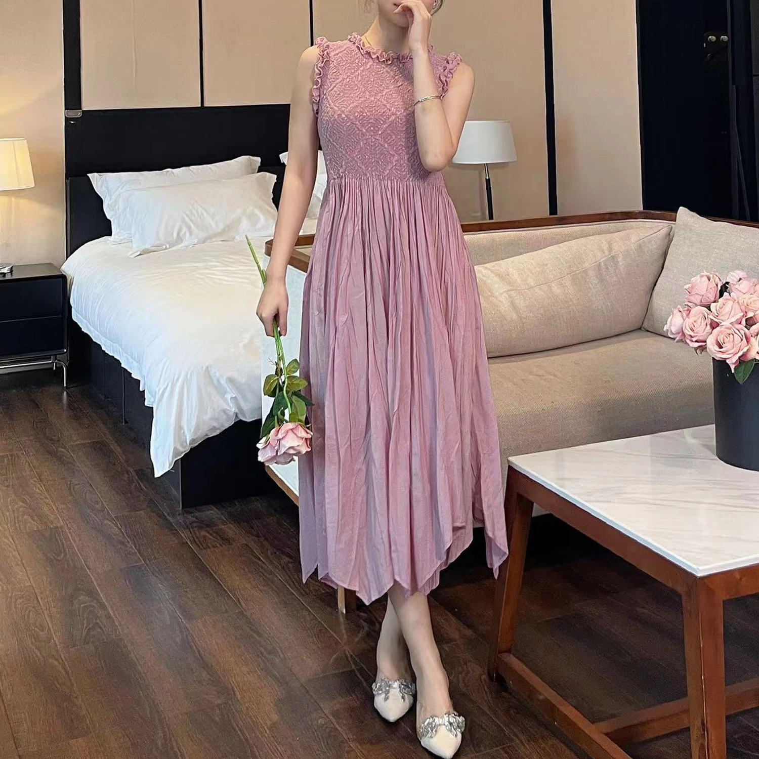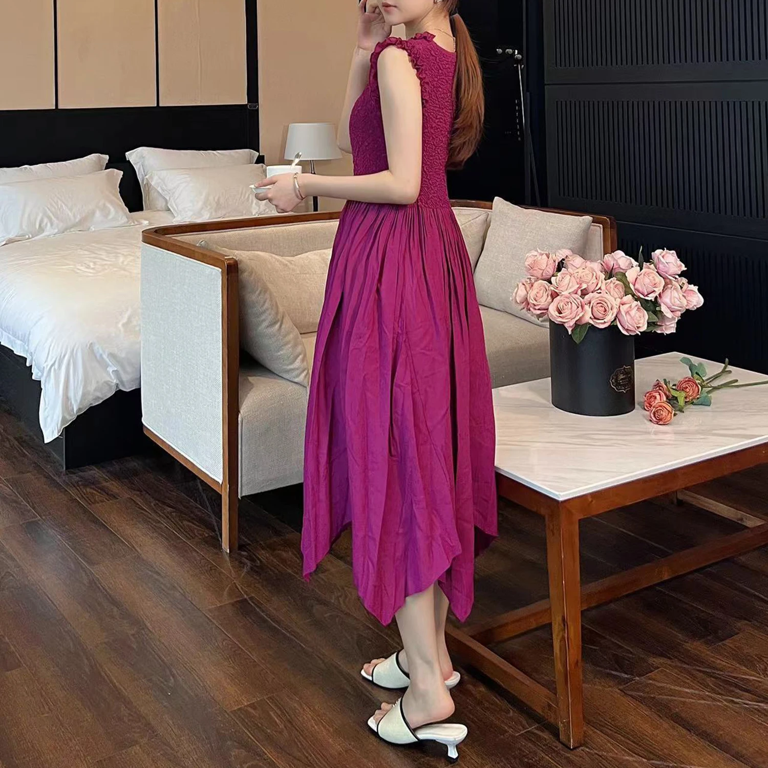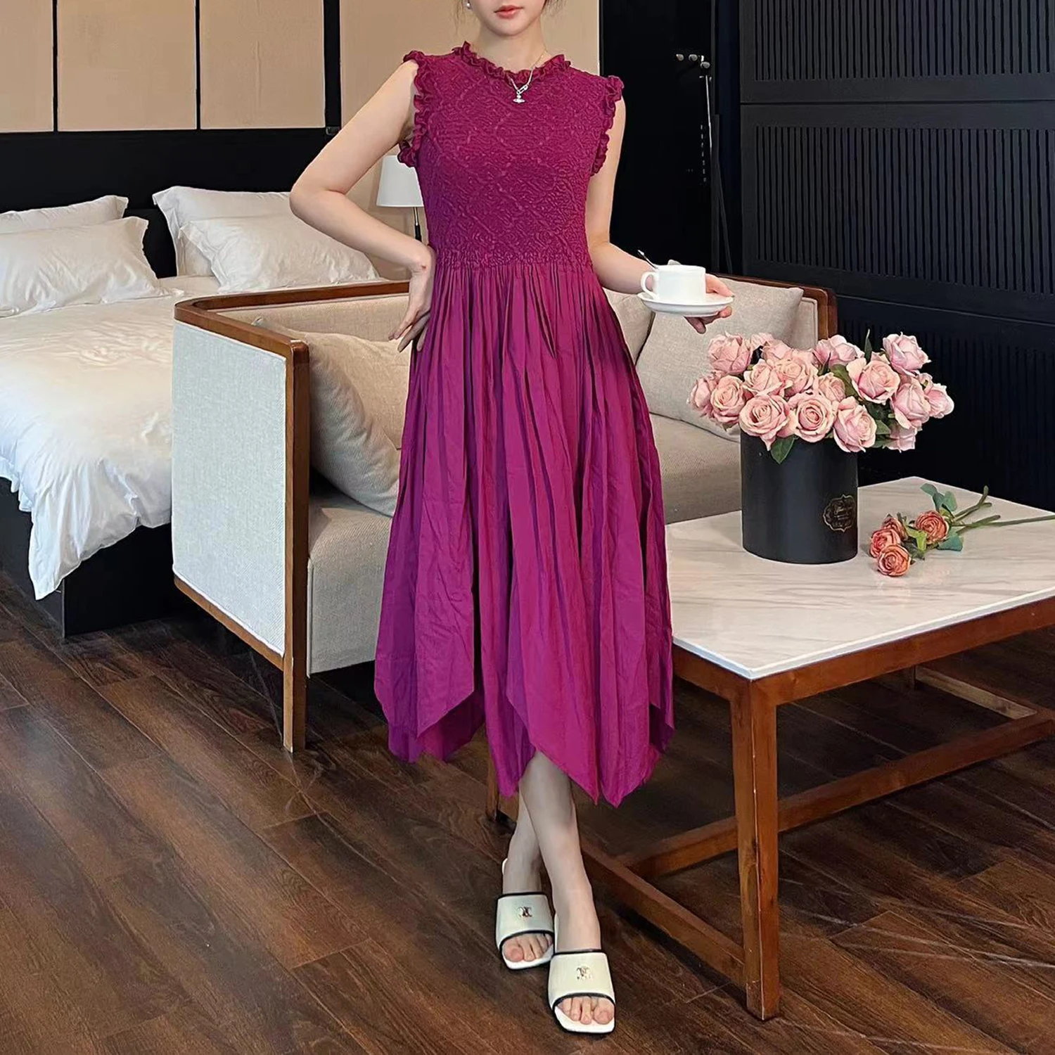 Summer Women's Dress High Quality Design Sleeveless Elegant Dress Irregular 2025 One Size Casual Dress