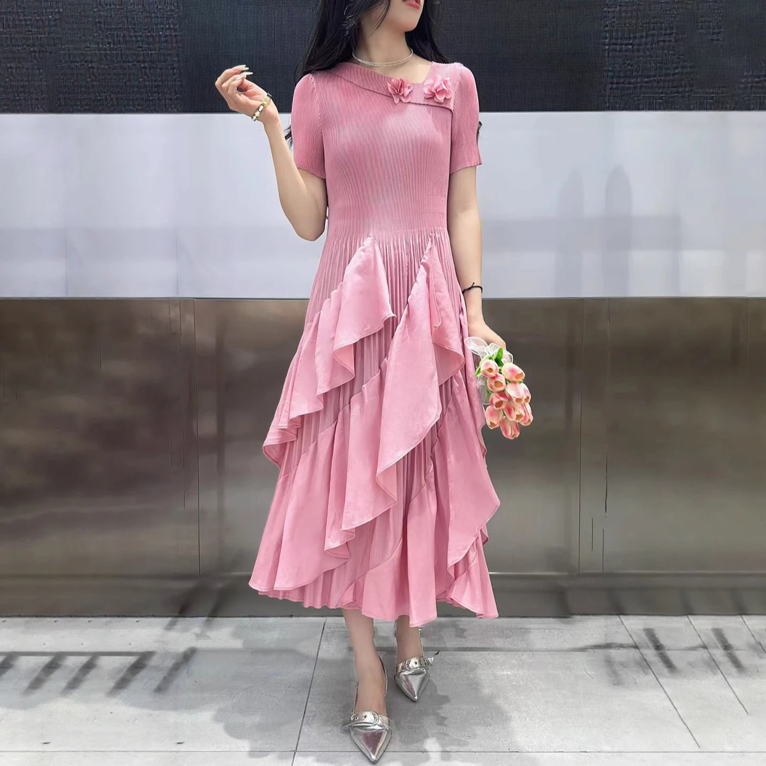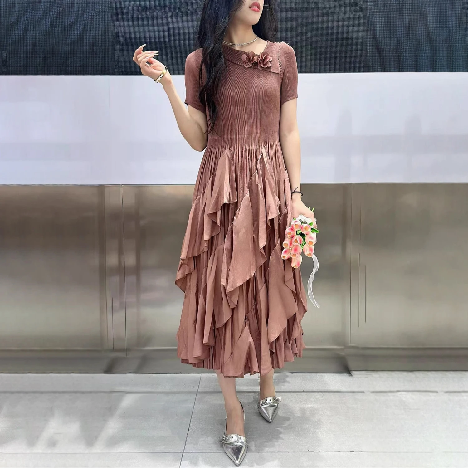 Miyake Pleated Dress Design Summer Women's Fashion Dress Polyester Fabric Dresses Women Lady Elegant Vintage