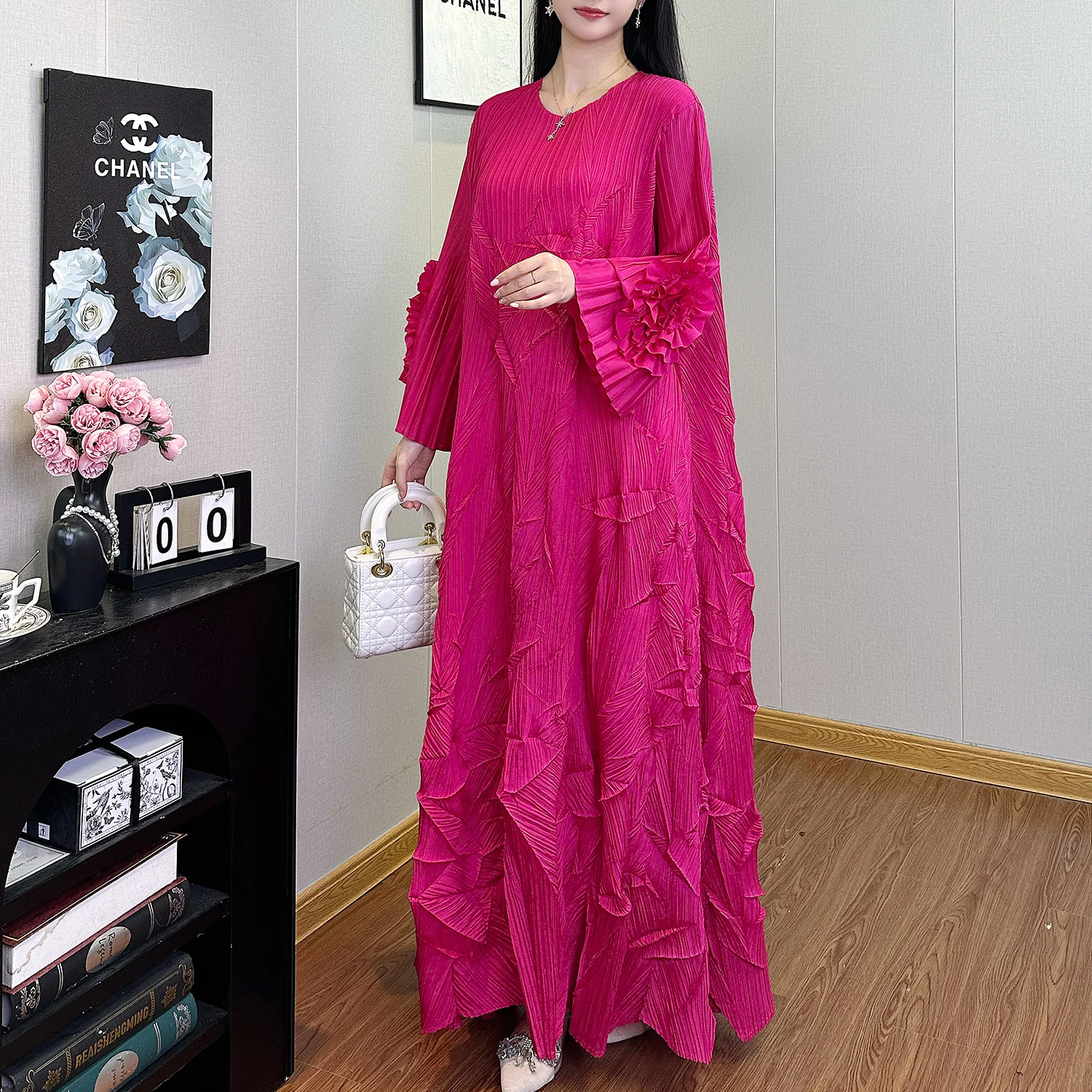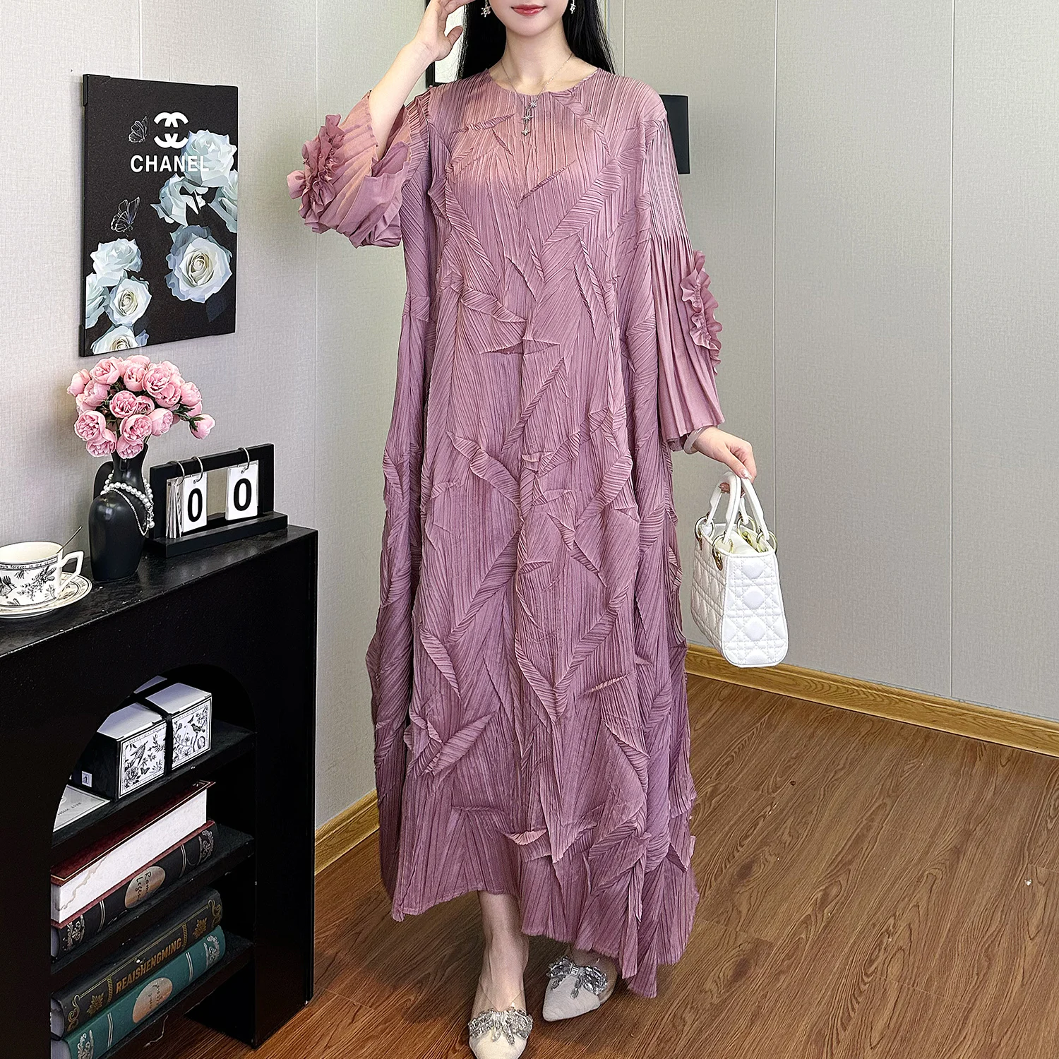 Factory Wholesale Women's Fashion Dress Design Loose Plus Size Miyake Pleated Dress Polyester Casual Dress