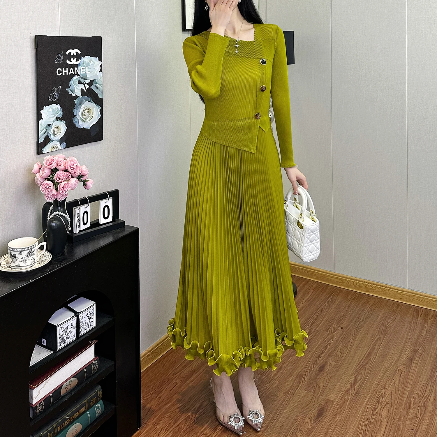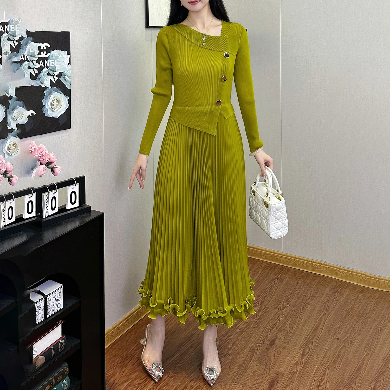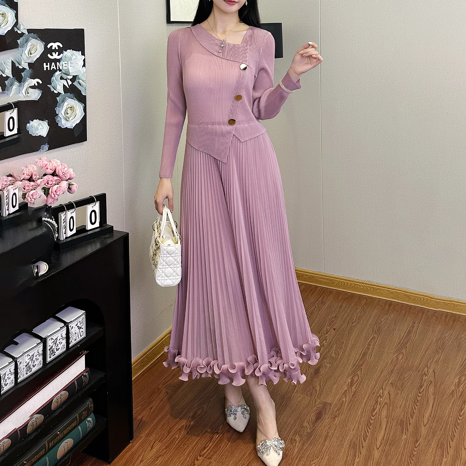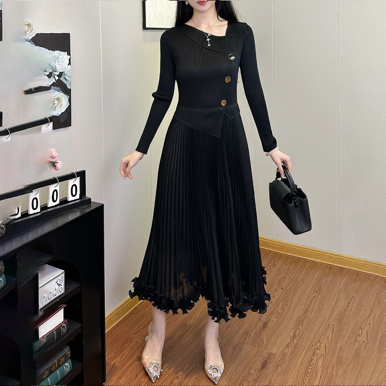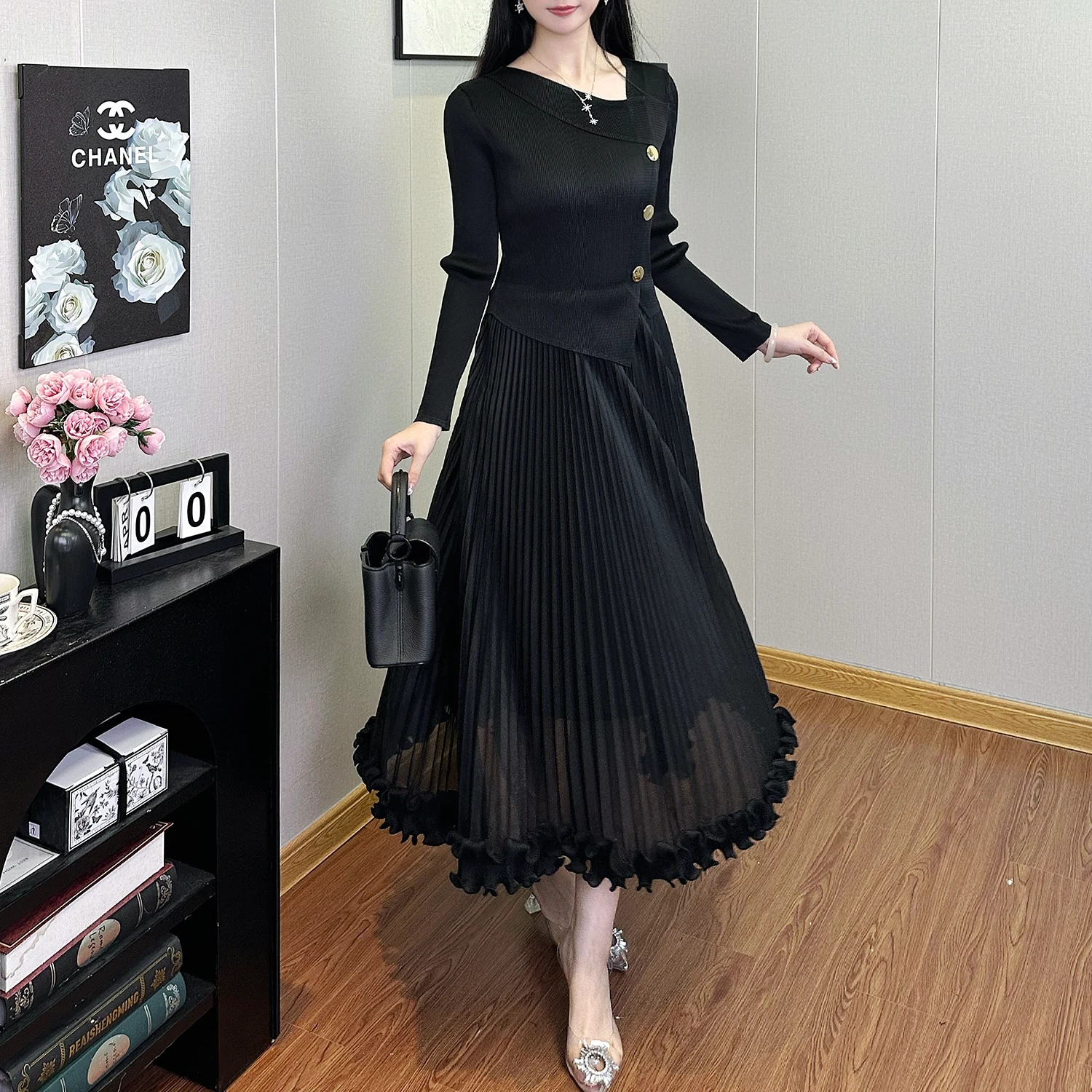 2025 New High Quality Stretch Pleated A-Line Dress for Ladies Casual Dresses for Autumn