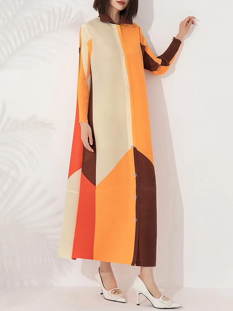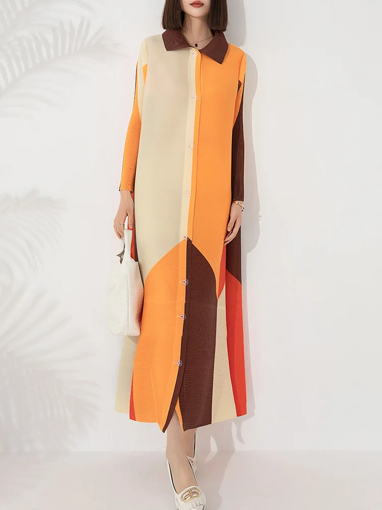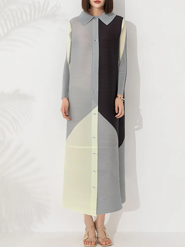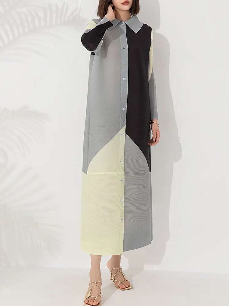 Factory Direct Elegance Printed Miyake Dress Women's Dresses Office Dresses Women Formal Work Buttoned Shirt