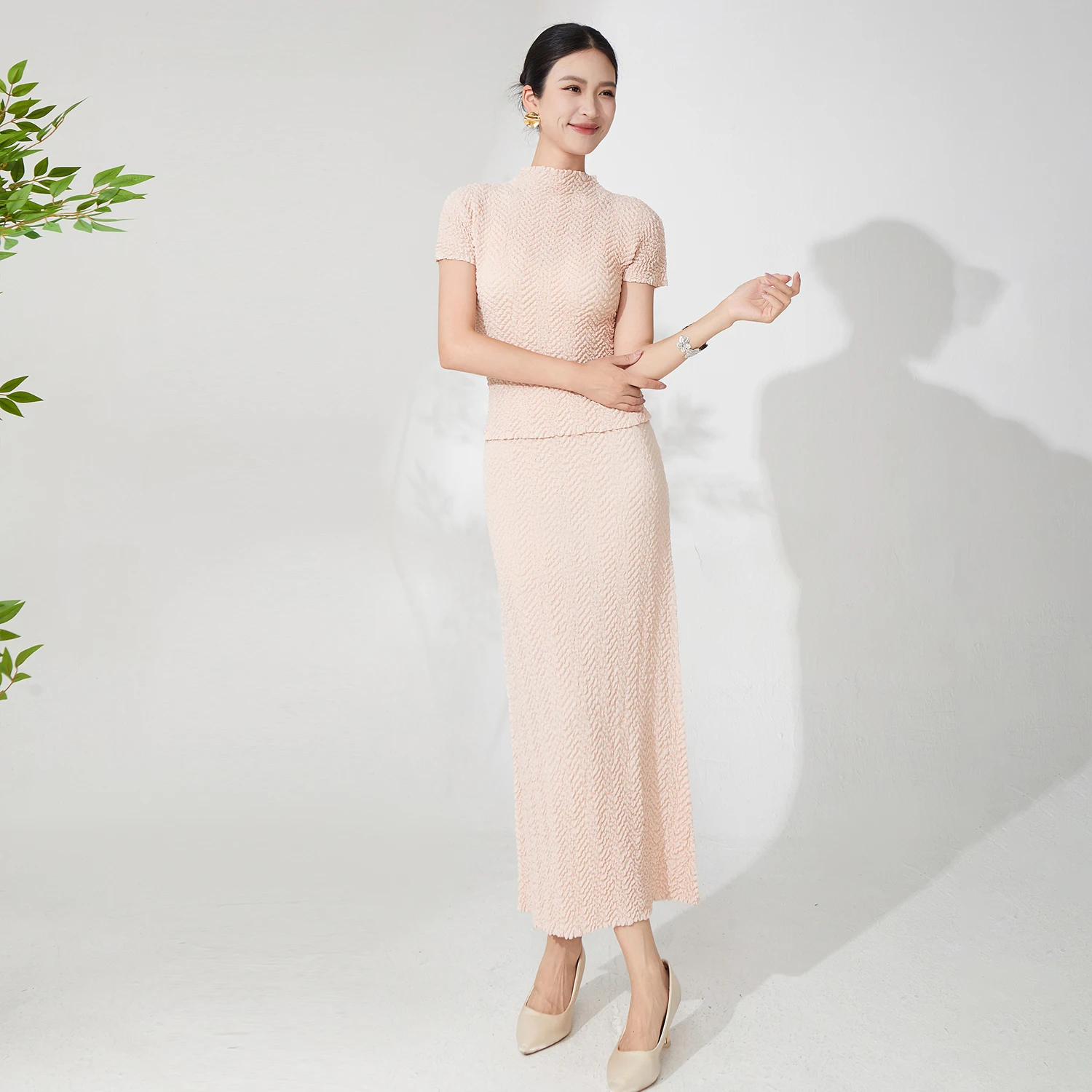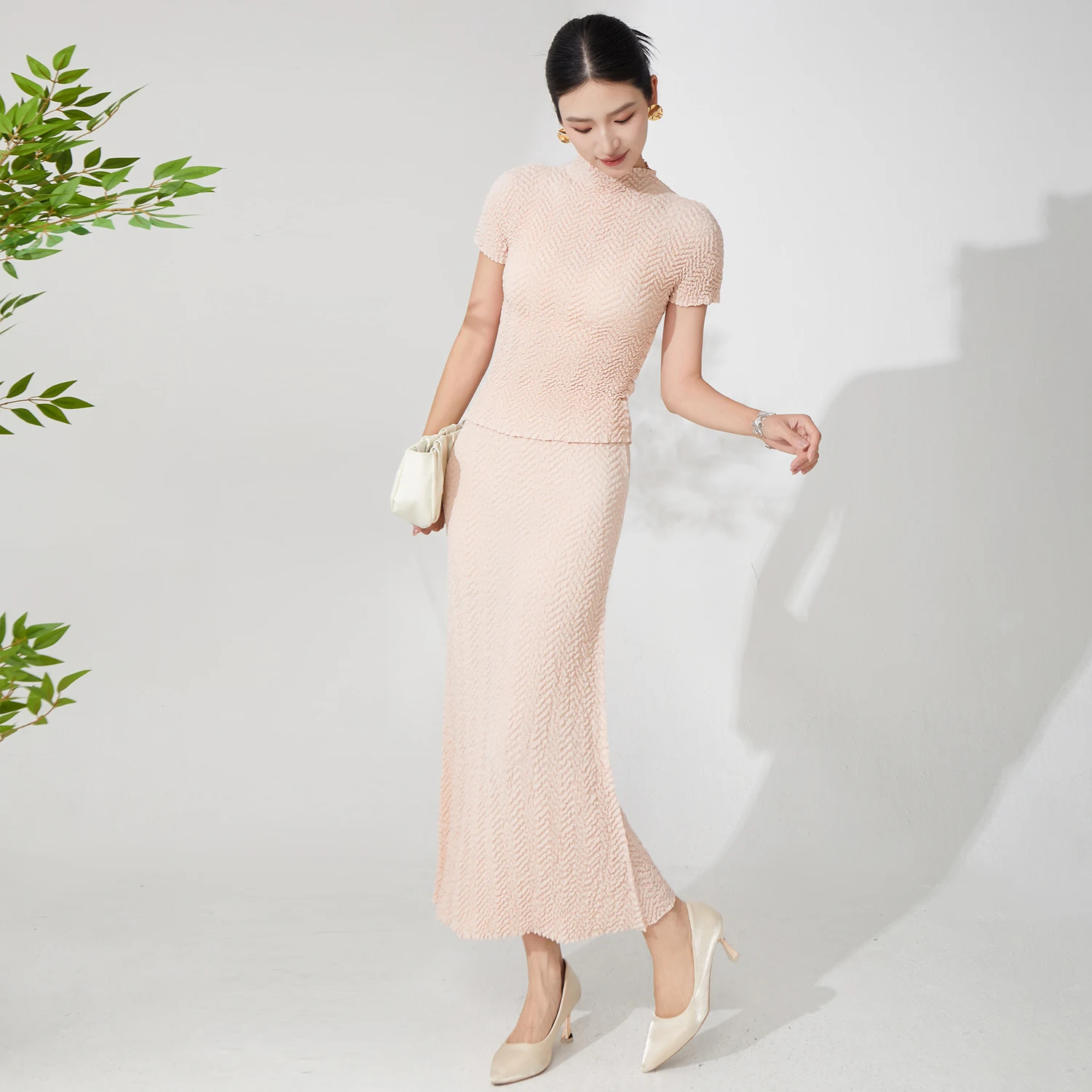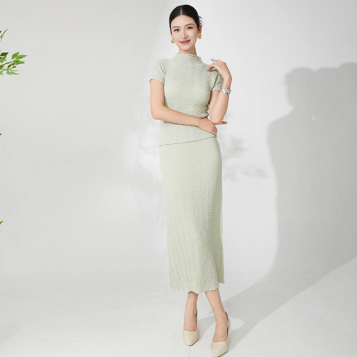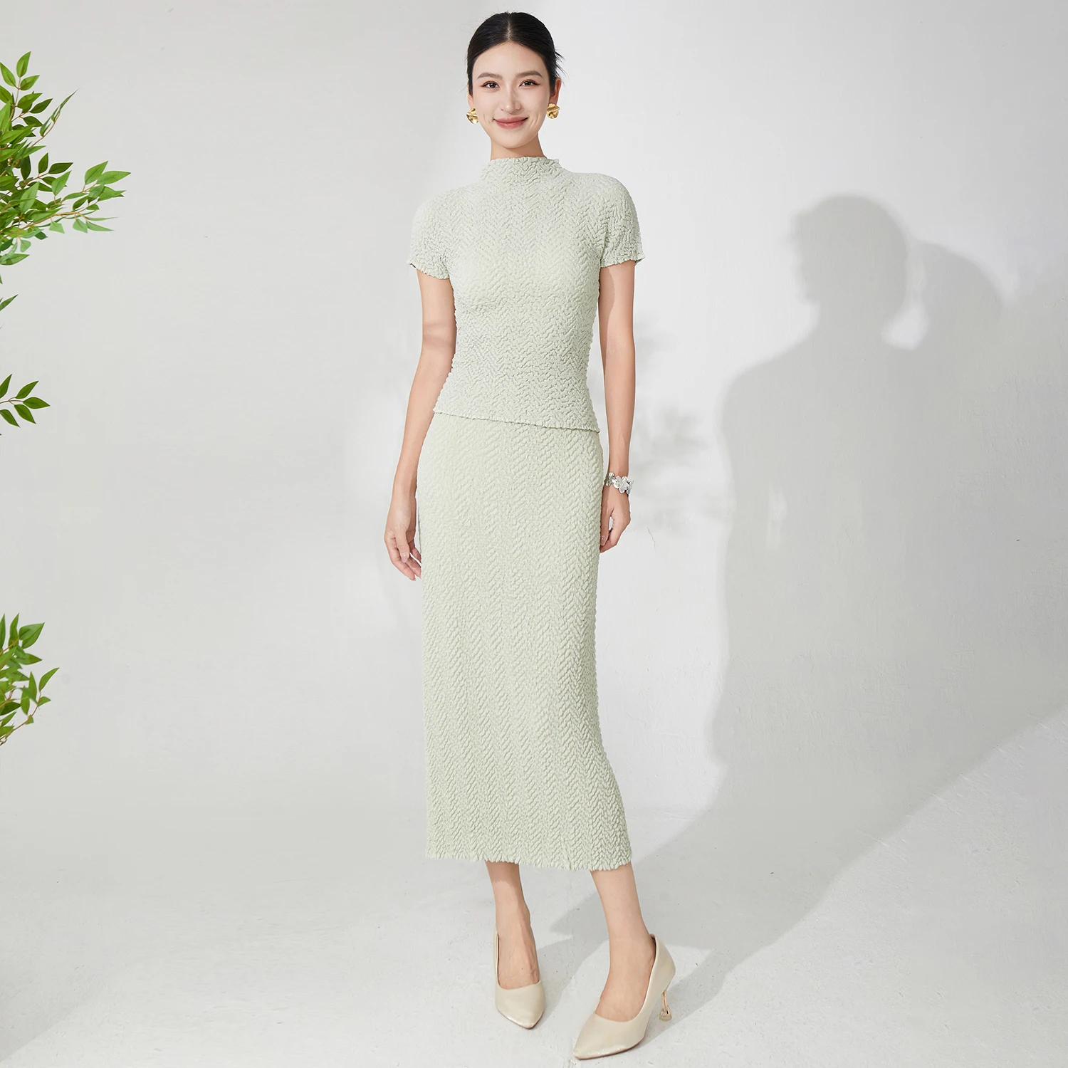 Fast Shipping Premium Quality Women's Elegant Set Summer Solid Color Short Sleeve Top and Skirt 2-Piece Set