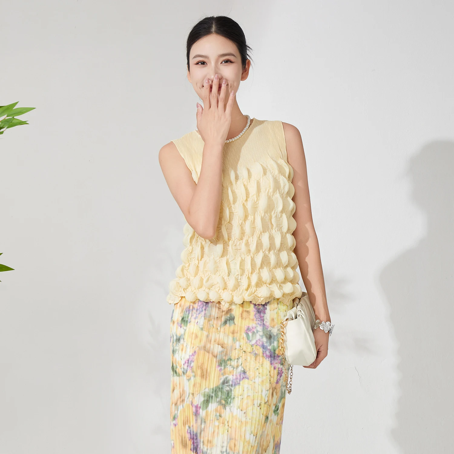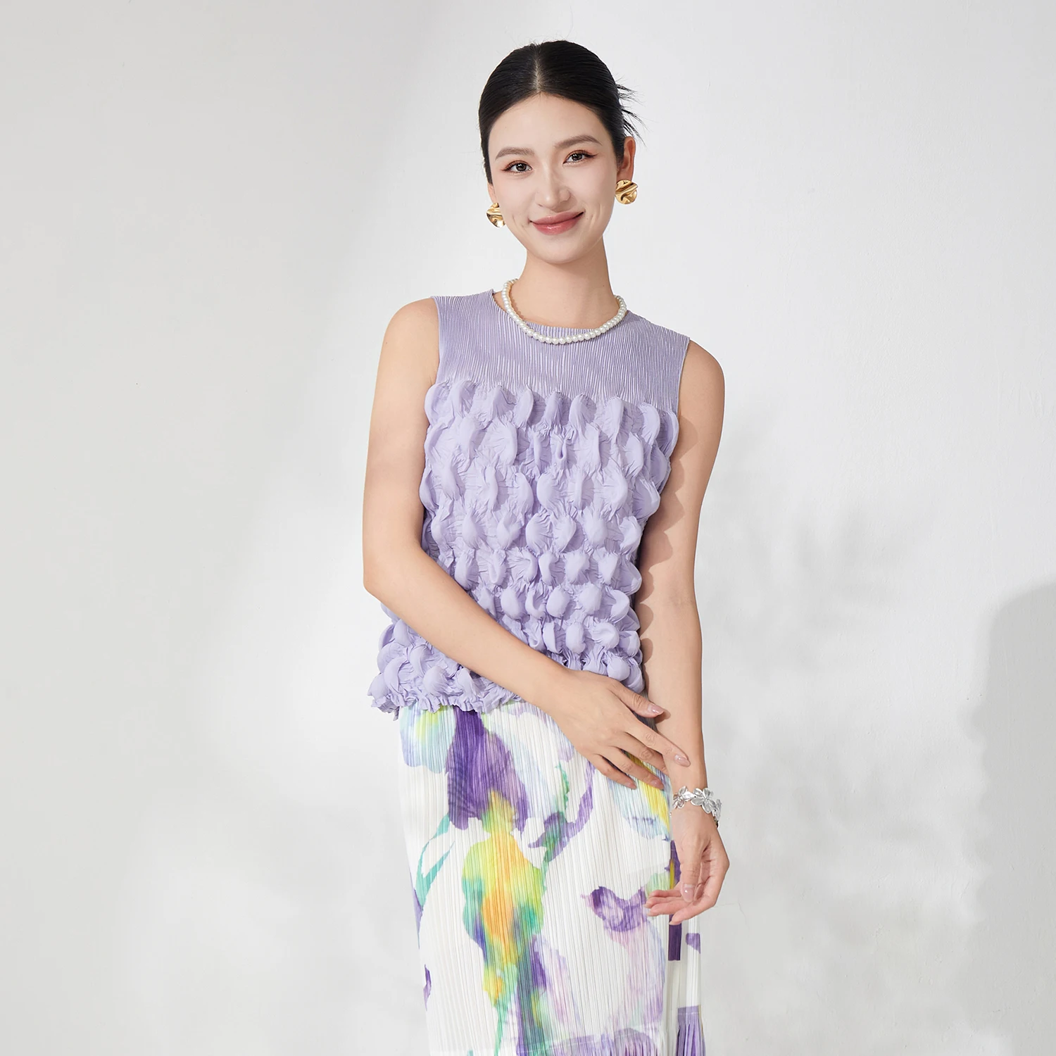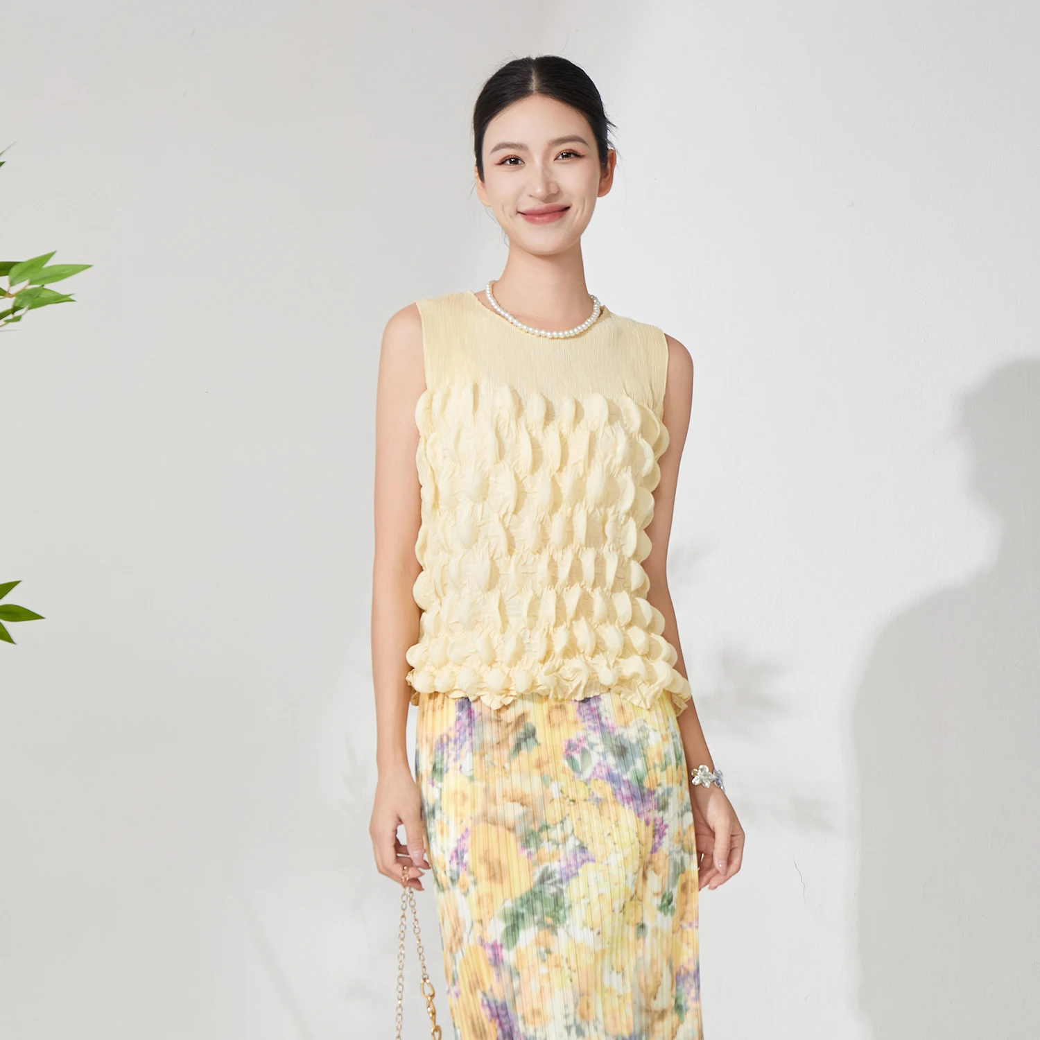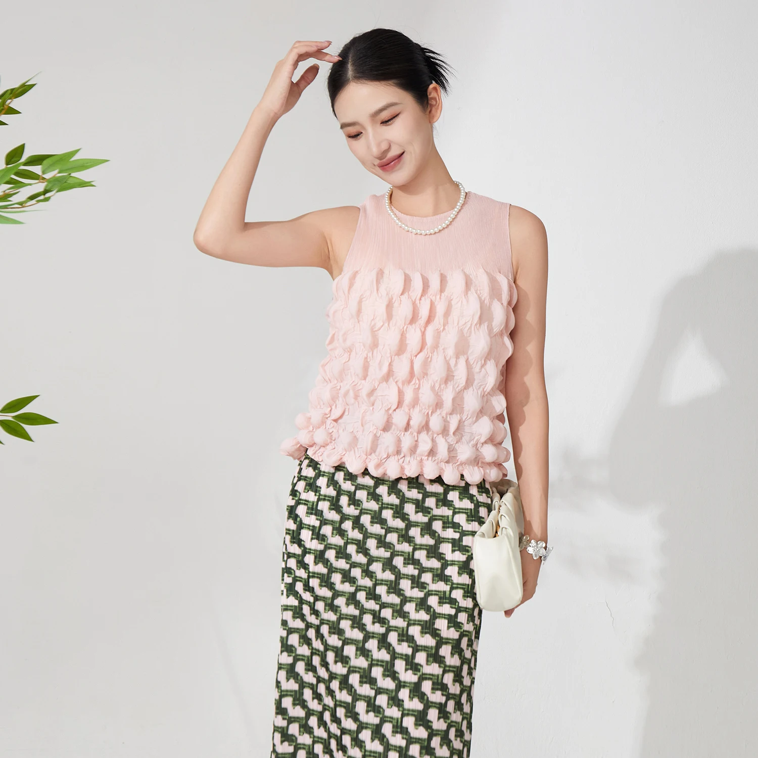 Latest Design Summer Women Pleated Tops Design Sense High Quality Sleeveless Fashion Tops Free Size Polyester Fabric