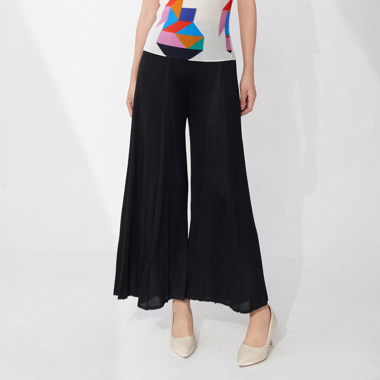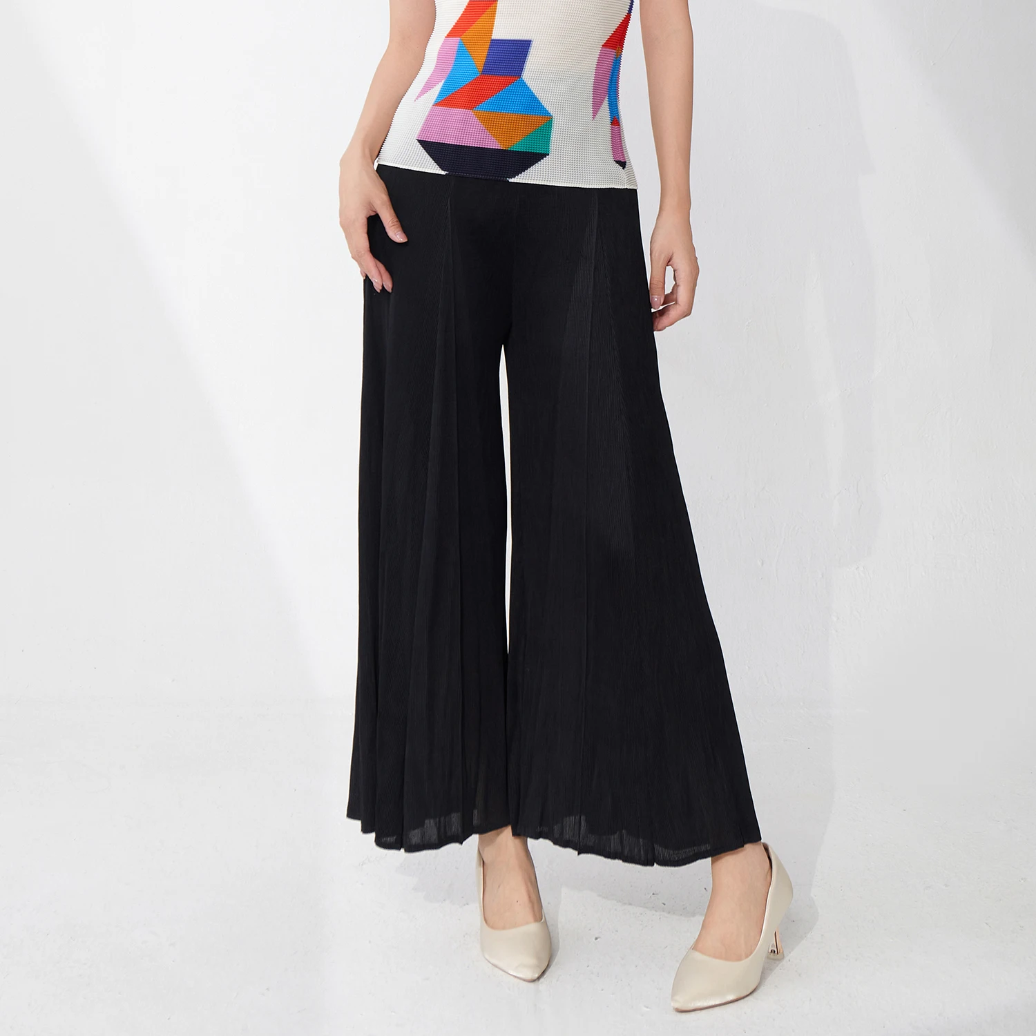 Wholesale Direct High Quality Women's Pleated Pants Summer Elastic Loose Wide Leg Pants Miyake Pants
