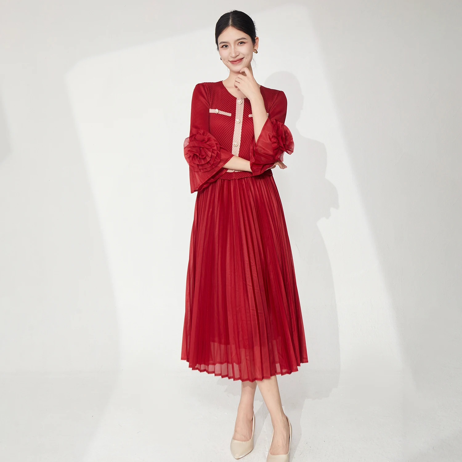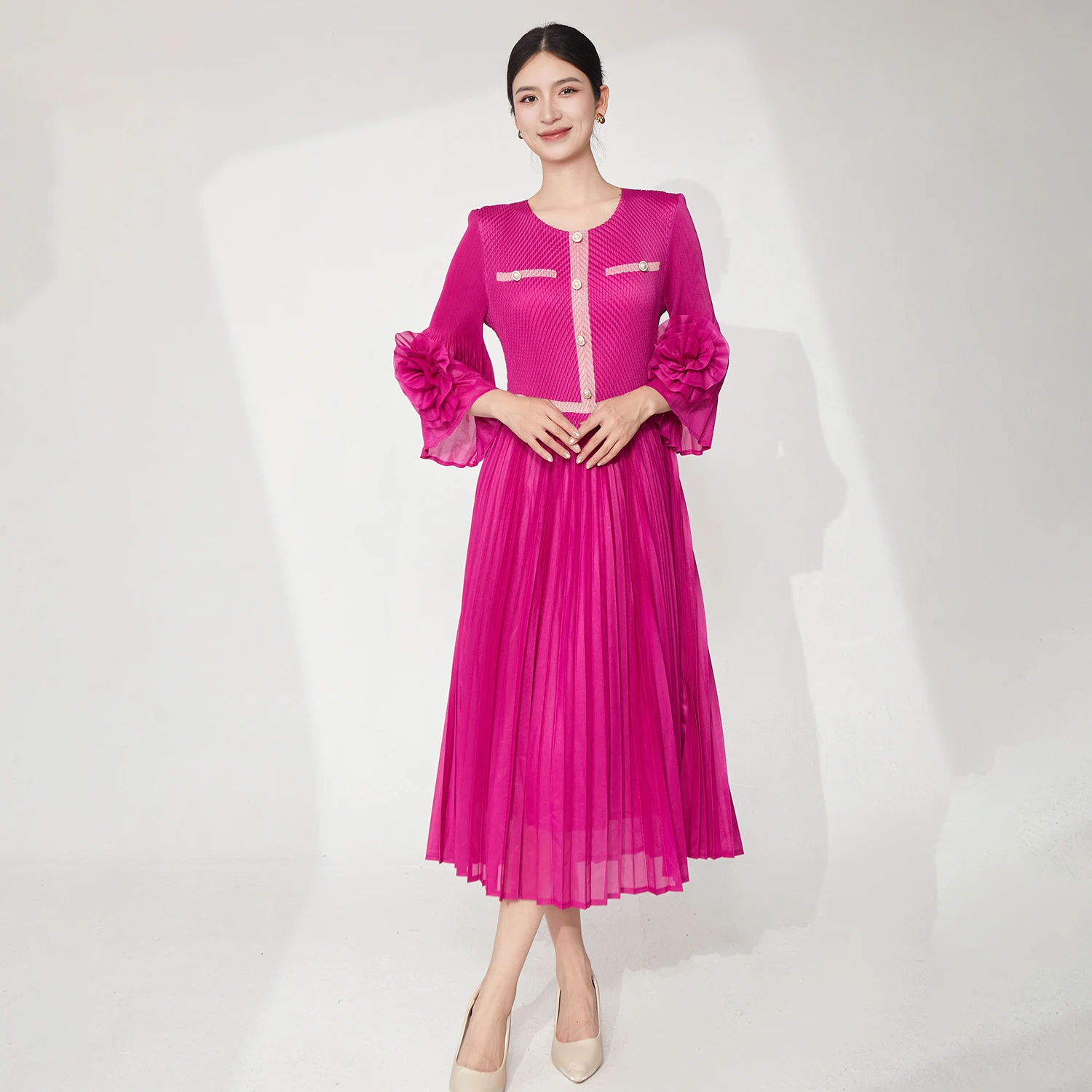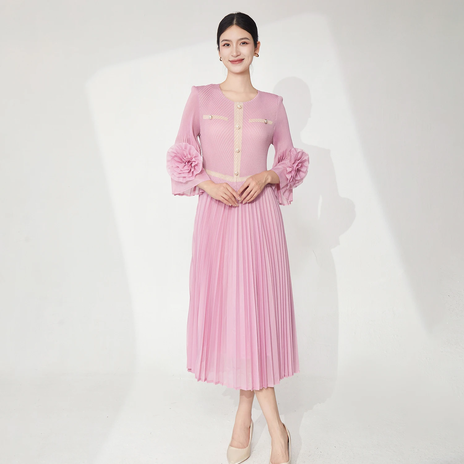 Direct Wholesale From the Source Miyake Pleated Dress Stretch Plus Size Office Lady Dress Ladies Fashion Dress