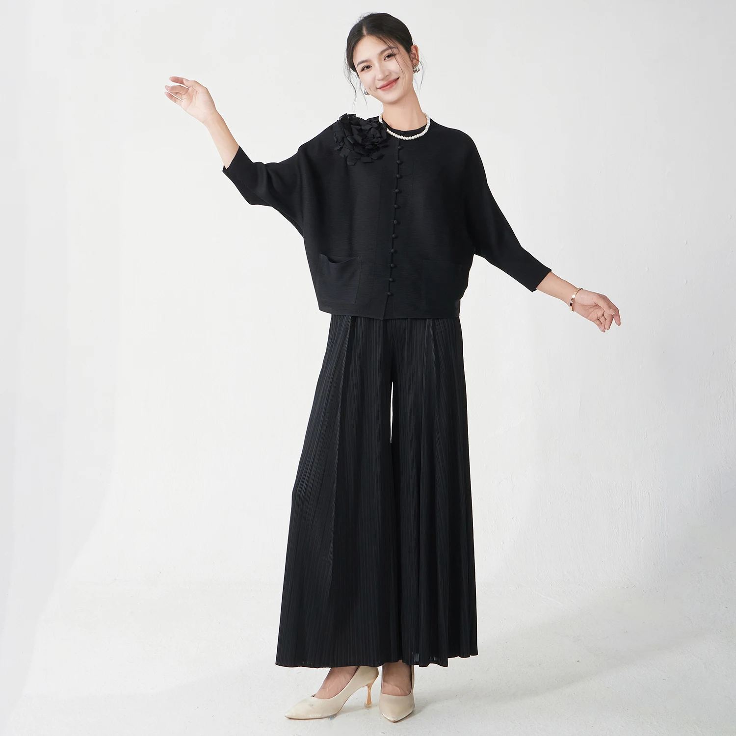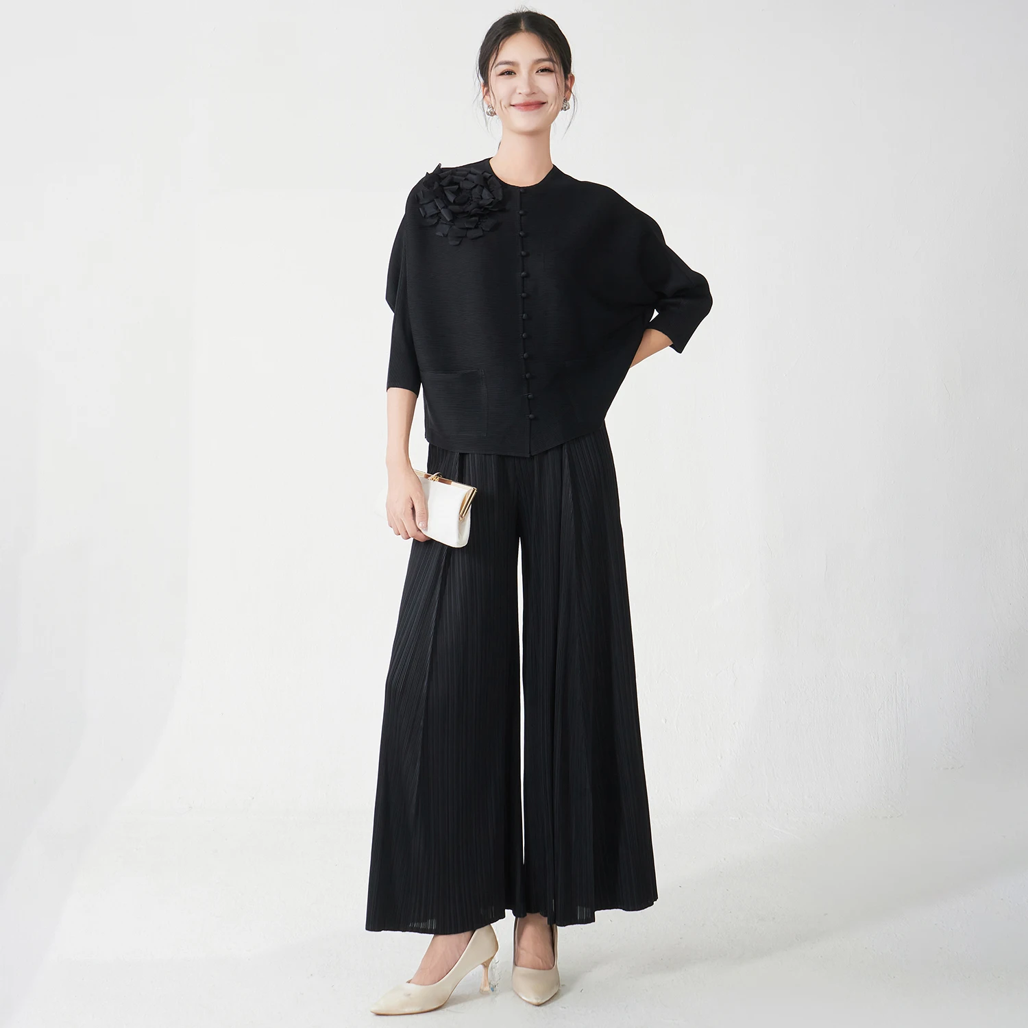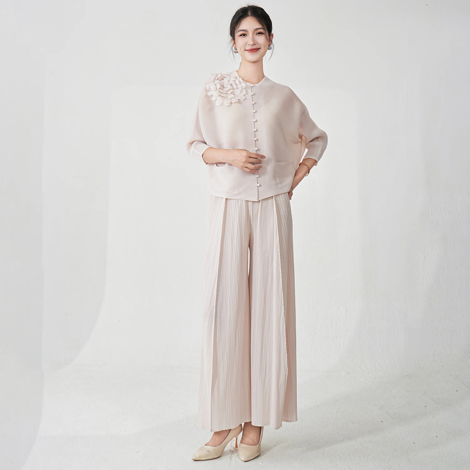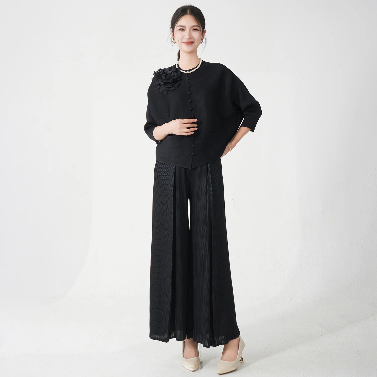 Wholesale Clothing Women's Fashion Set Designer Stretch Casual Top and Pants Two-Piece Miyake Pleated Set