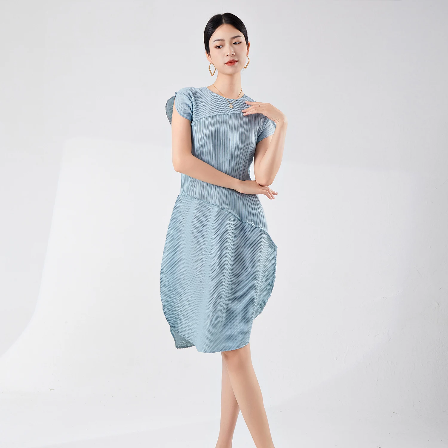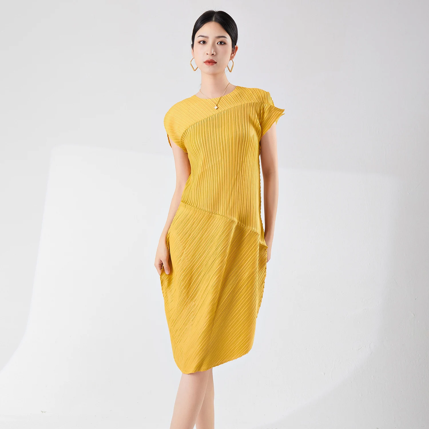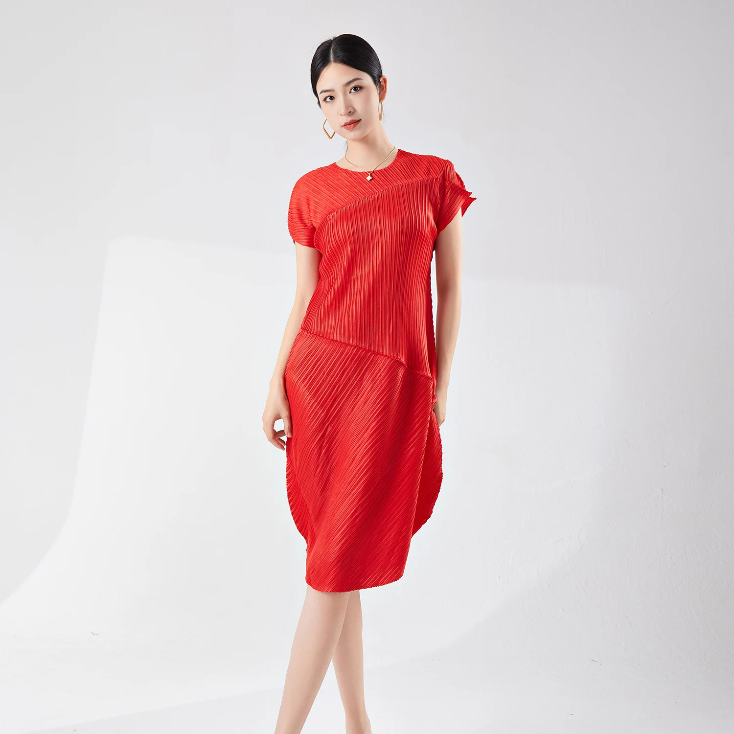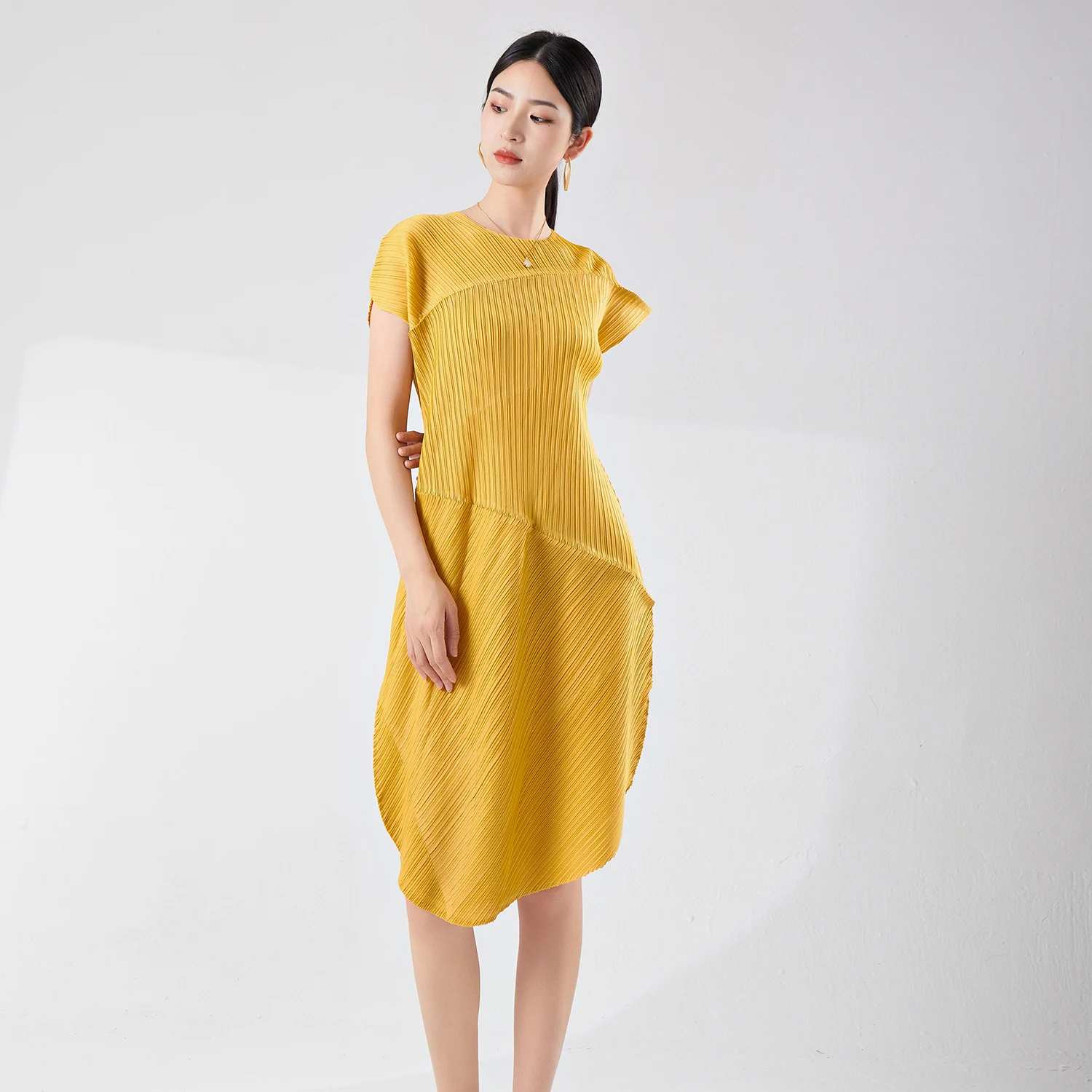 Women's Elegant Mid-Length Dress for Summer New Casual Dress With Short Sleeves Customizable Miyake Dress