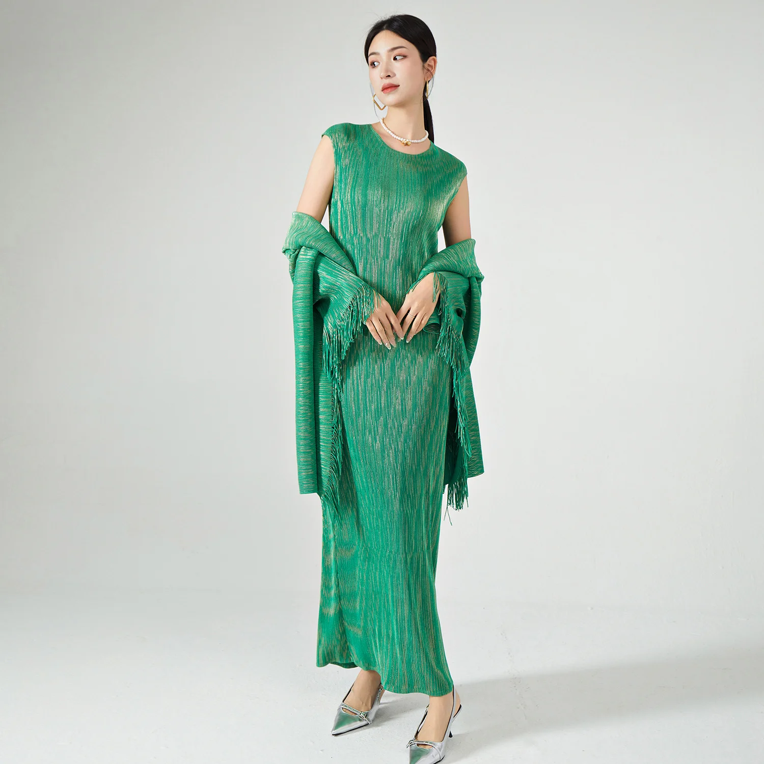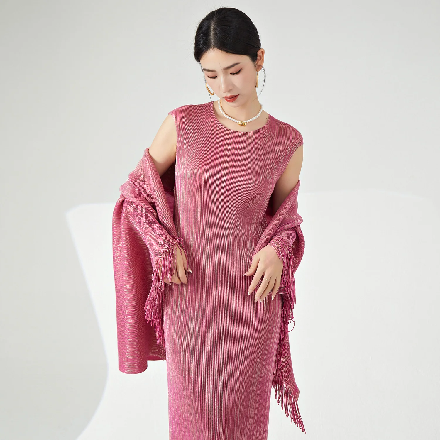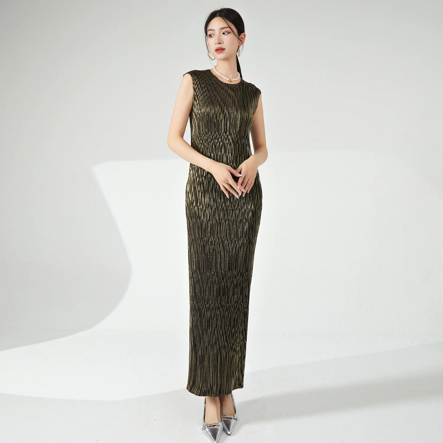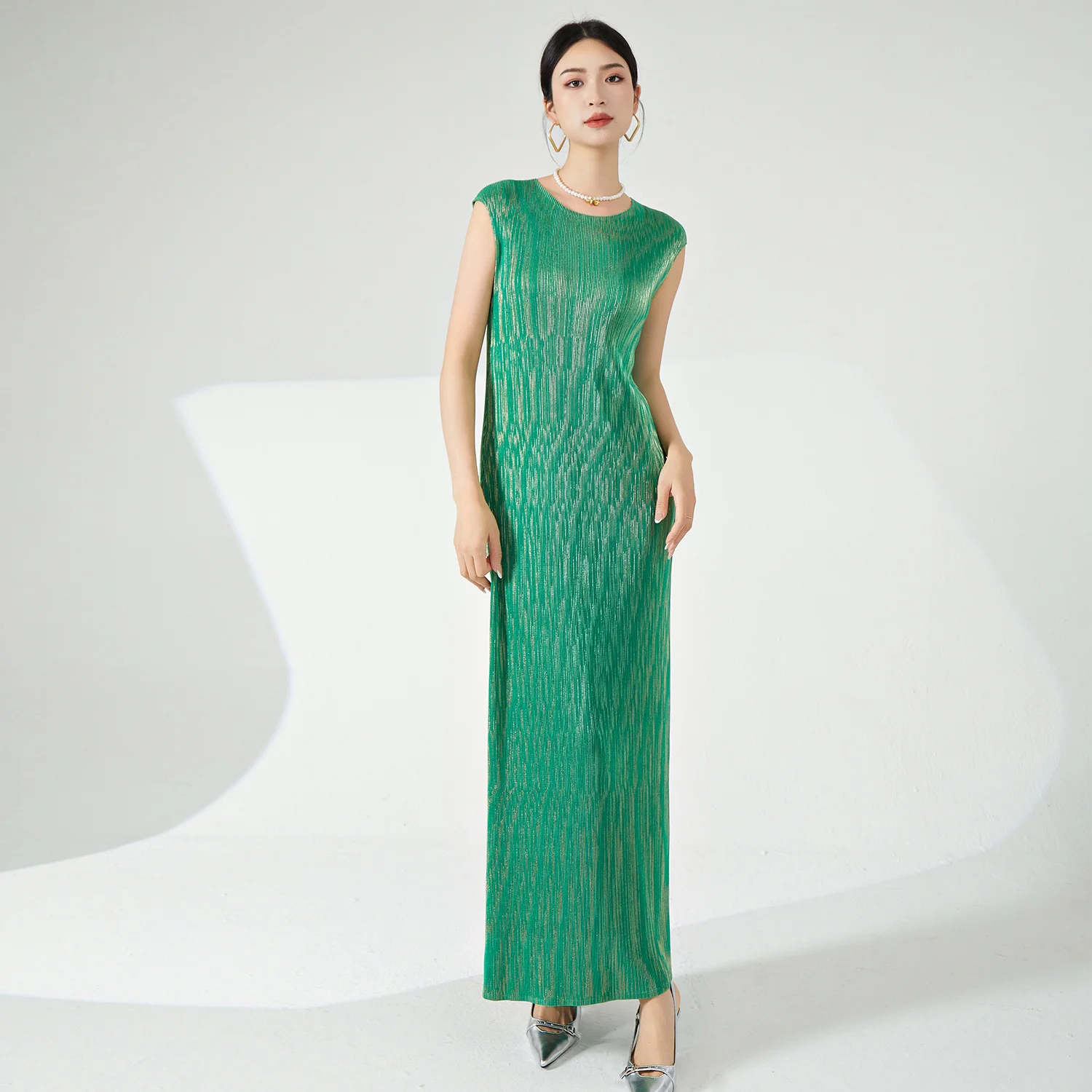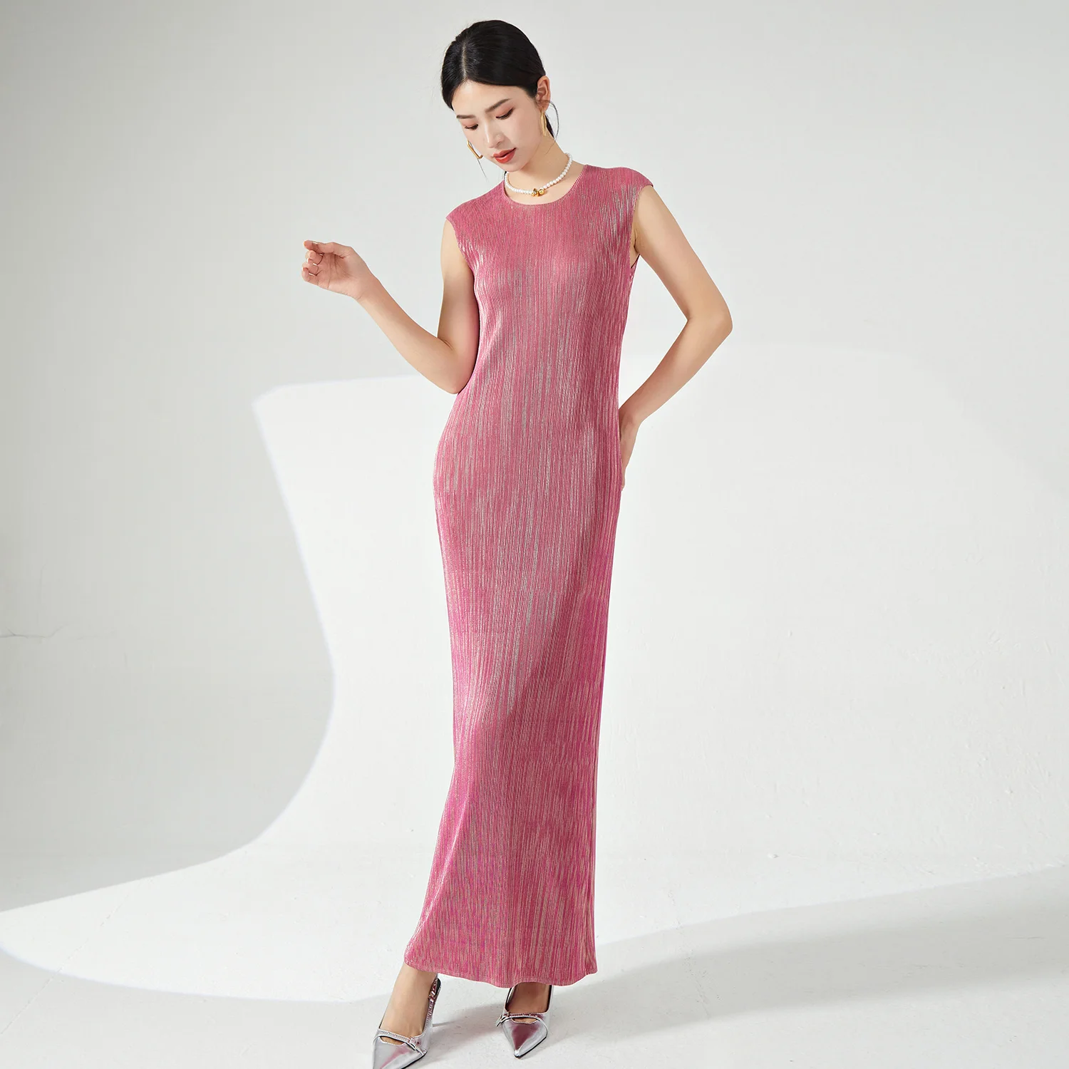 Miyake Summer Women's Dress High Quality Stretch Sleeveless Dress With Elegant Floral Print Fits Perfectly Women's Personality