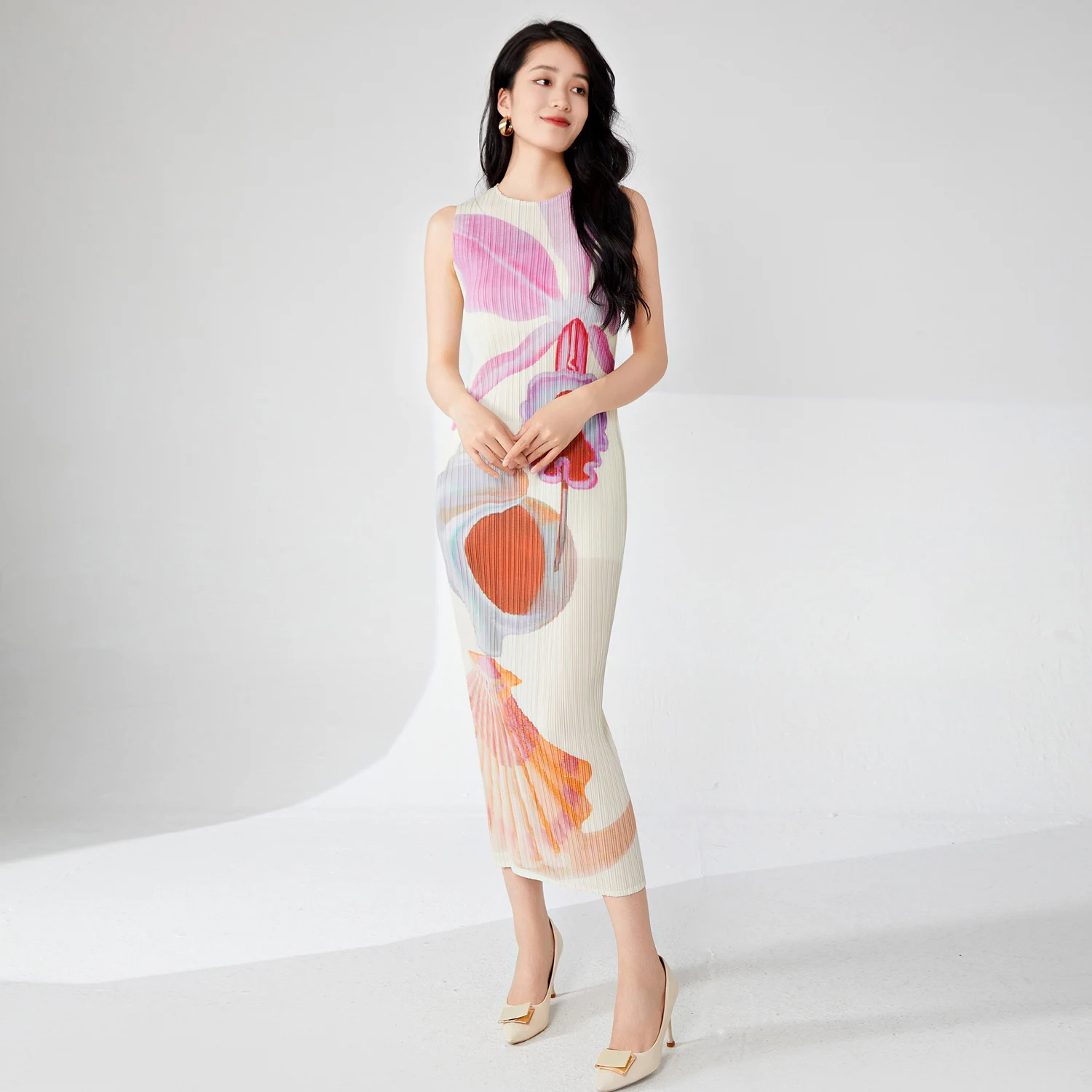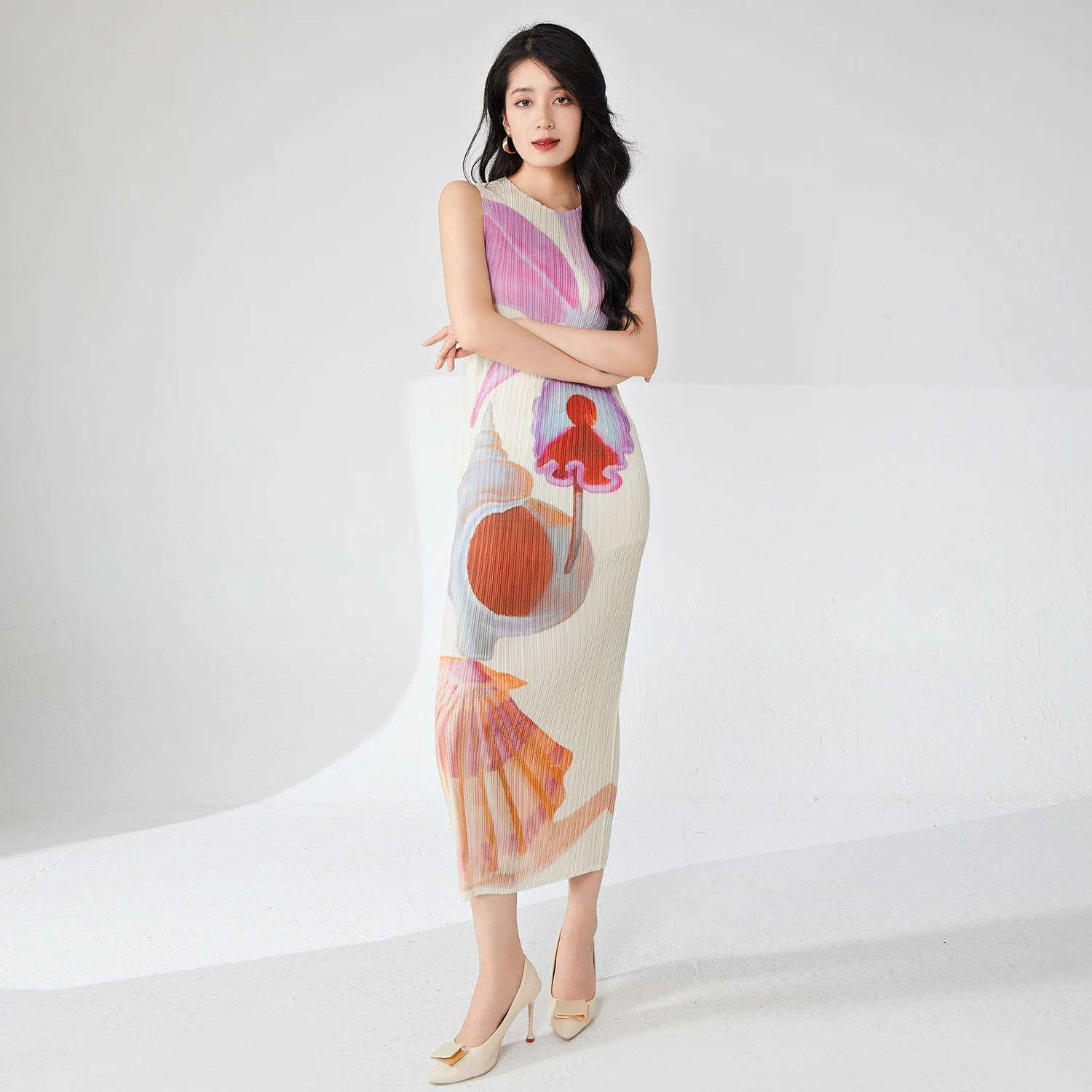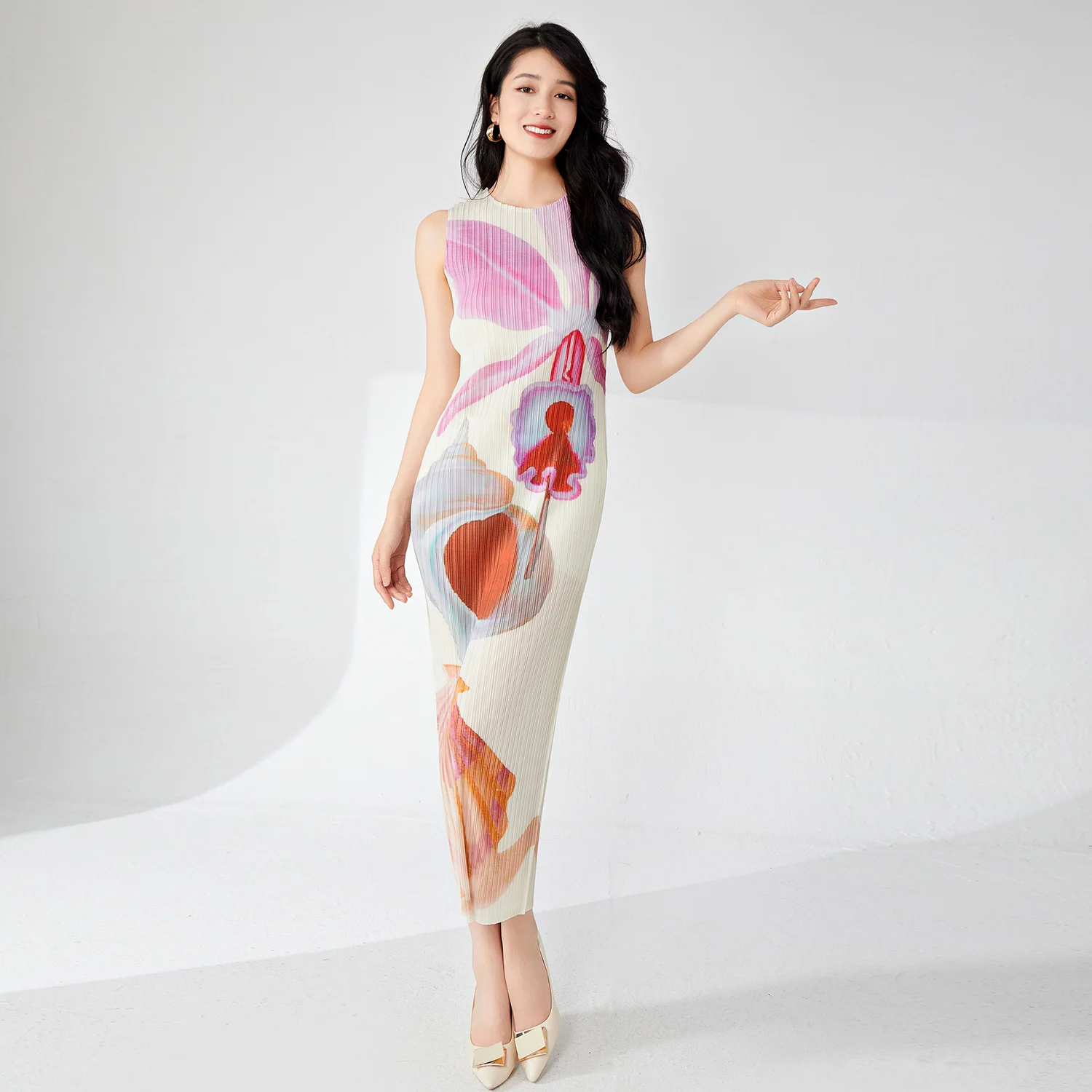 2025 Summer New Fashion High Design Printed Skirt Temperament Casual Long Dresses Sleeveless Women's Dress