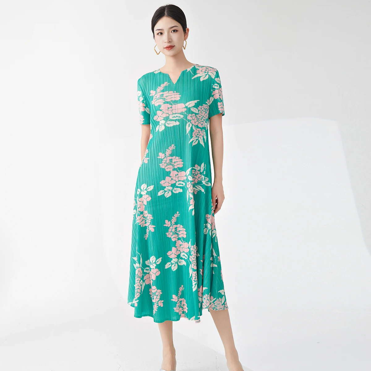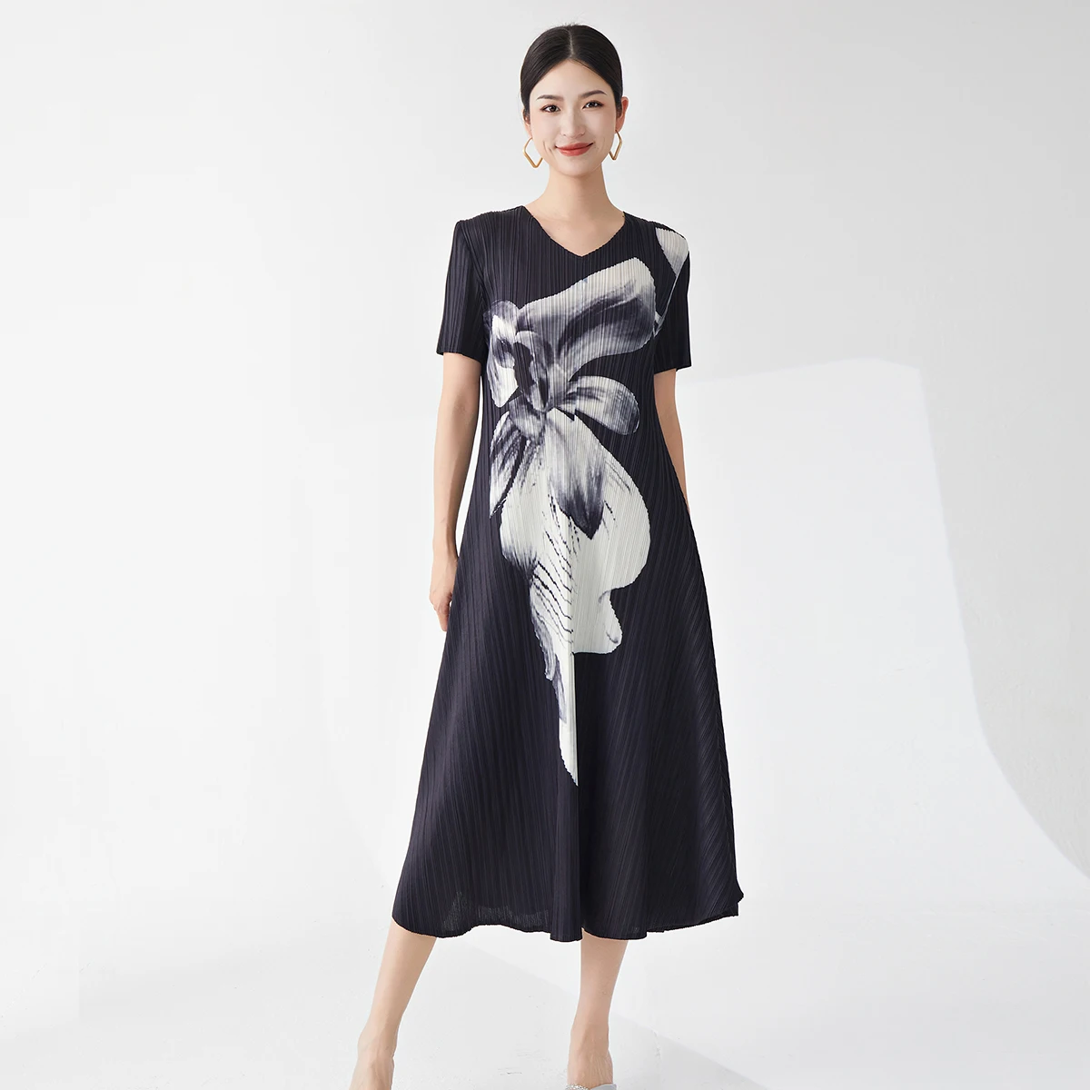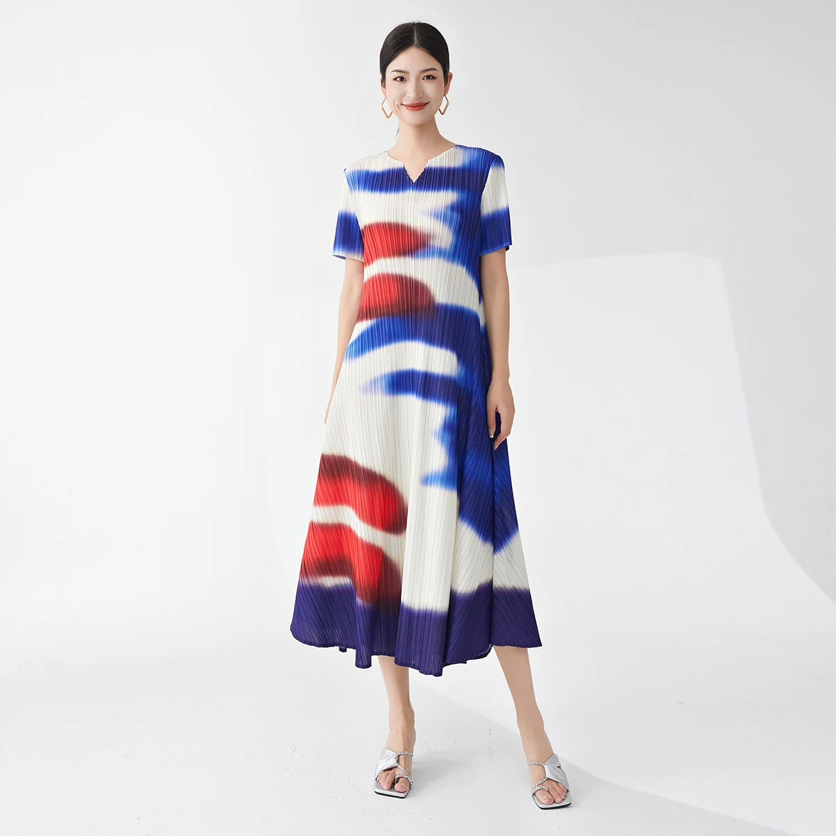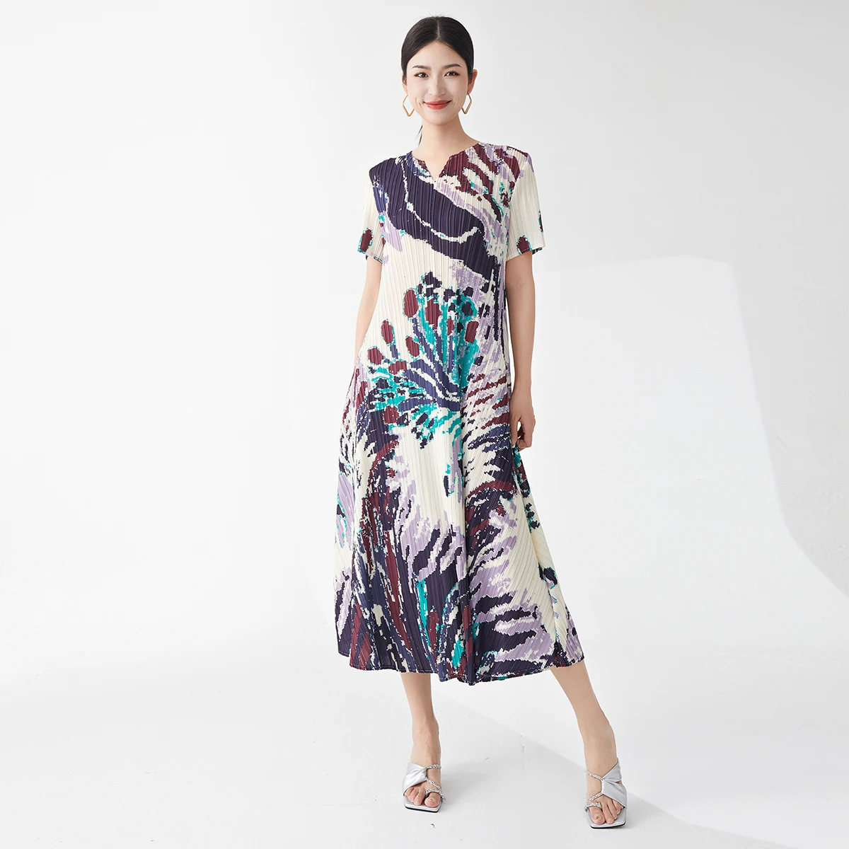 Wholesale Women's Casual Dress 2025 Latest Design Miyake Dress Polyester Fabric Printing Dress