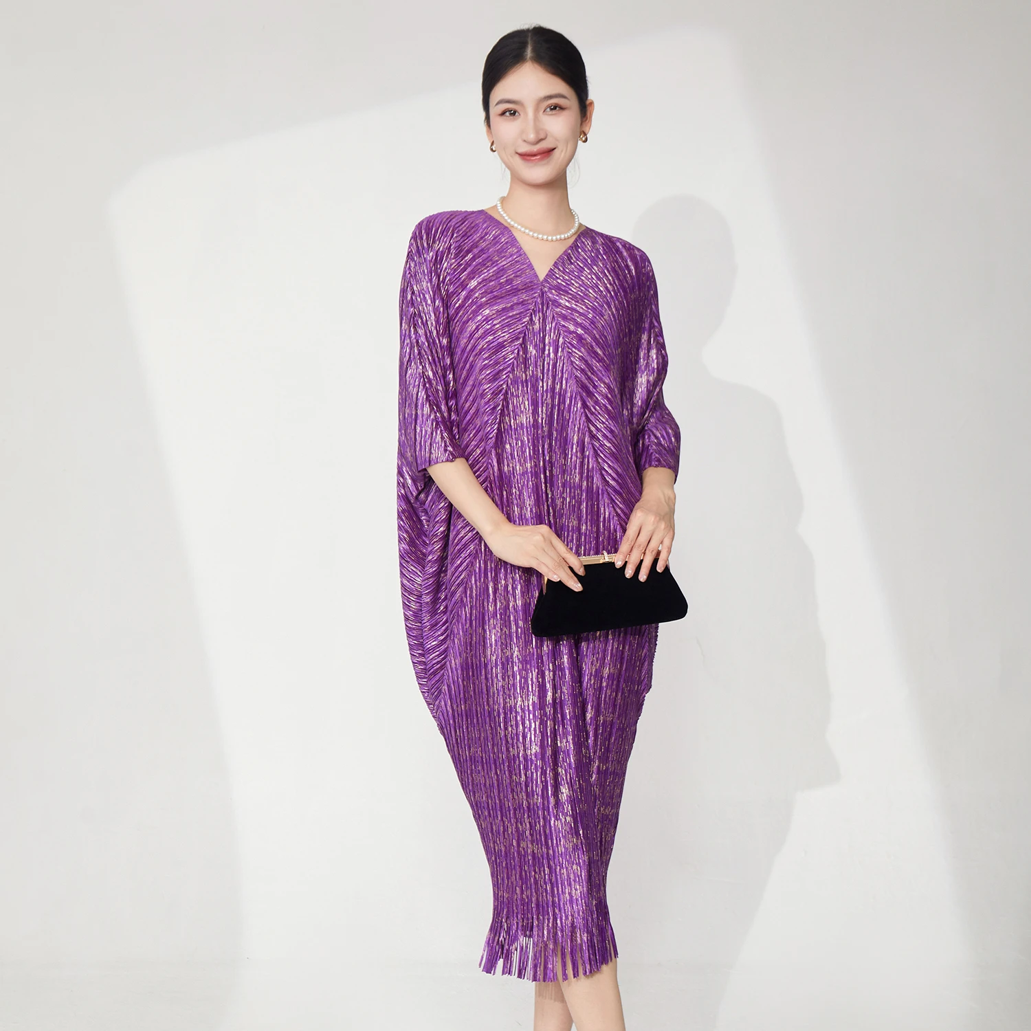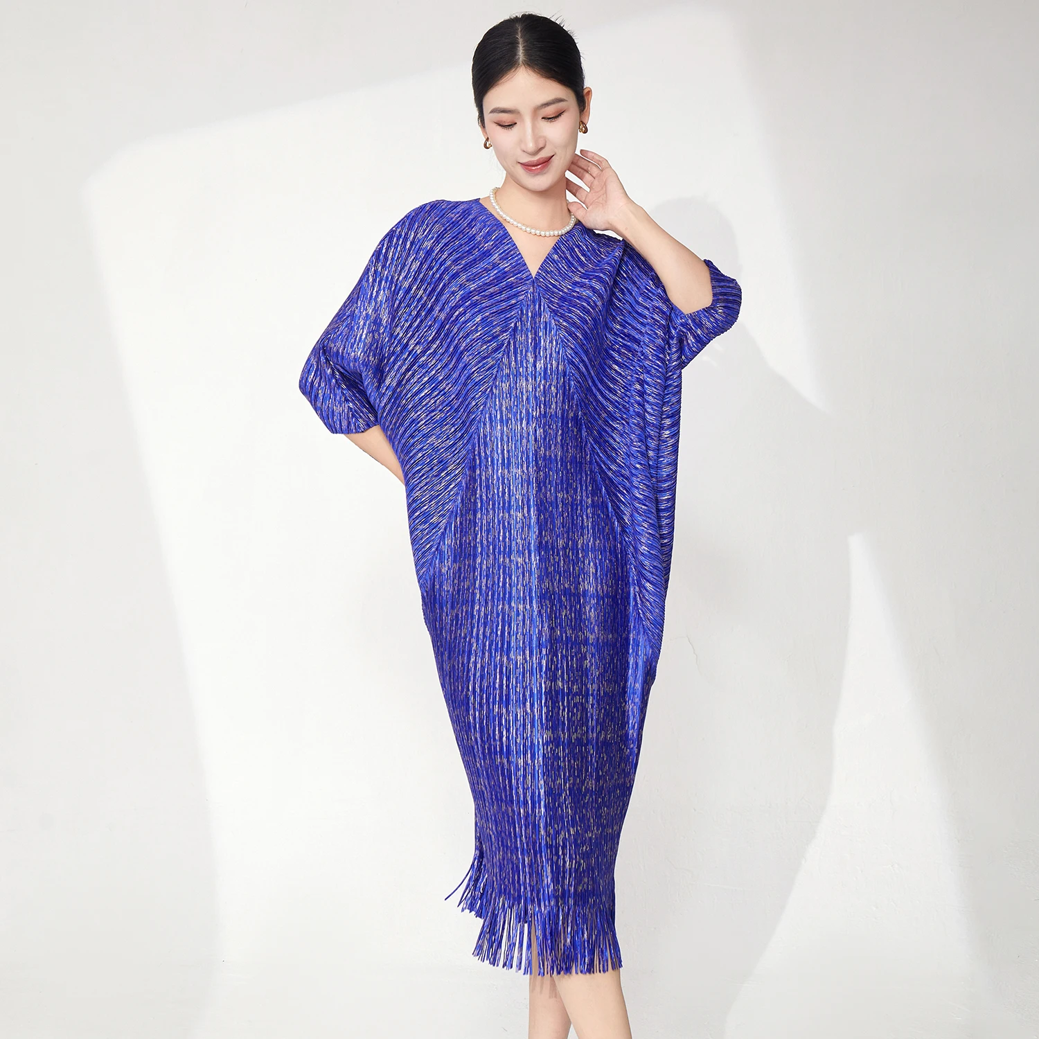 Wholesale Clothing Women's Fashion Dress Designer V-Neck Bat Sleeve Dress Plus Size Loose Tassel Dress