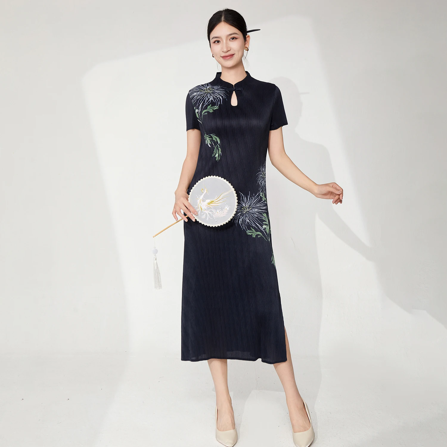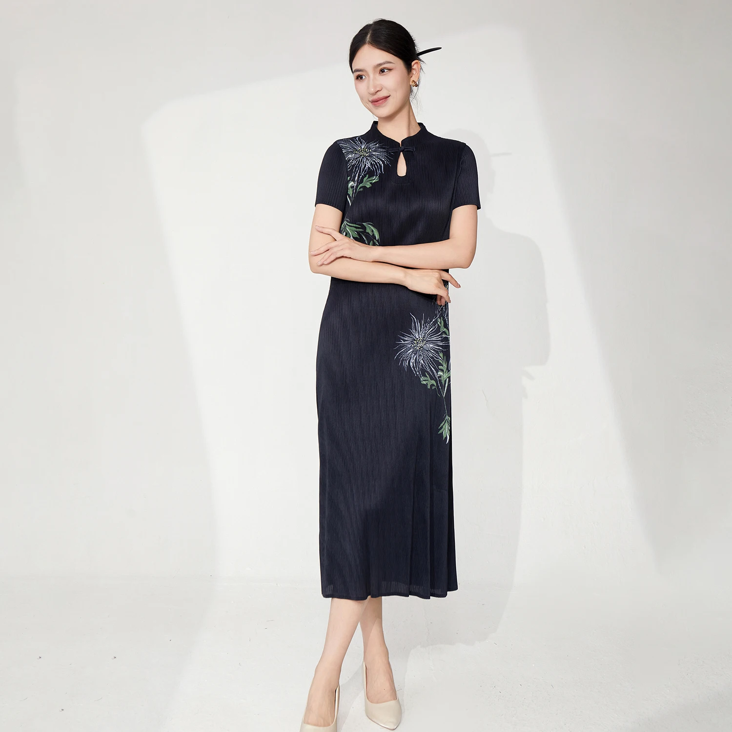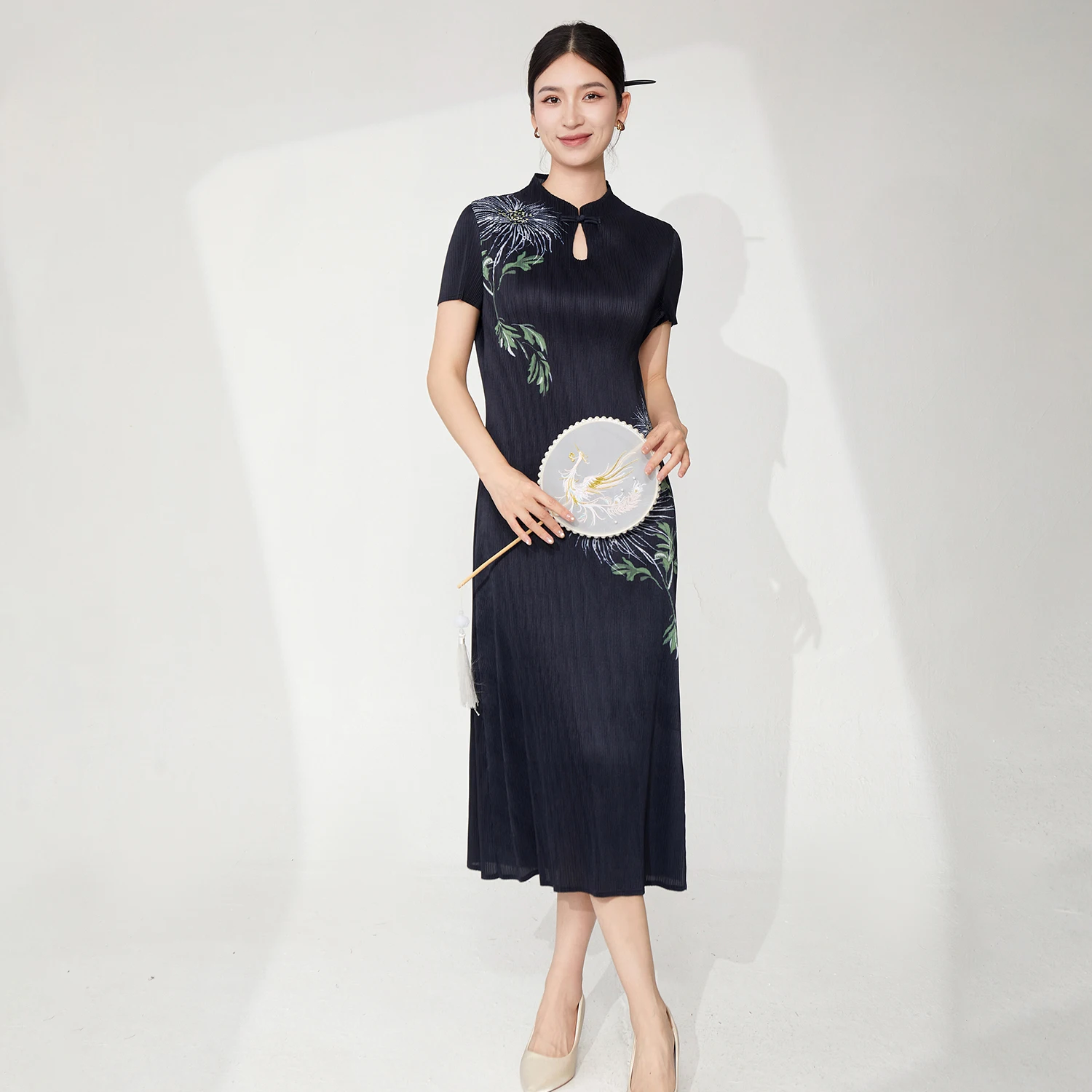 New Arrival 2025 Women's Elegant Dress High Quality Design Vintage Stretch Pleated Print Dress