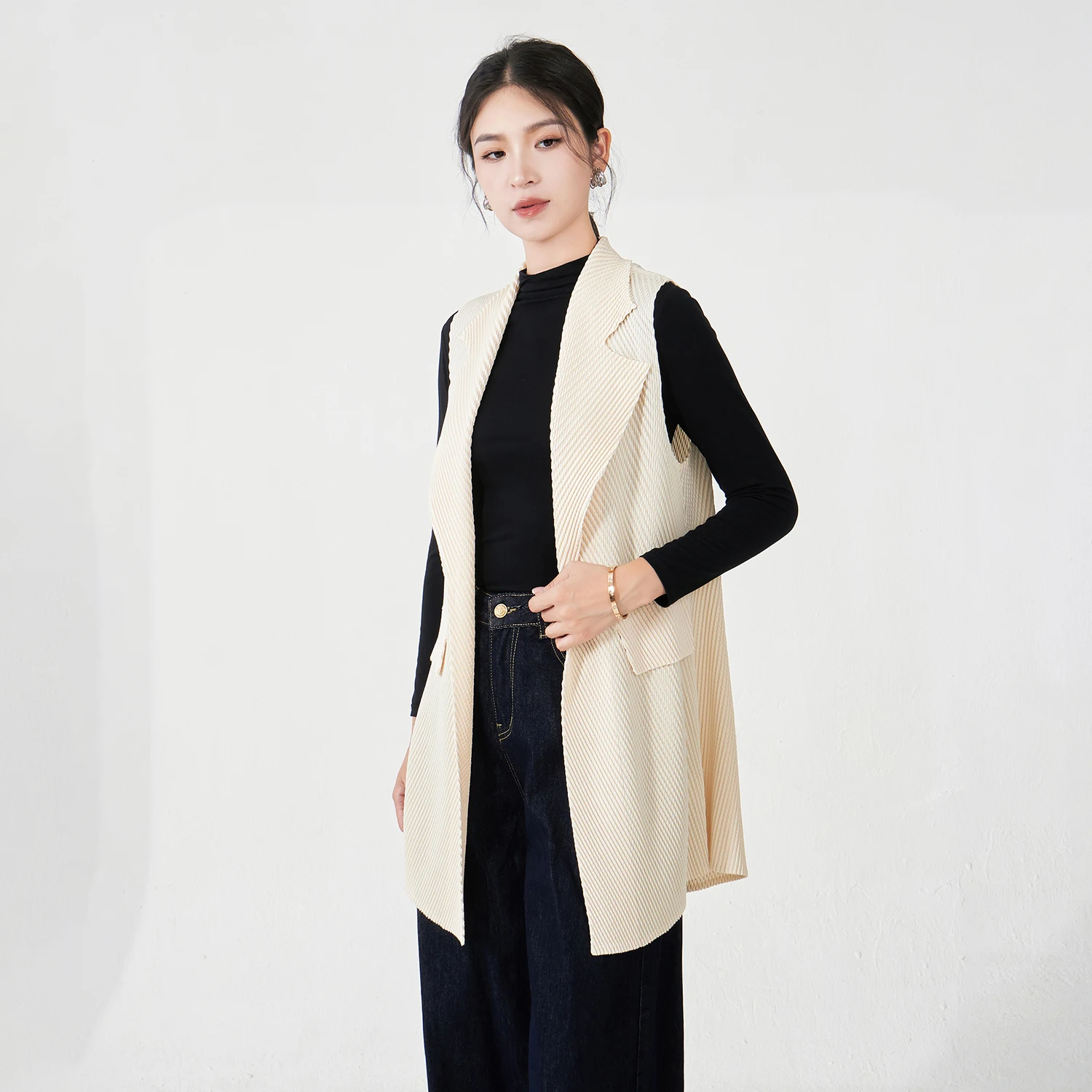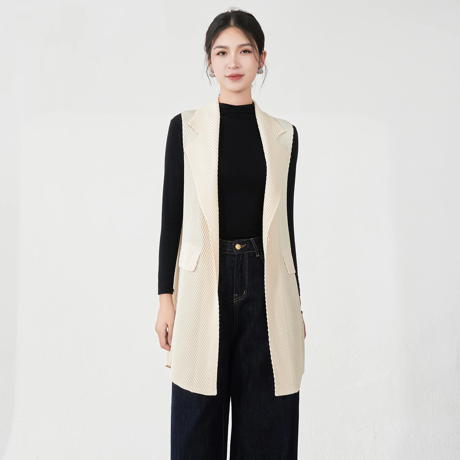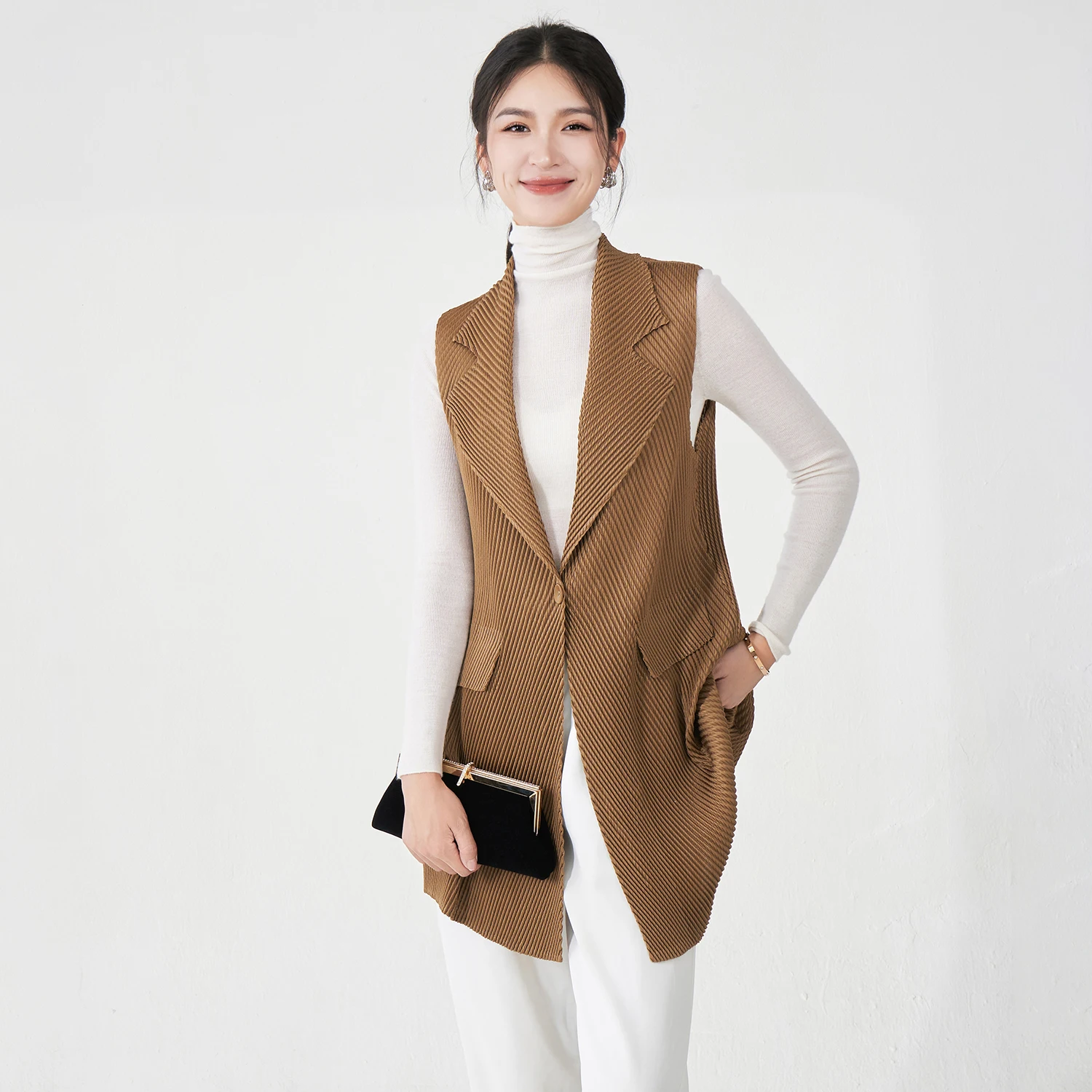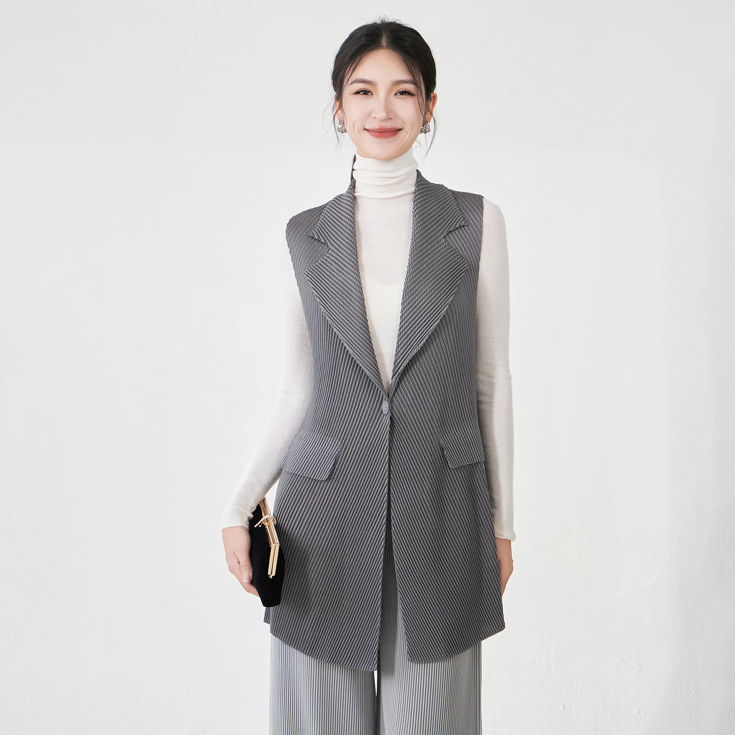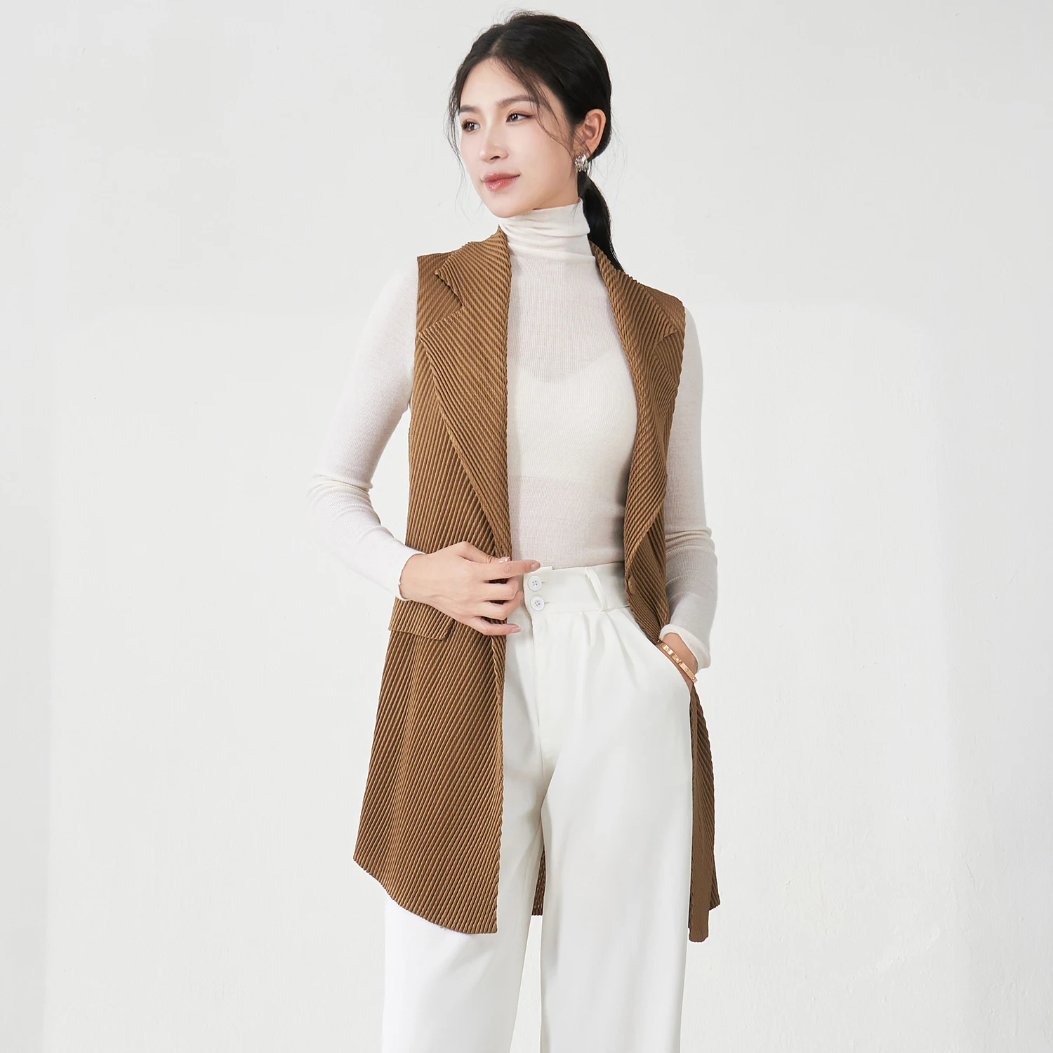 Factory Wholesale Women's Fashion Vest Design Sense High Quality Elastic Solid Color Top Miyake Pleated Vest