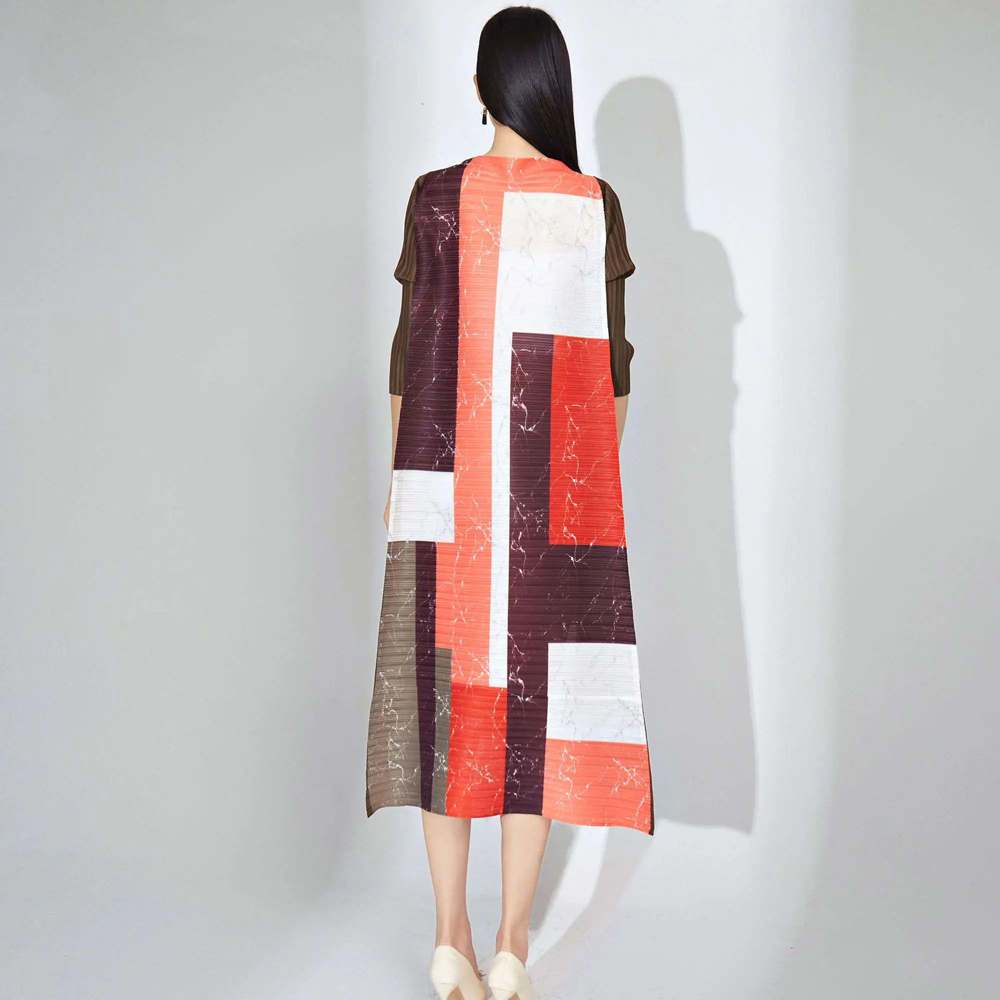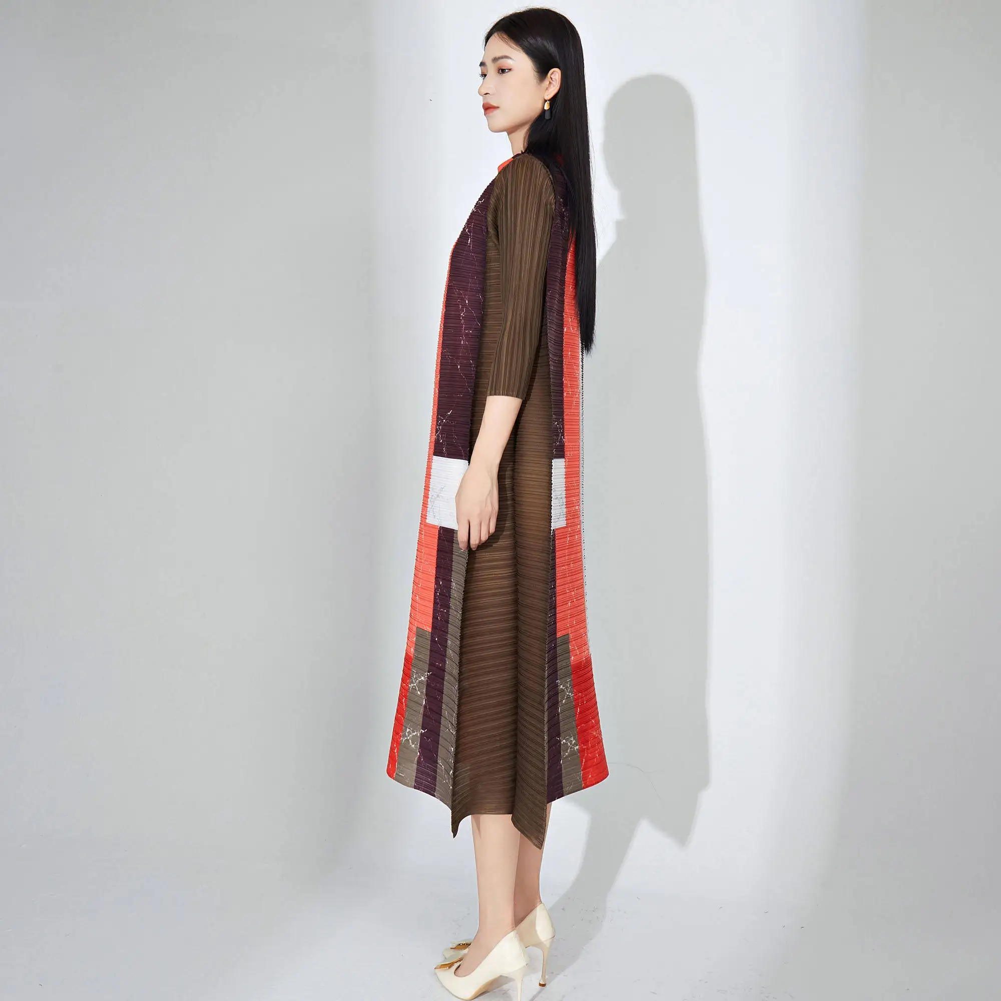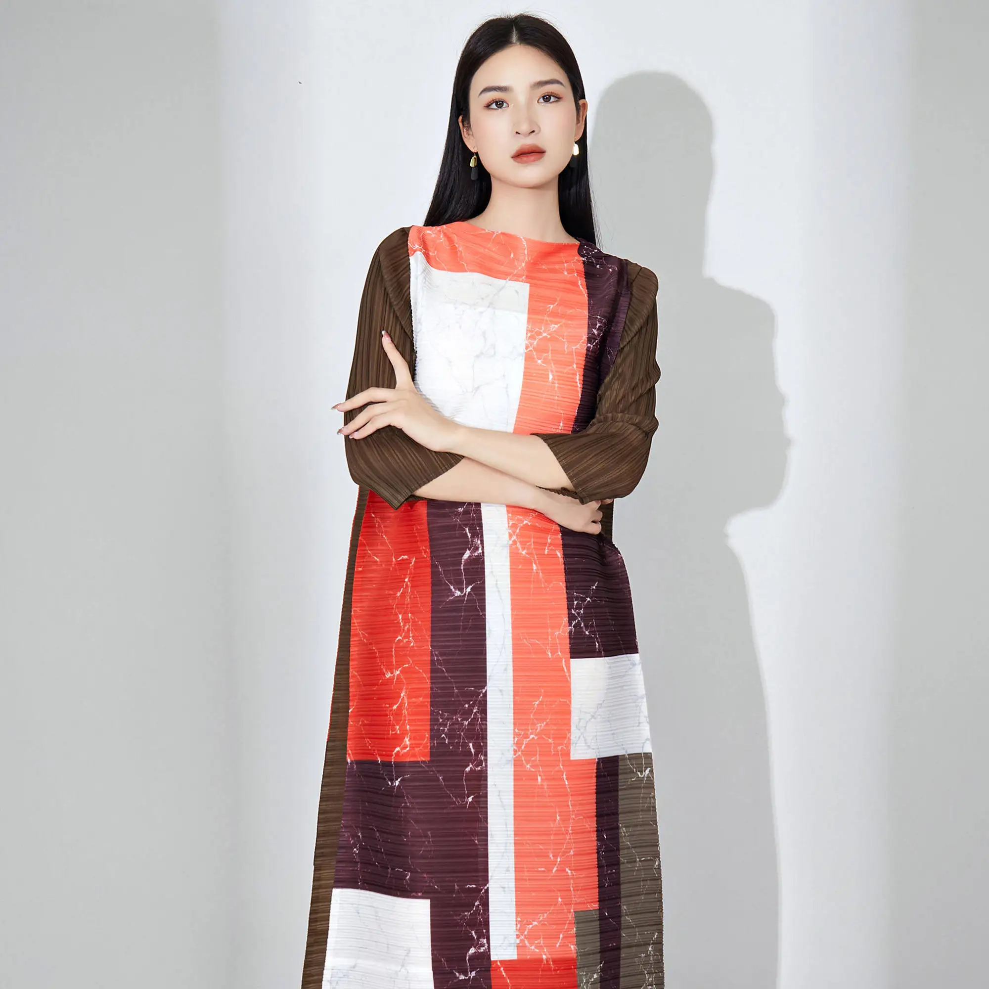 Miyake Women's Plus Size Pleated Dress 2025 European and American Fashion Extra Large Size Casual Dress With Print