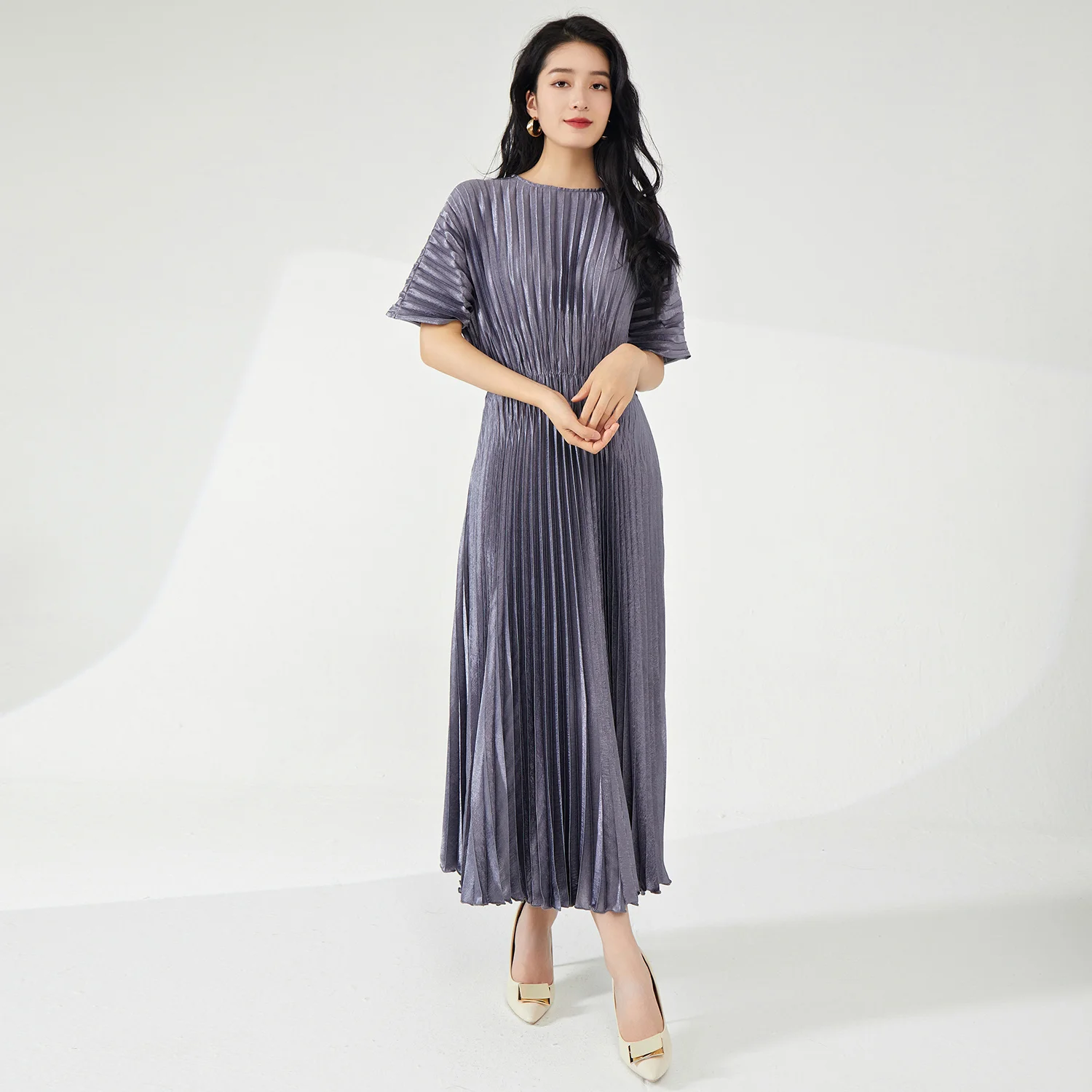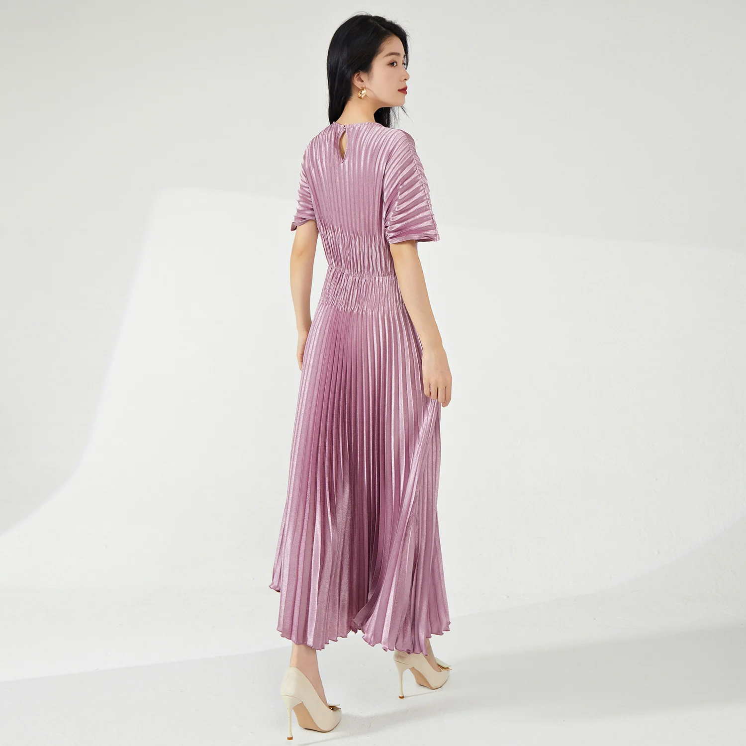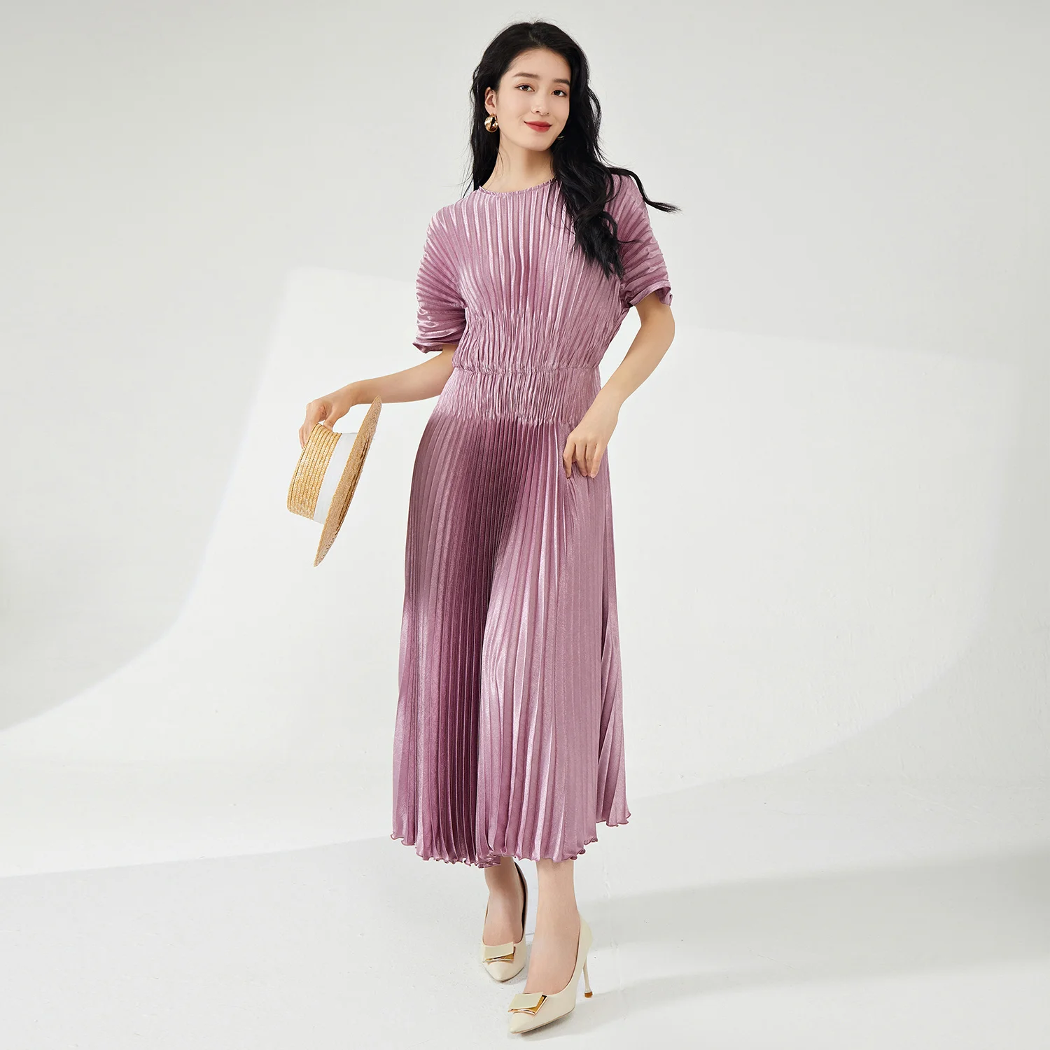 Summer New Women's Mid-Length Dress Fashionable Elastic Pleated Design With Short Sleeves Casual Woven Fabric Dress