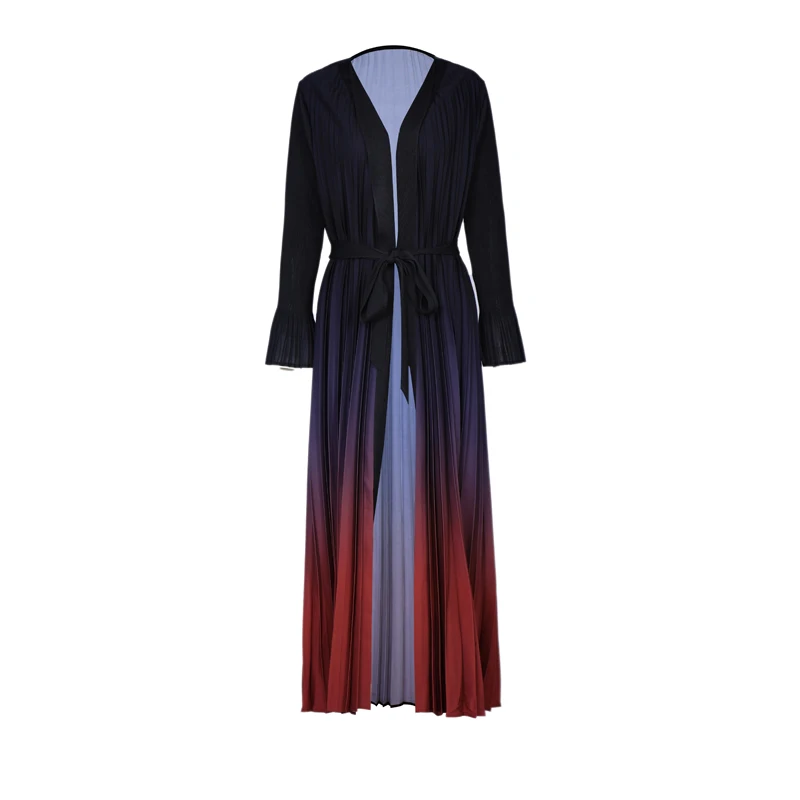 New Arrival 2025 Muslimah Clothing Wholesale Miyake Pleated Abaya Women's Gradient Fashion Coat Casual Polyester Free Size