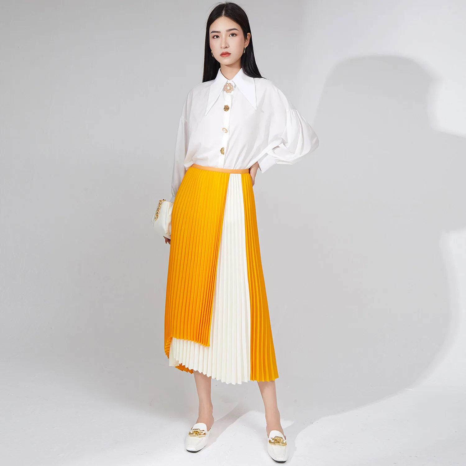 Asymmetrical A-line Skirt Fall 2023 New Arrival High Waist Slimming and Pleated Midi Skirt