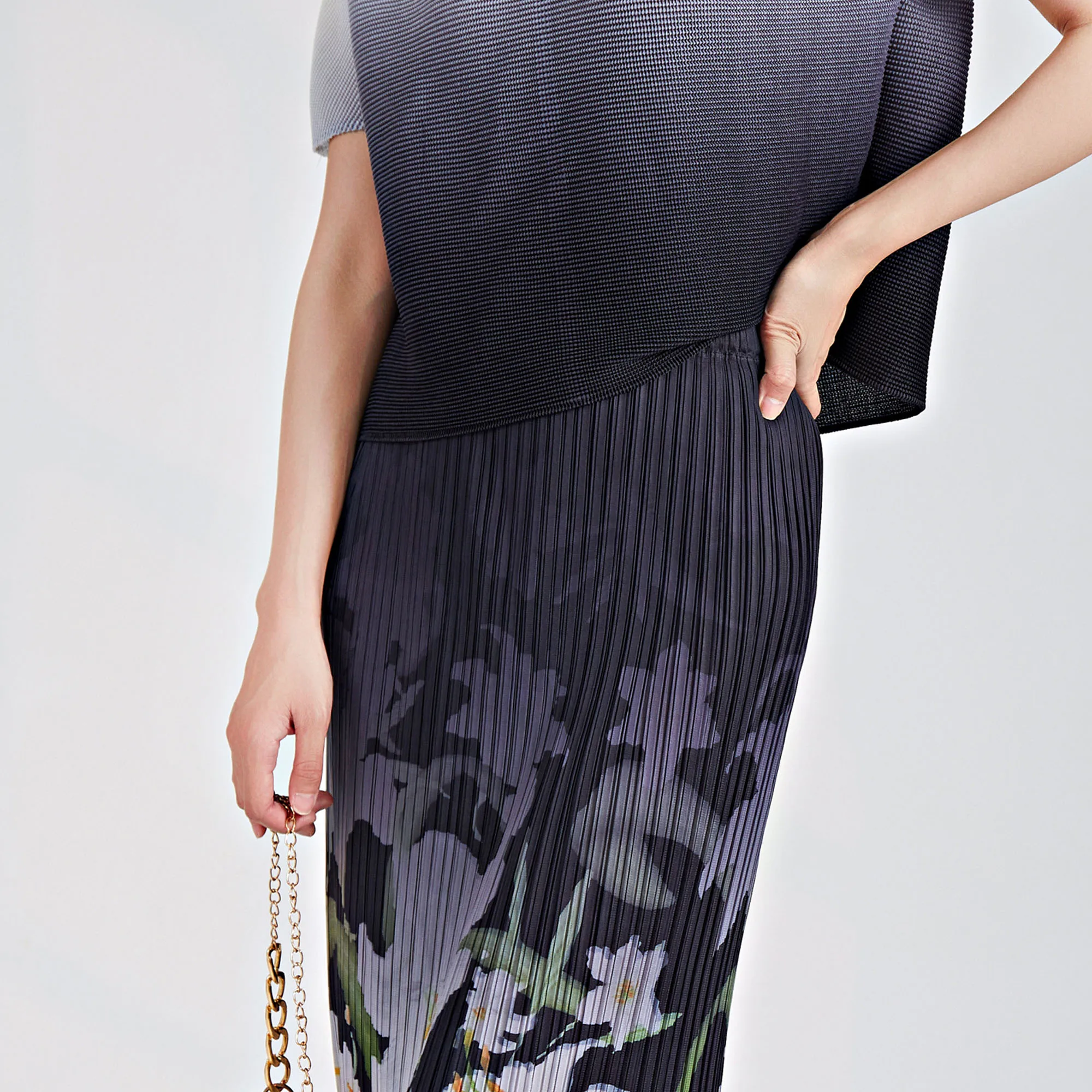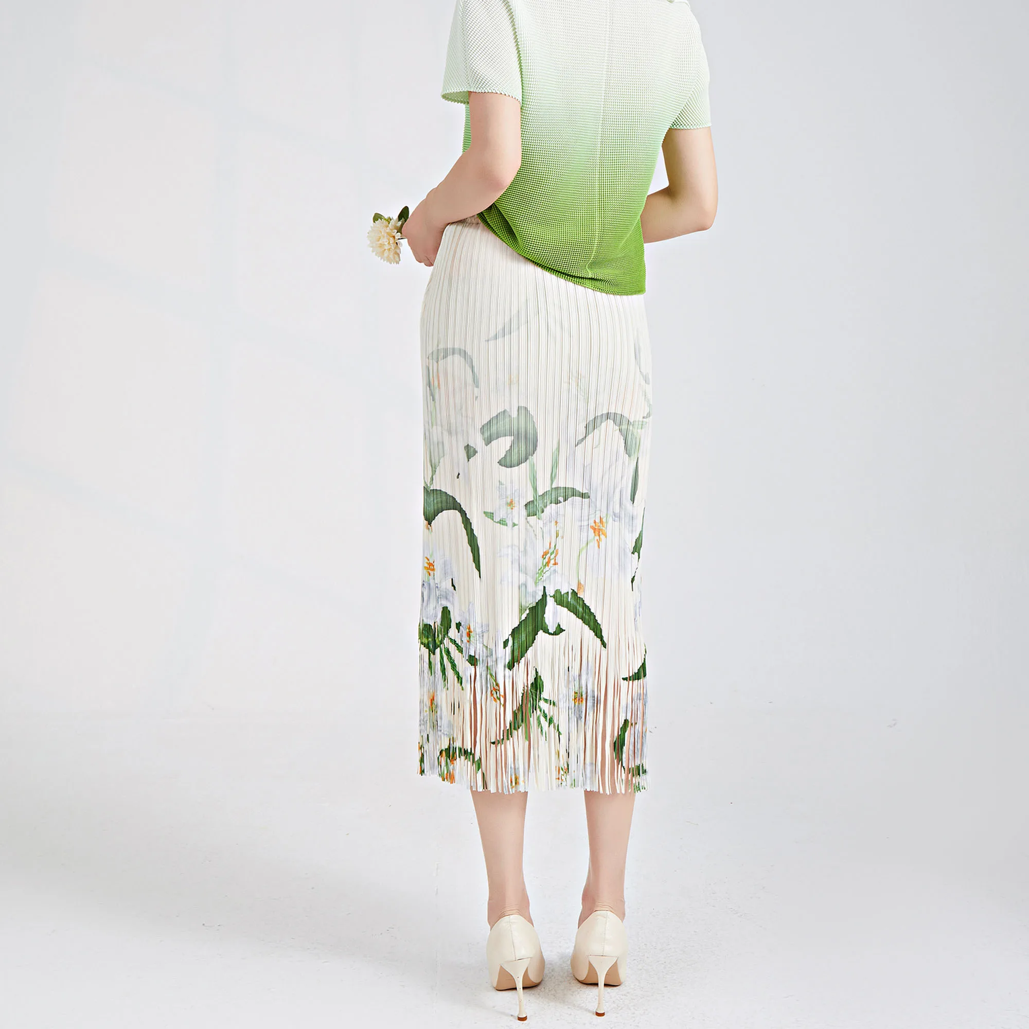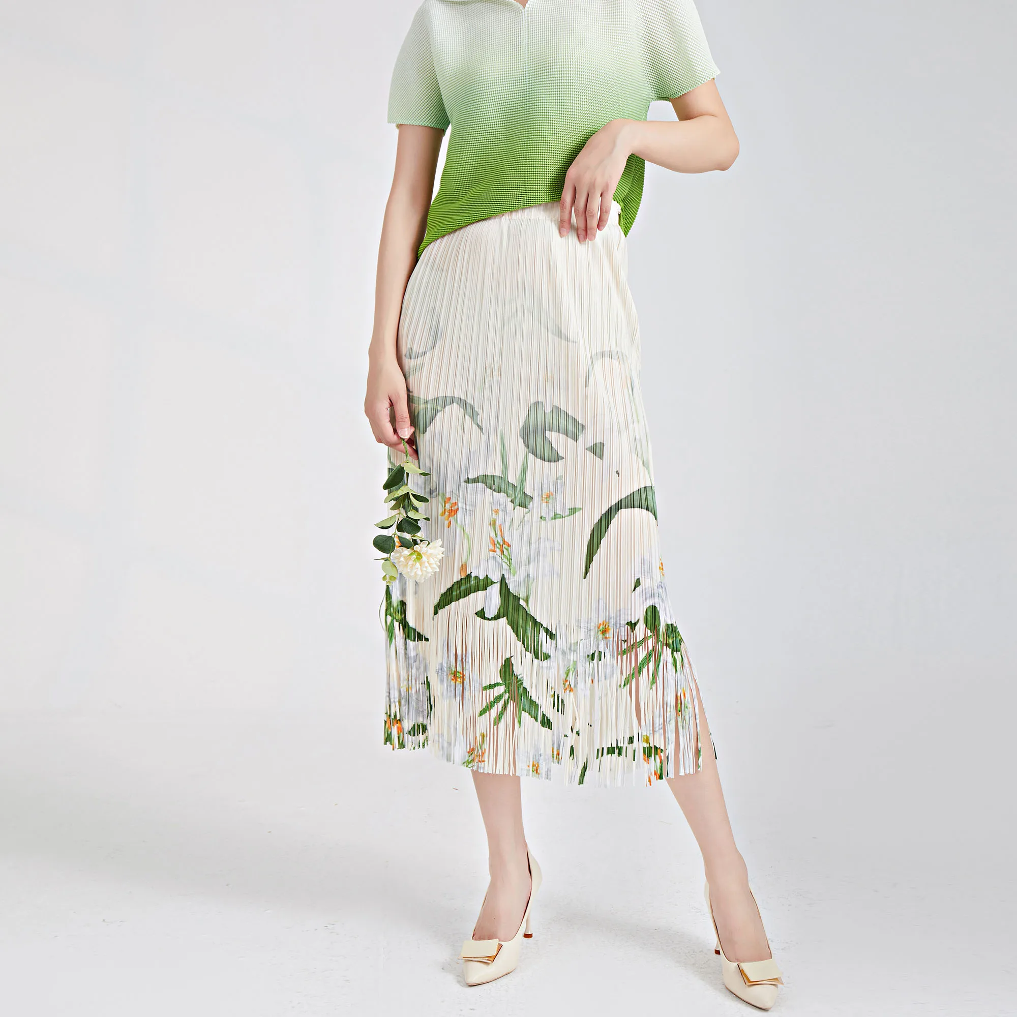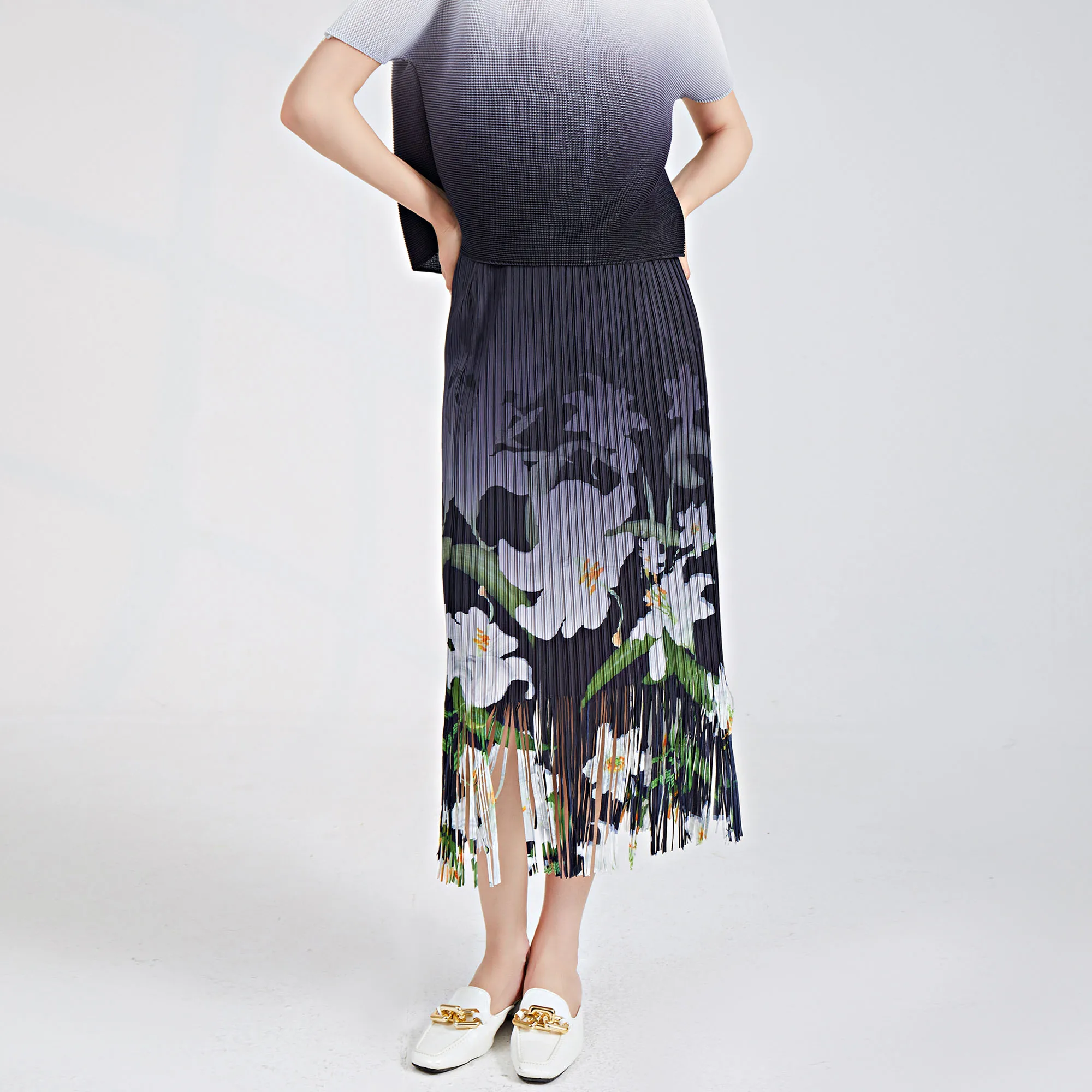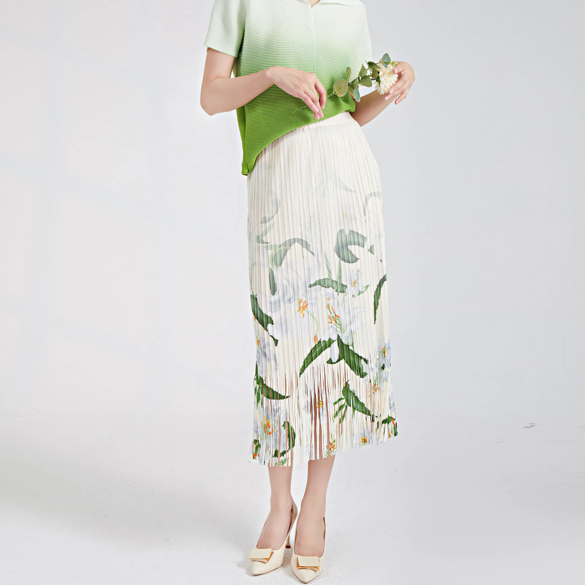 Hot Selling Fringed Midi Skirt for Women 2025 Summer New Elastic Waist Printed Versatile Pleated Pencil Skirt