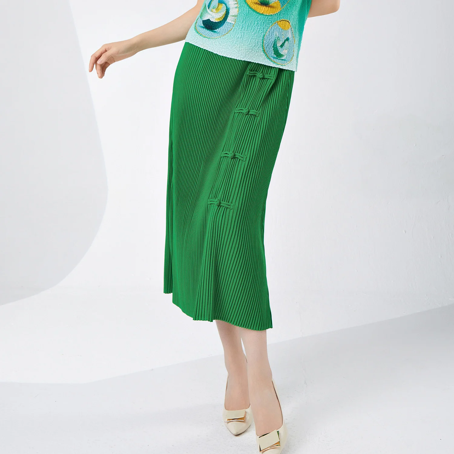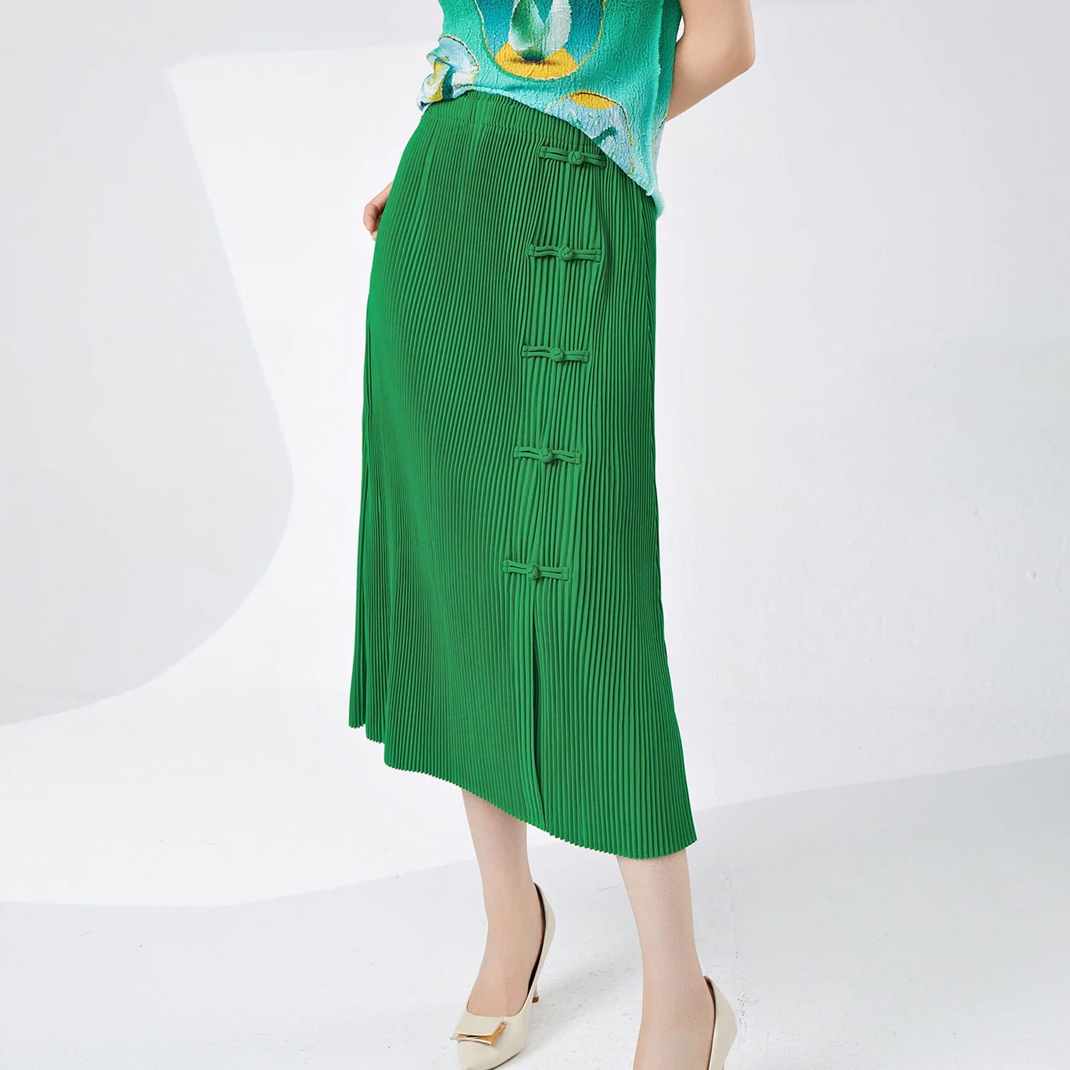 High Quality Women's Vintage Style A-Line Skirt Pleated and Loose Stretch Solid Color Elegant Temperament Summer Skirt