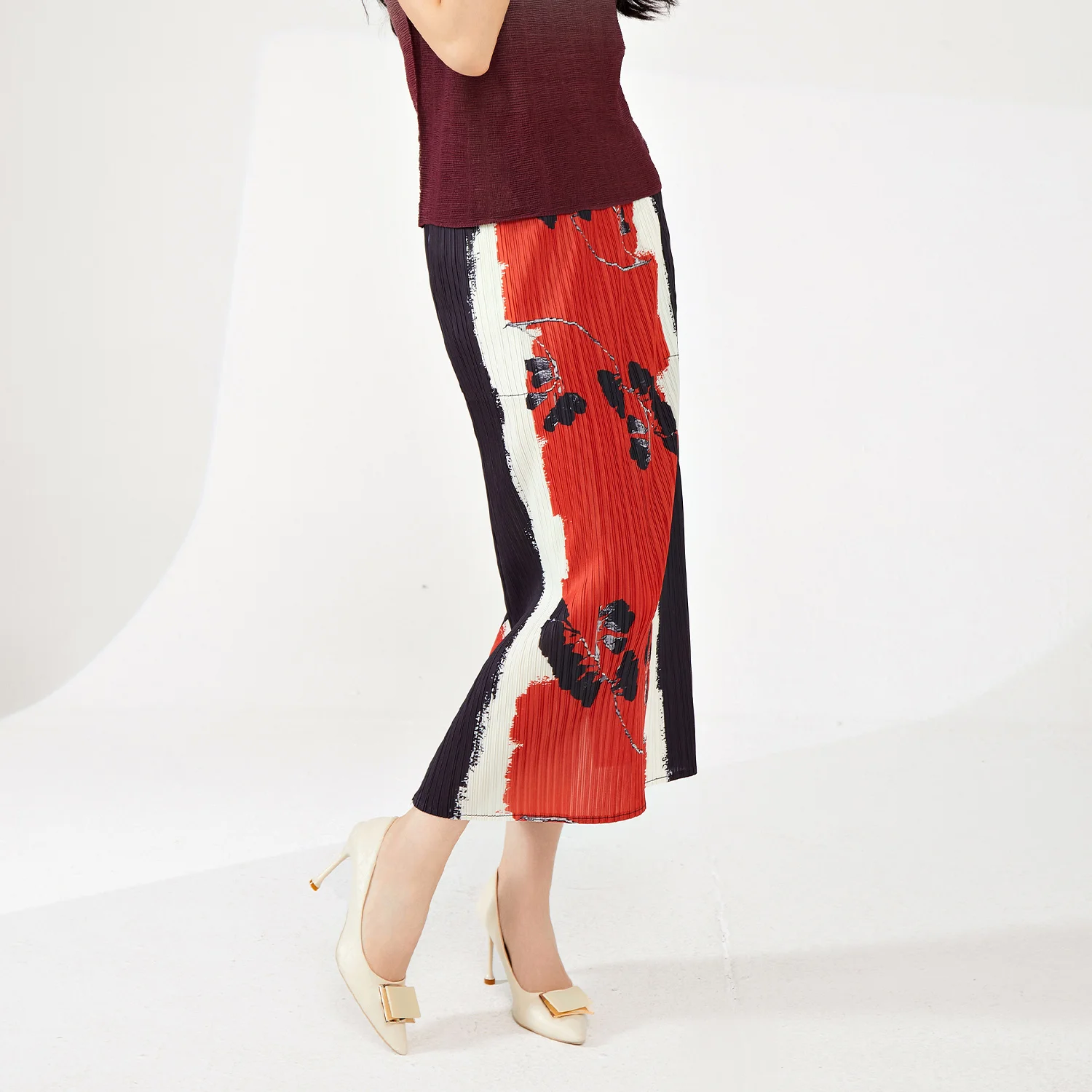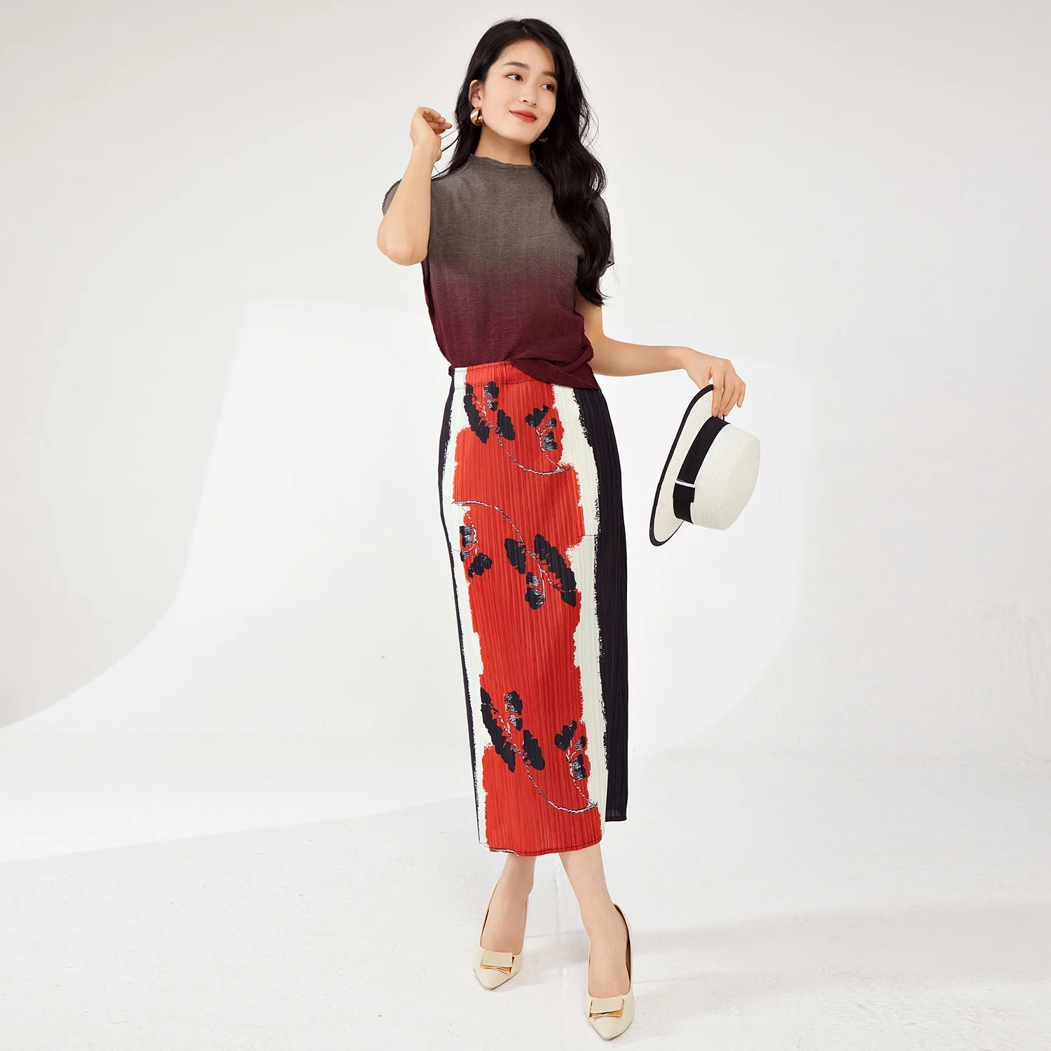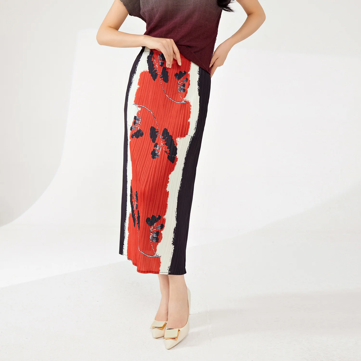 2025 Latest Summer Women's High Quality Pleated A-Line Skirt Fashionable Stretch Printed Skirt Elastic Vintage Western Style