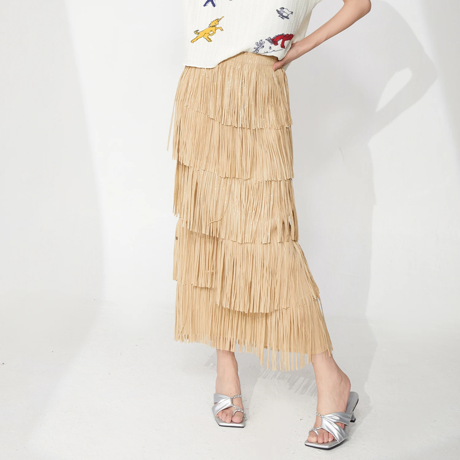 Direct From the Factory Women's Elegant Skirt Design High Quality Stretch Tassel Skirt Summer