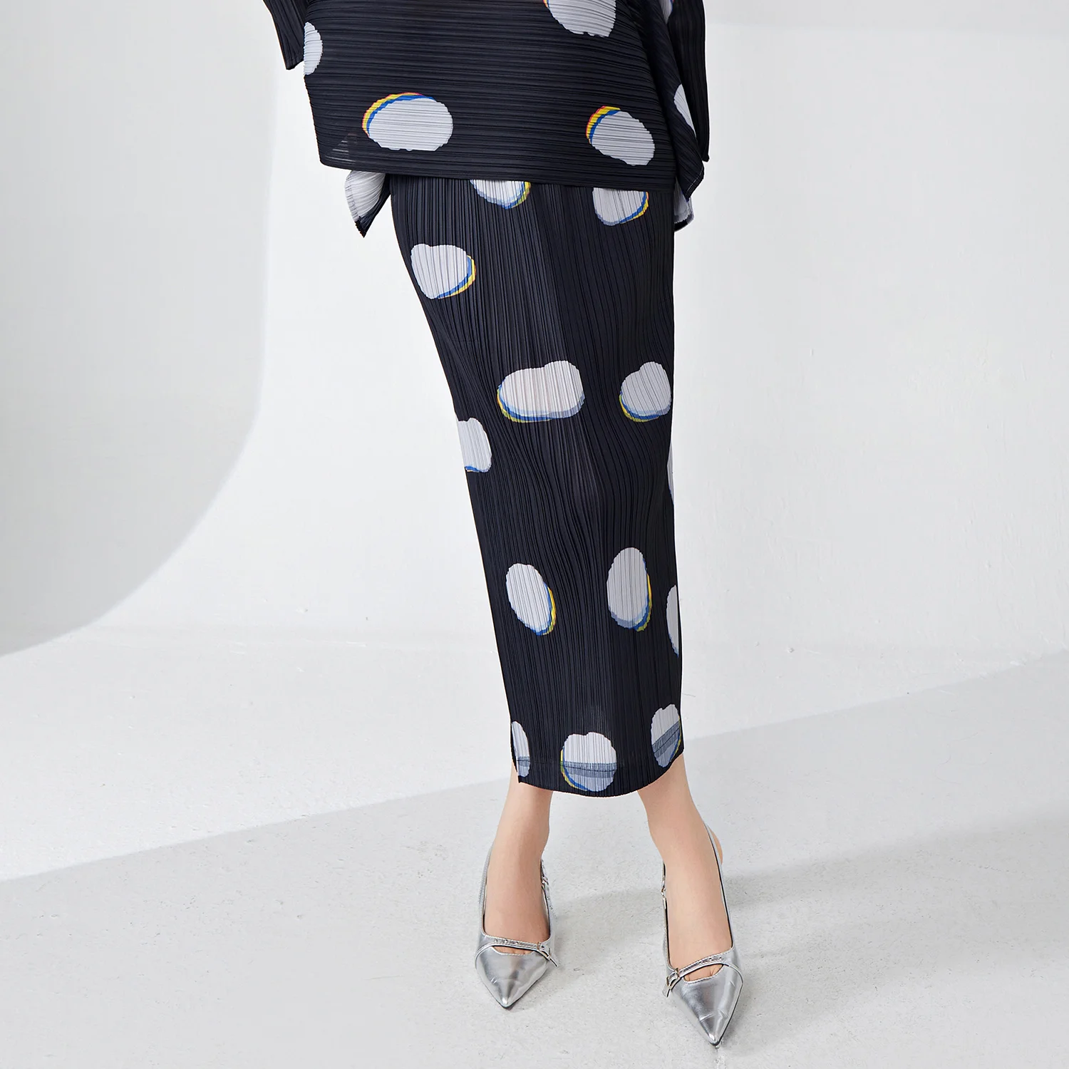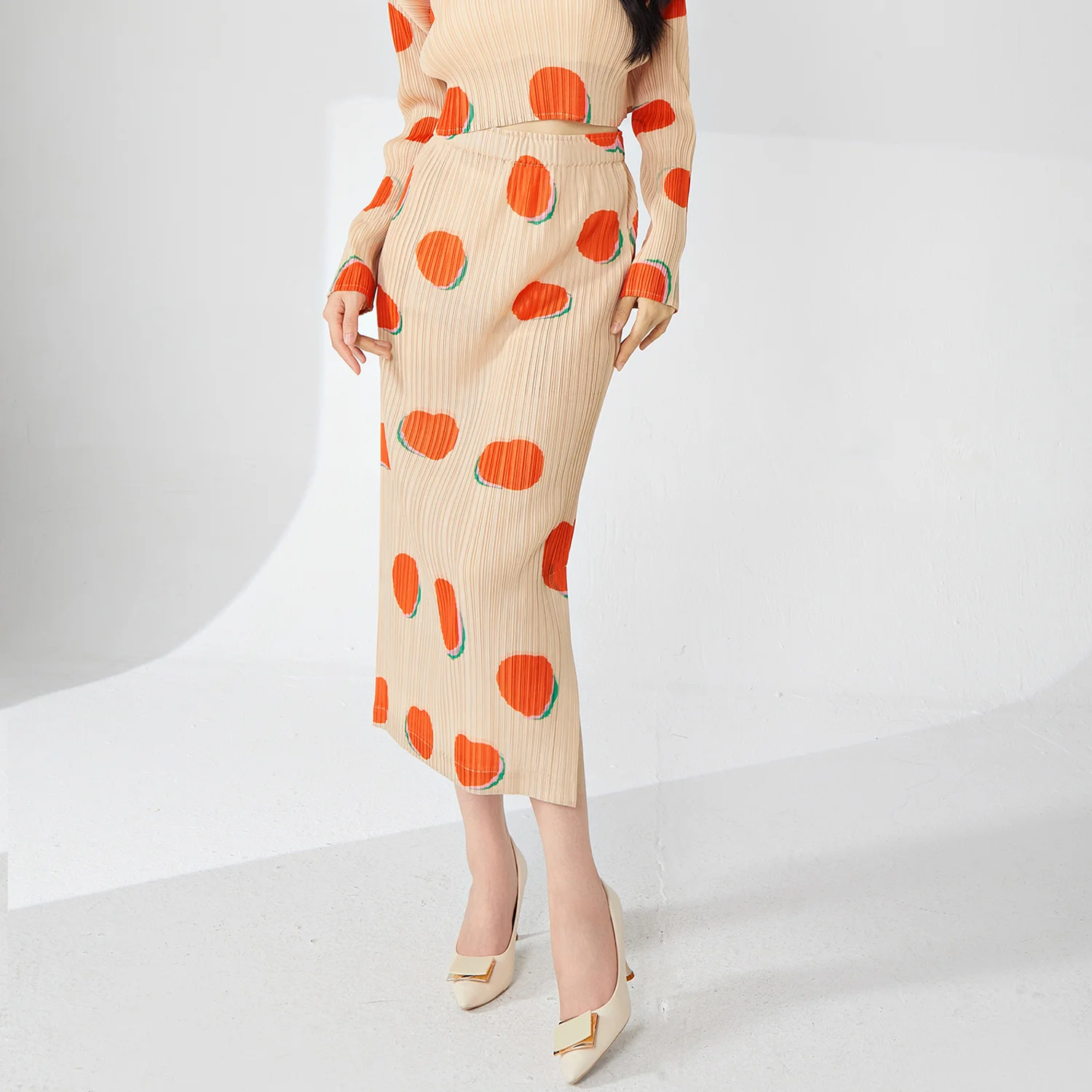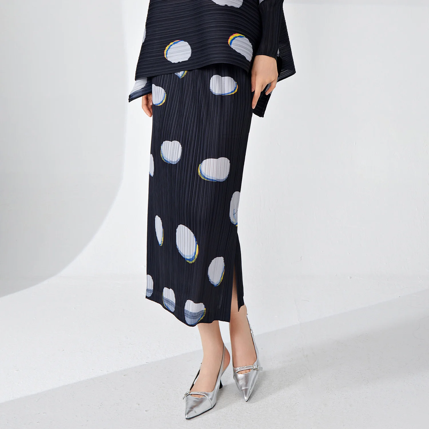 Miyake Pleated Printed Half-Length New Women's Spring and Summer Japanese Style Slim Fit Slit Hip A-Line Midi Skirt