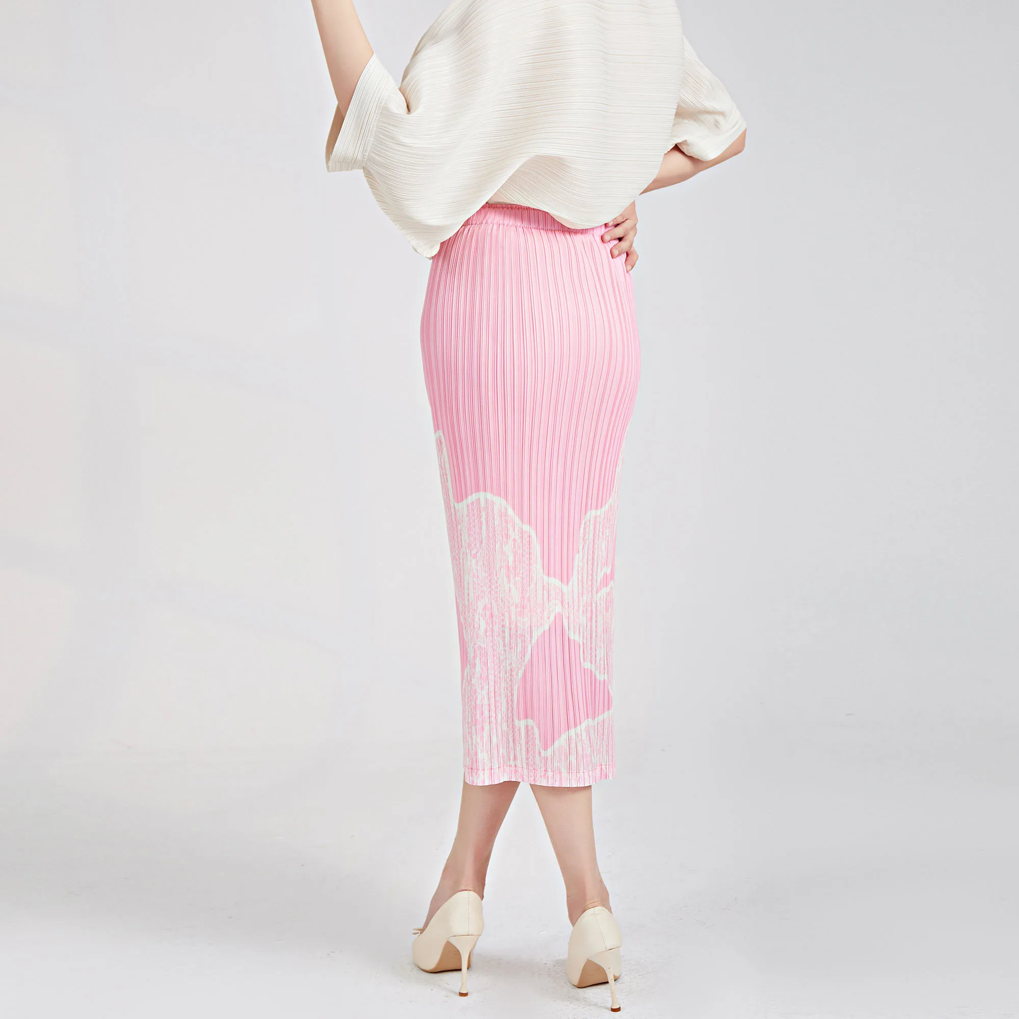 Miyake Pleated Midi Skirt Chic and Unique Print High Waist Slimming Versatile Long Pencil Skirt for Women