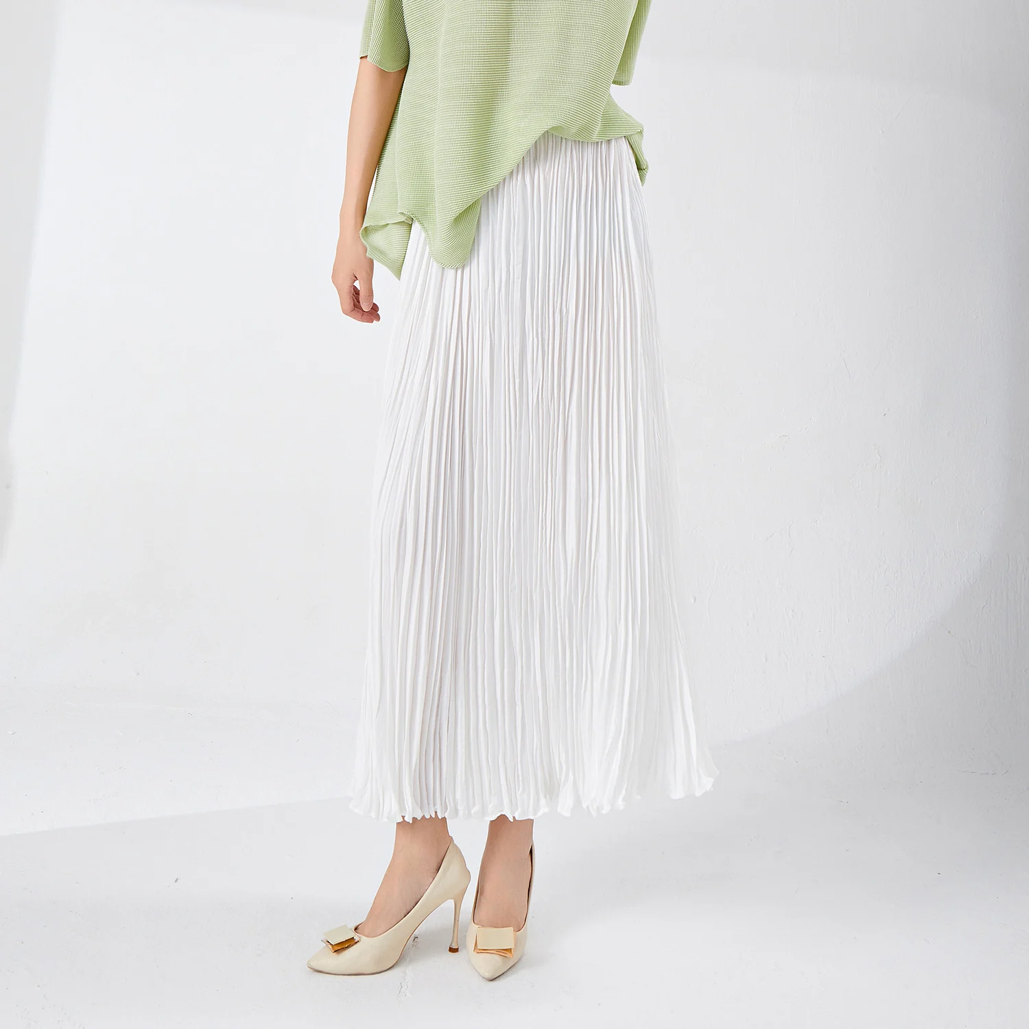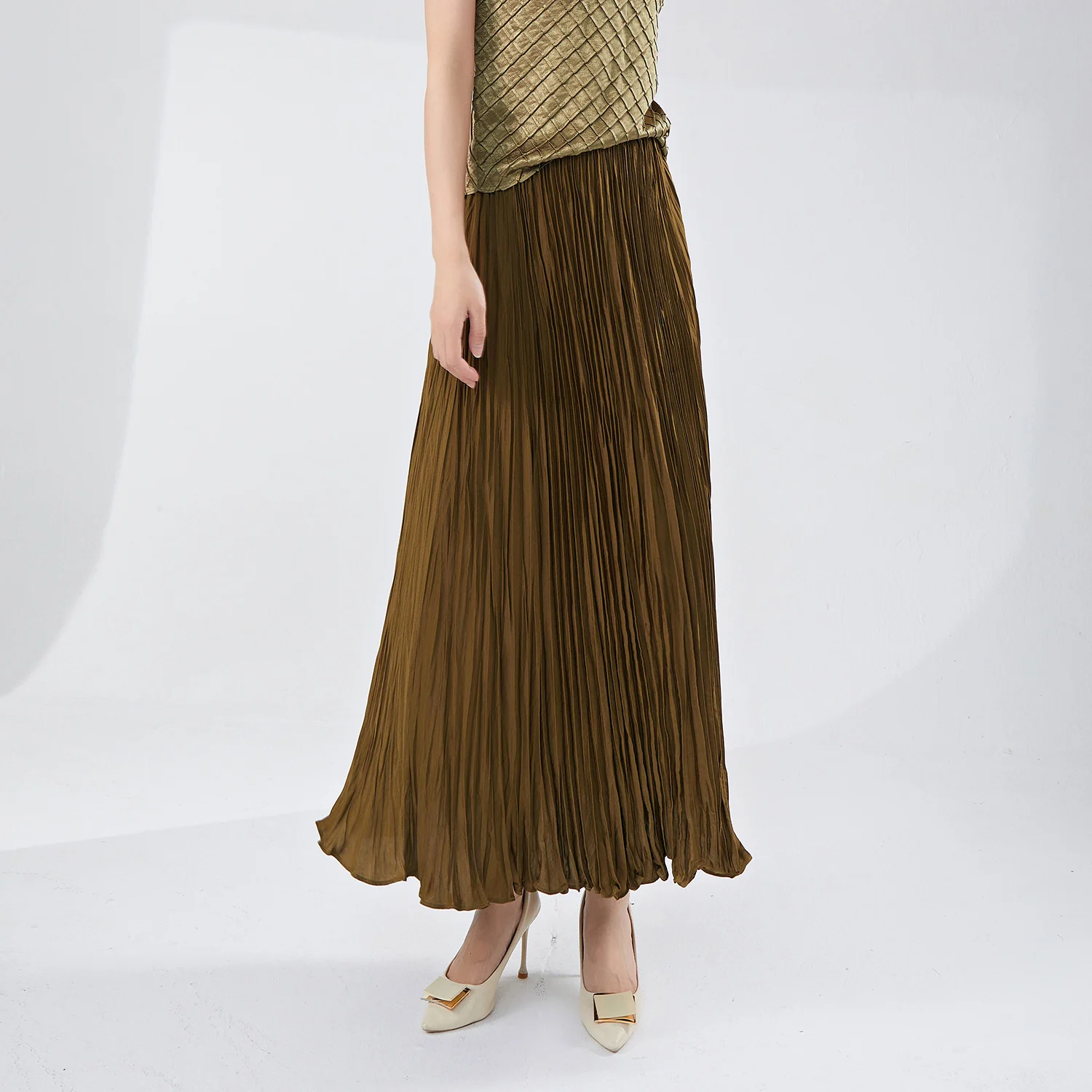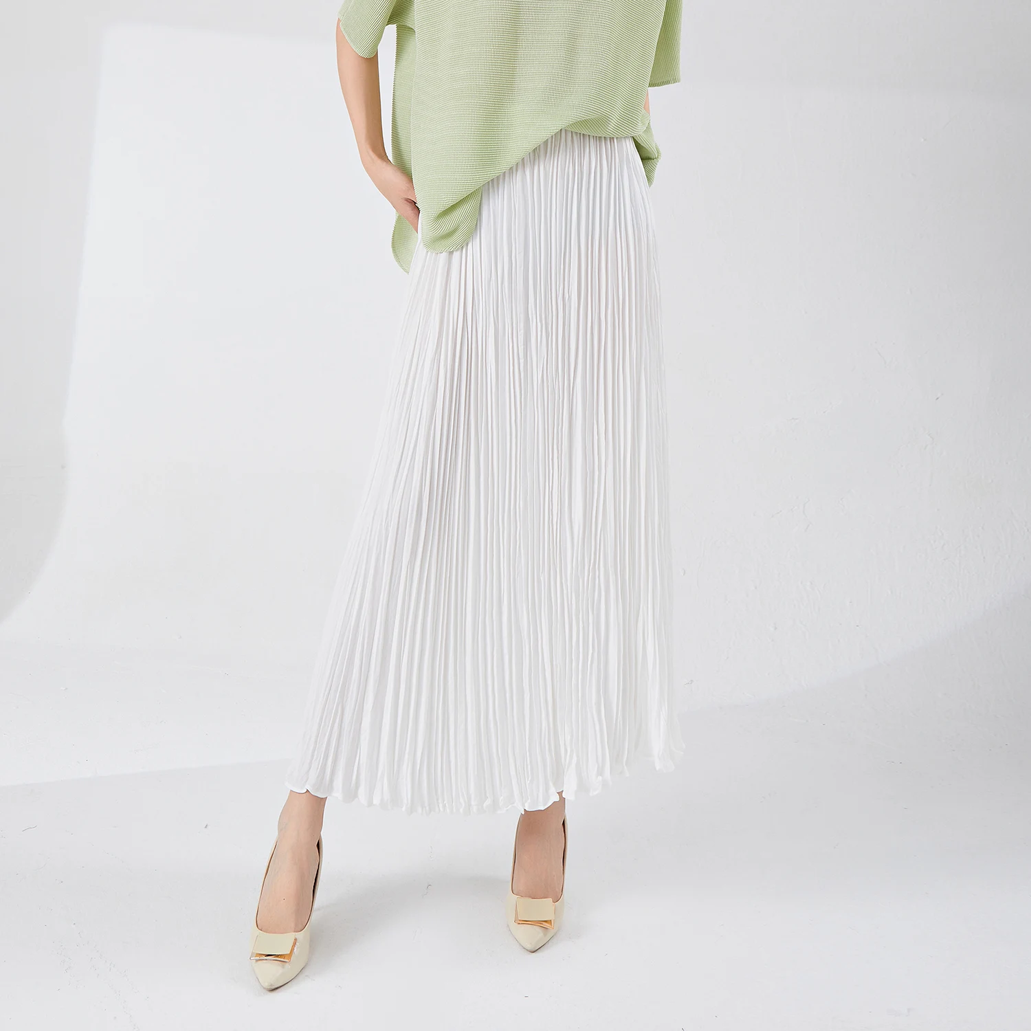 2025 New Women's Pleated Fashion Summer Skirt Stretch Large Size Design Elastic Waist A-Line Skirt Loose Long Skirt