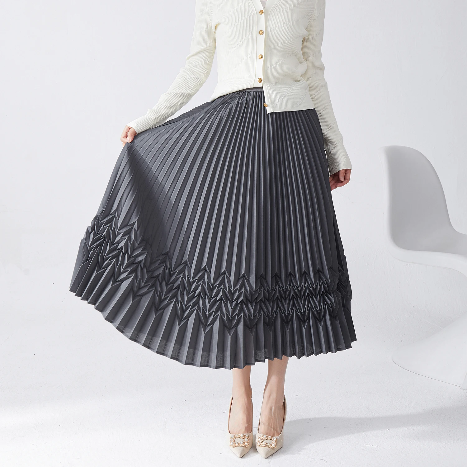 2025 Latest Women's Pleated Skirts Casual Fashion Polyester Fabric A-Line Skirts