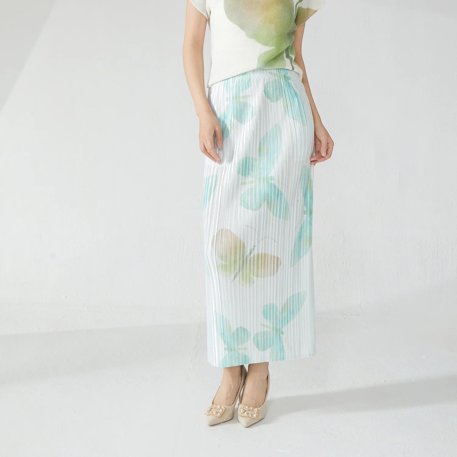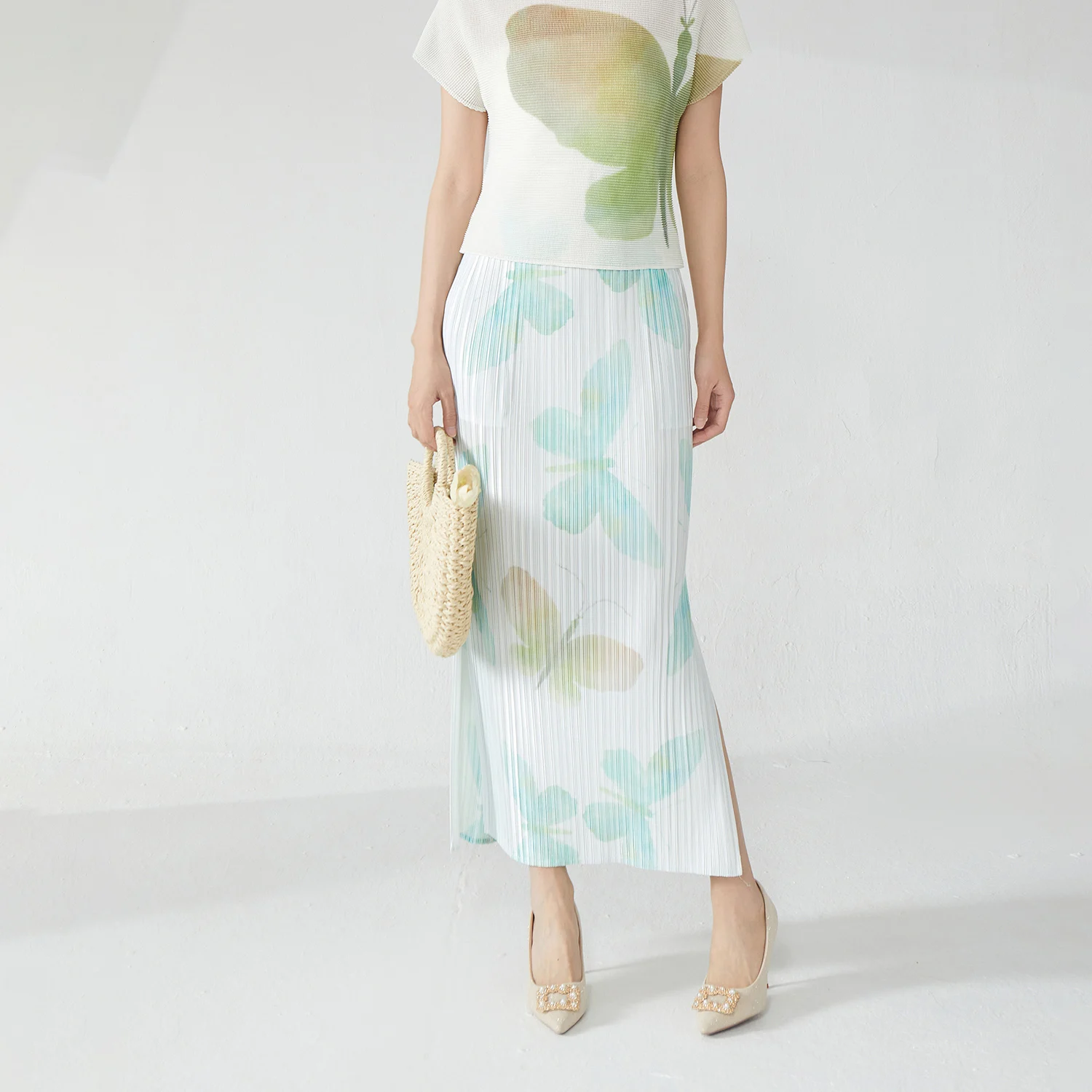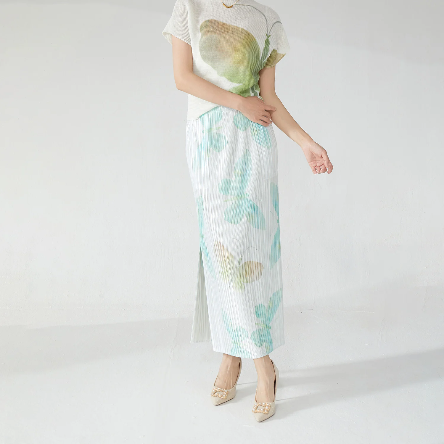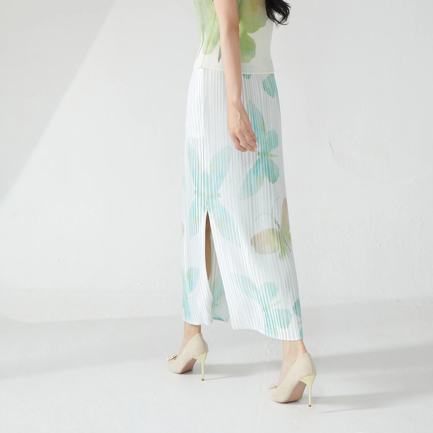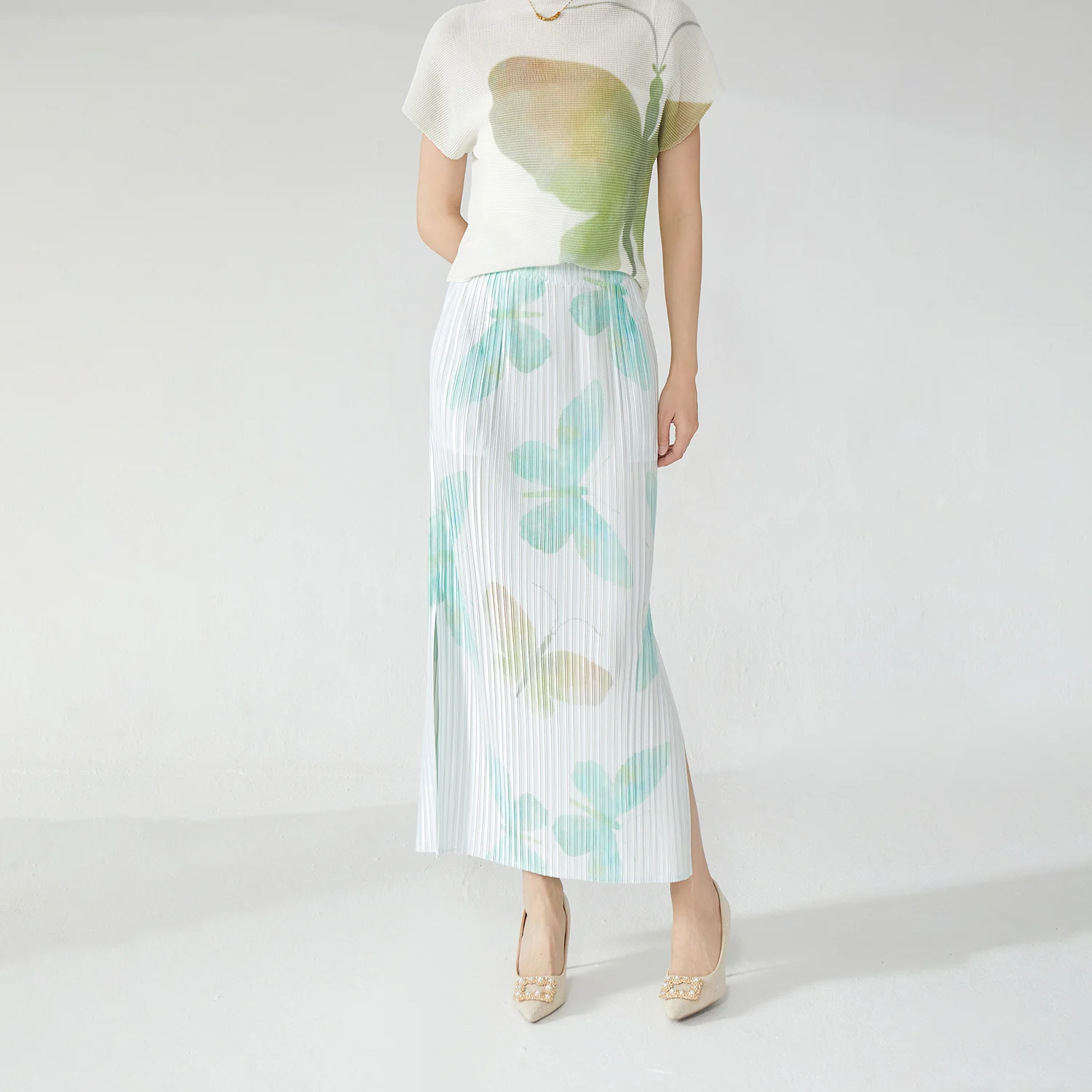 Elegance Redefined 2025 Latest Design Women's Pleated Skirt Side Slit Printed Straight Hip Skirt Miyake Fashion Skirt