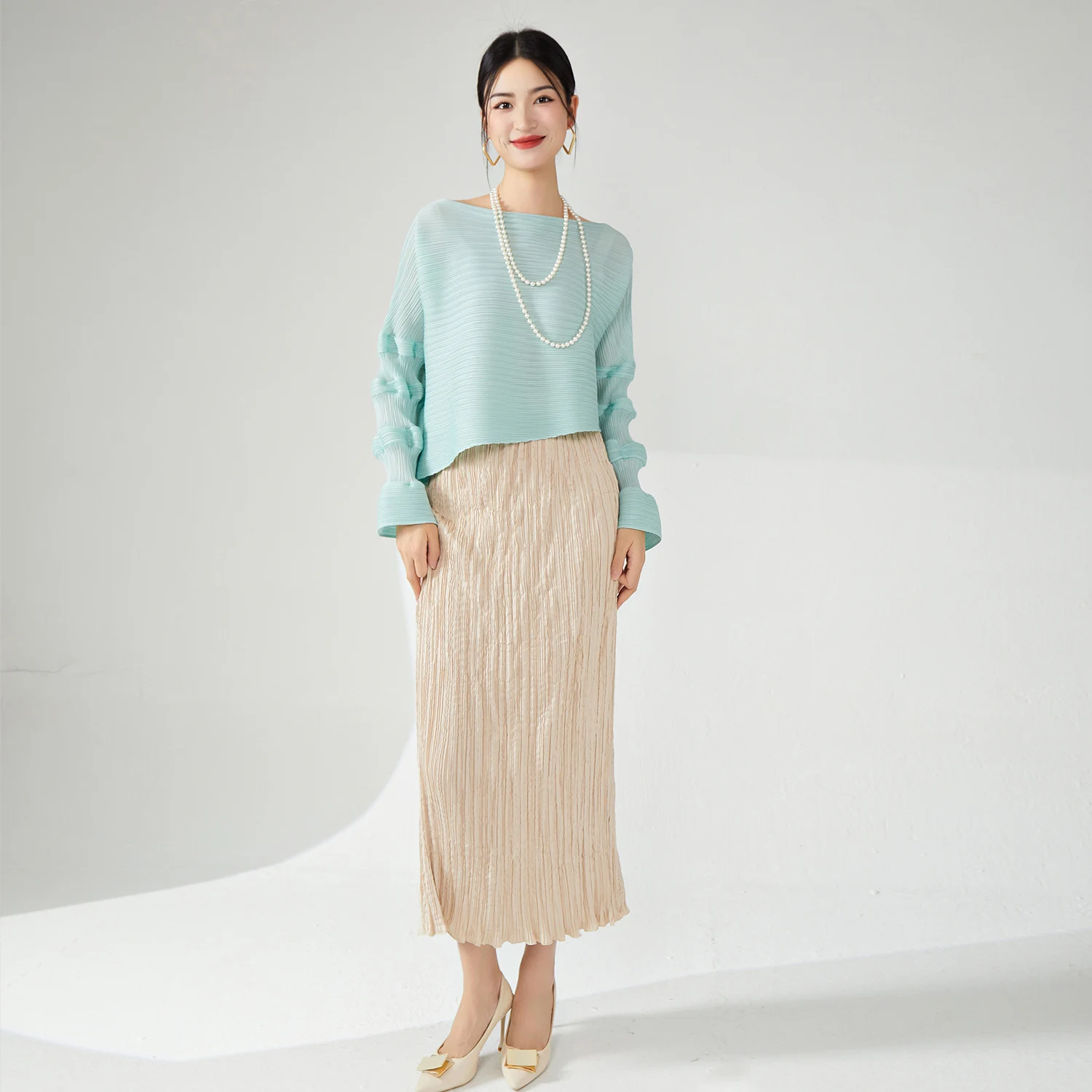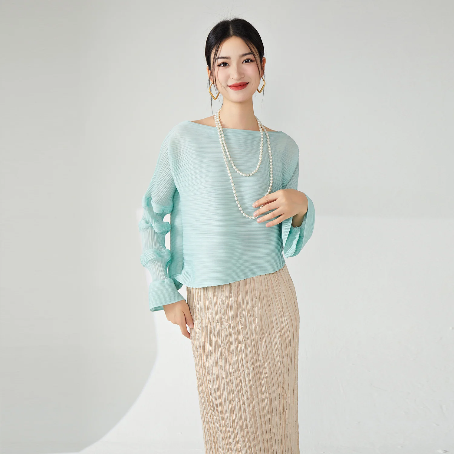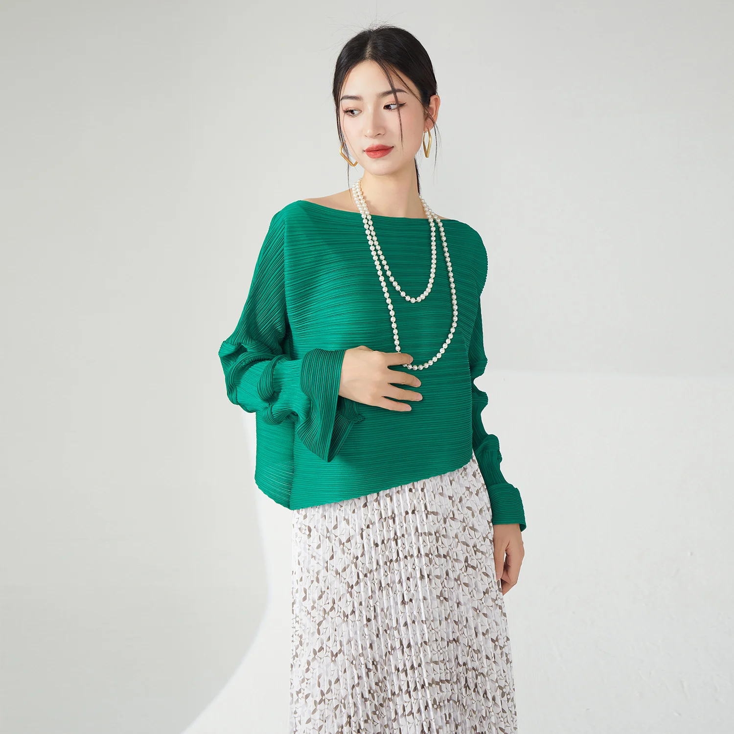 High Quality Miyake Women's Stretch Pleated Top Casual Loose Fit in Solid Colors Vintage Design for Spring/Summer