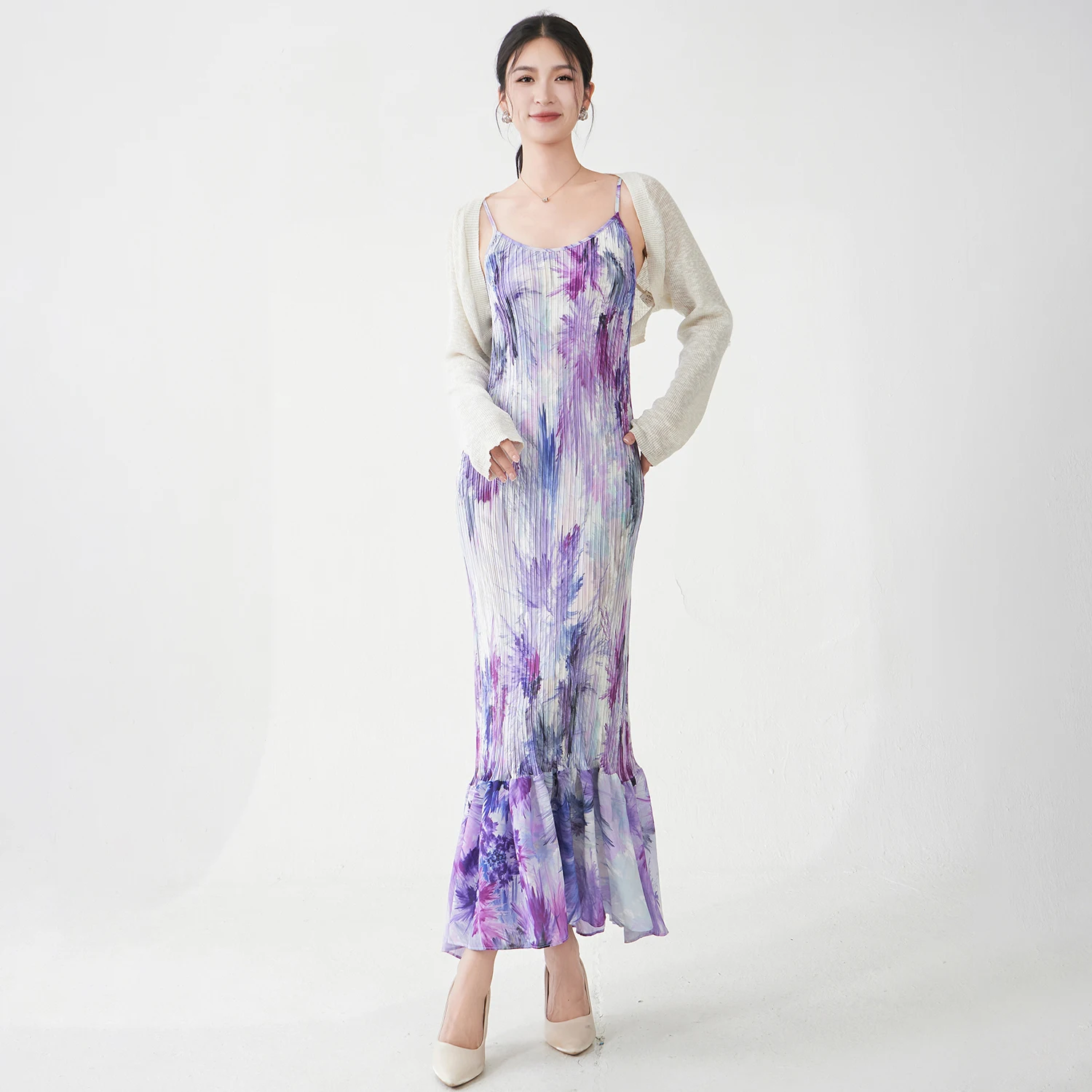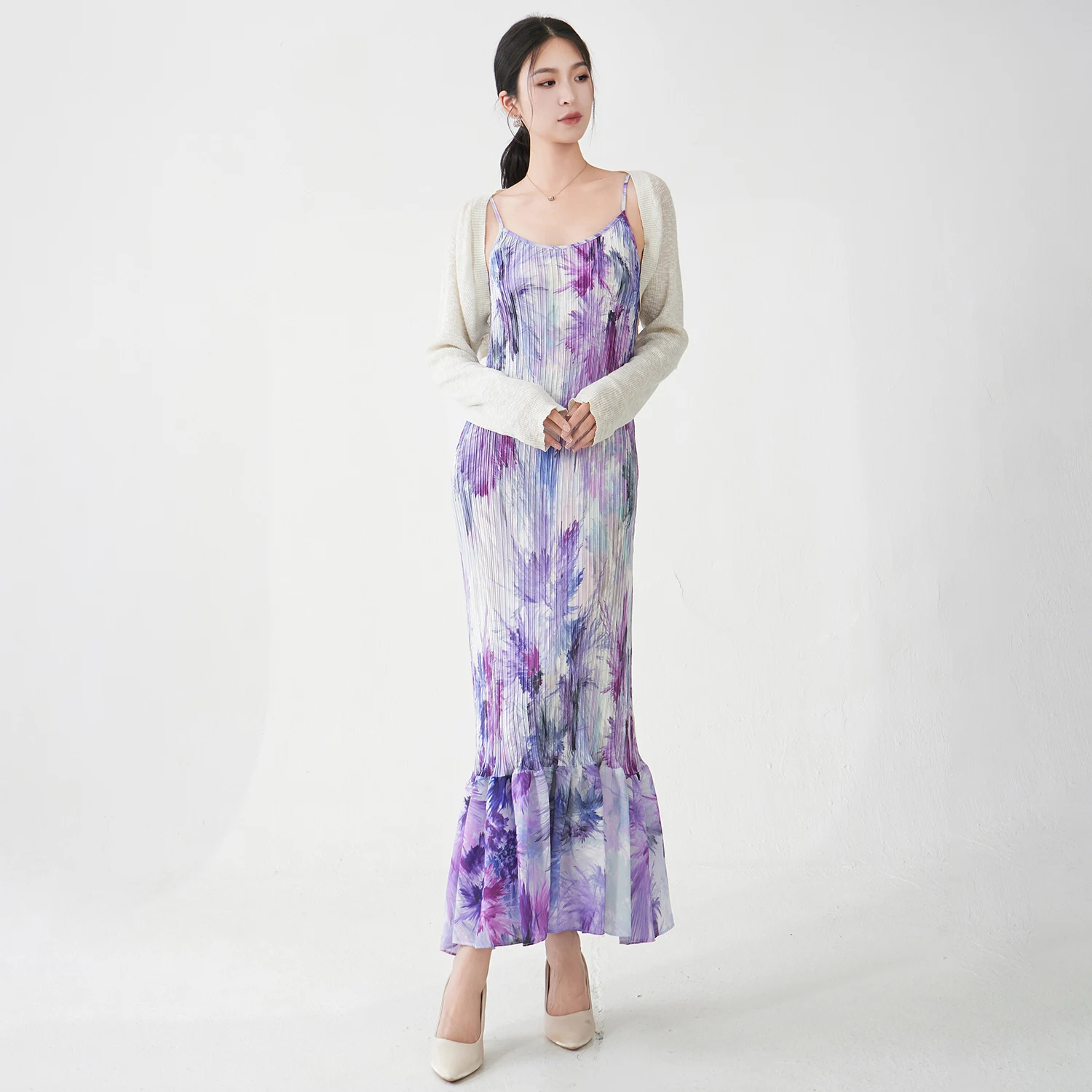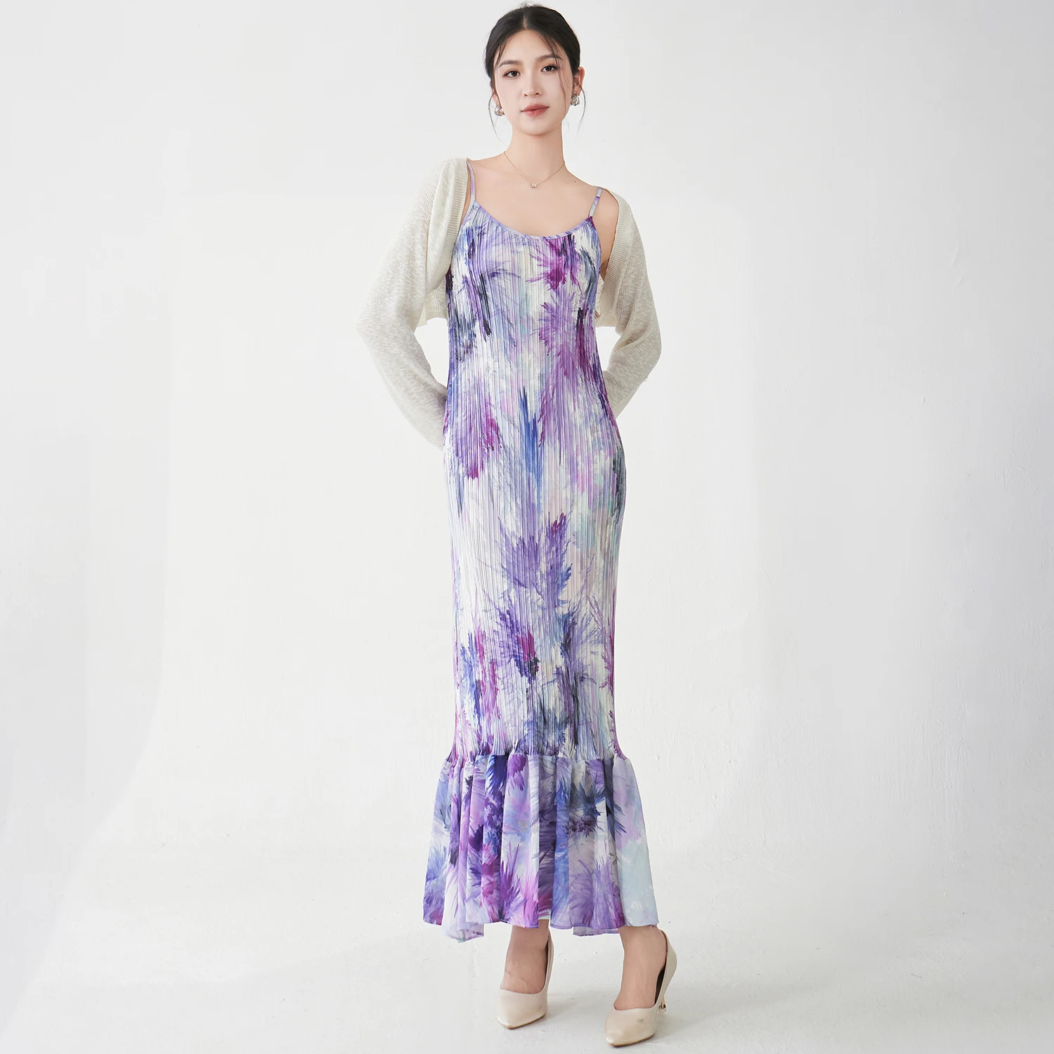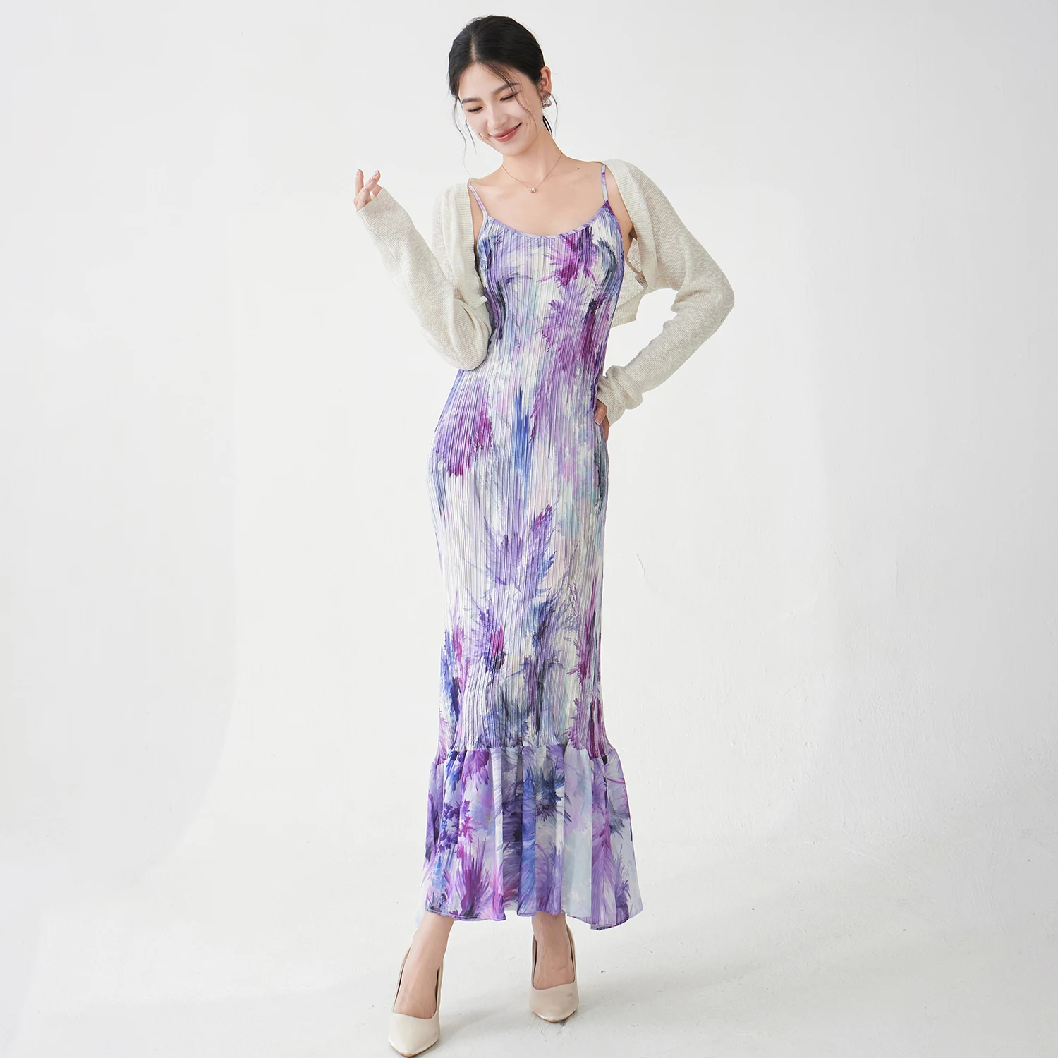 2025 Latest Design Women's Fashion Dress Elastic Floral Suspender Dress Miyake Pleated Dress Seaside Holiday Style