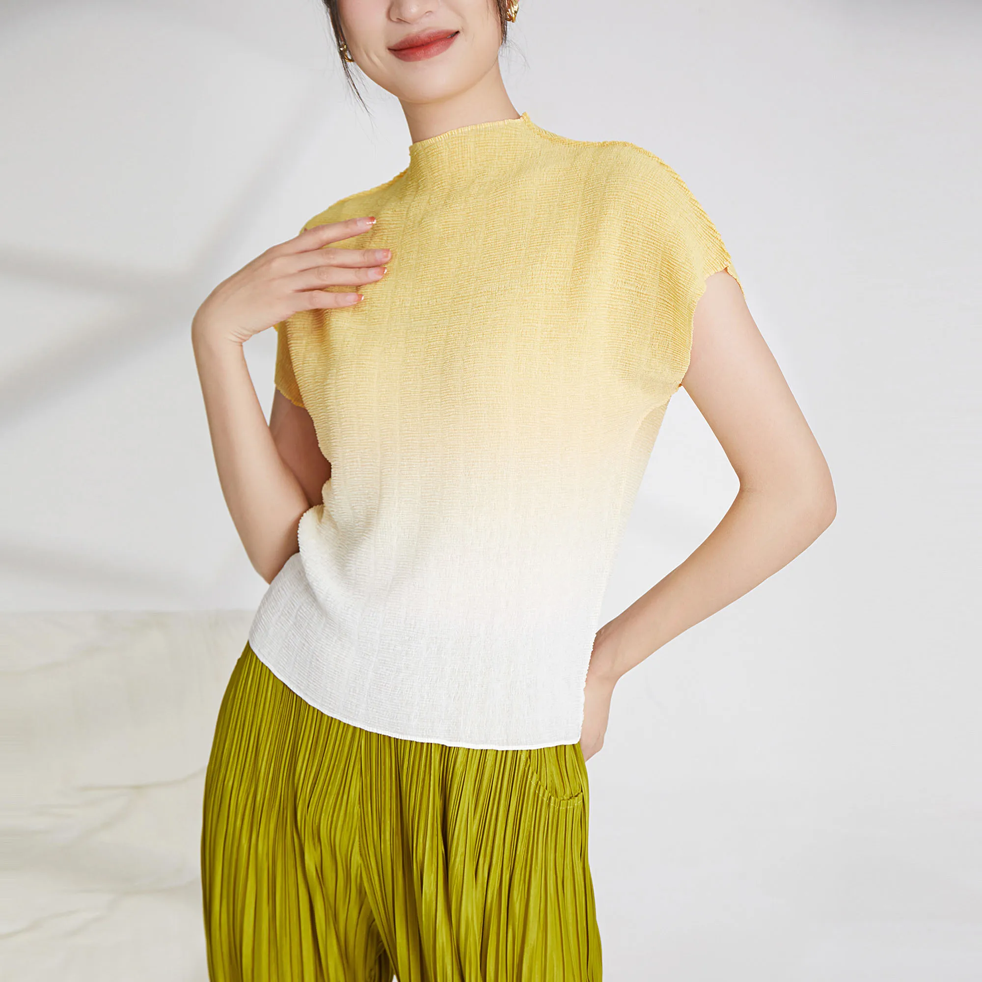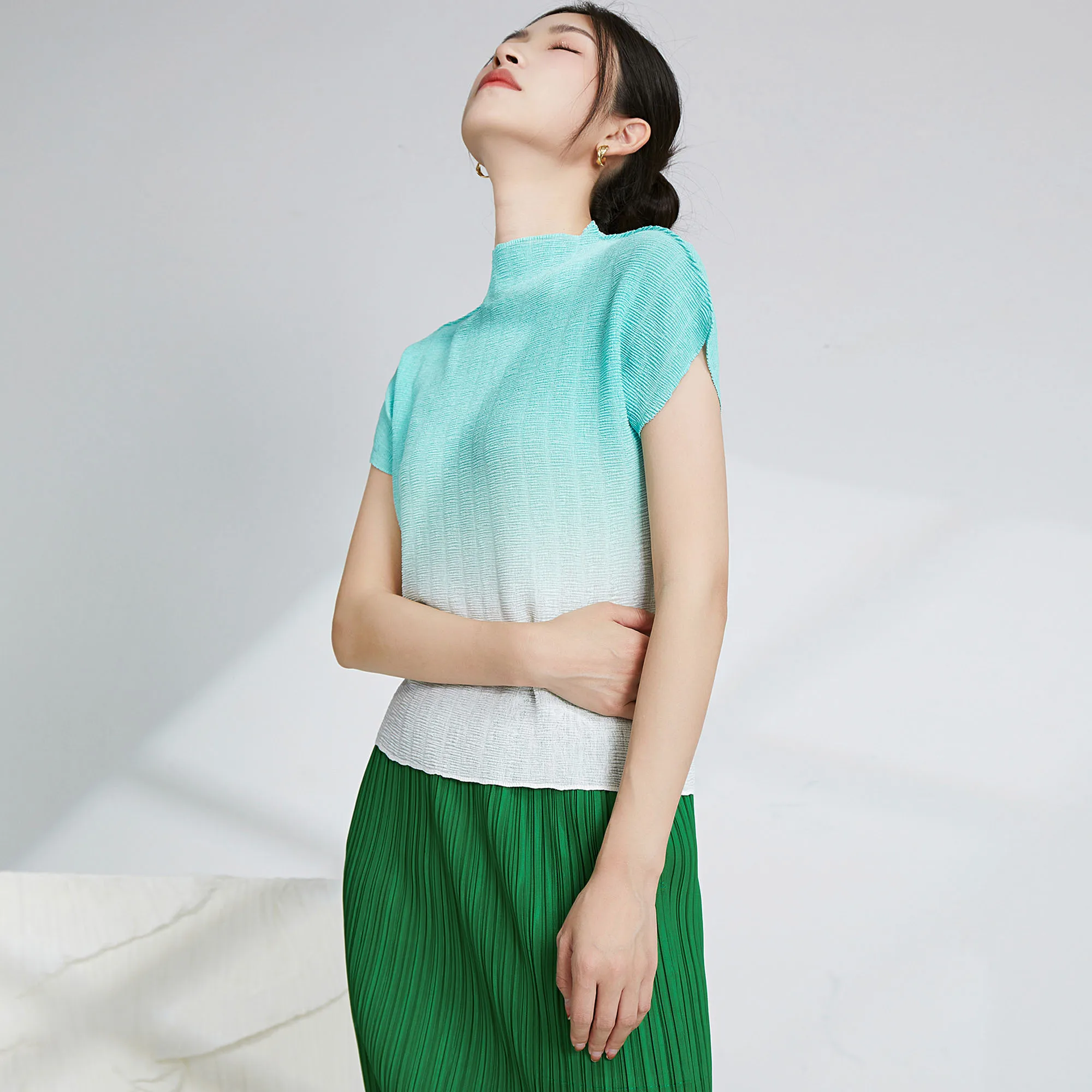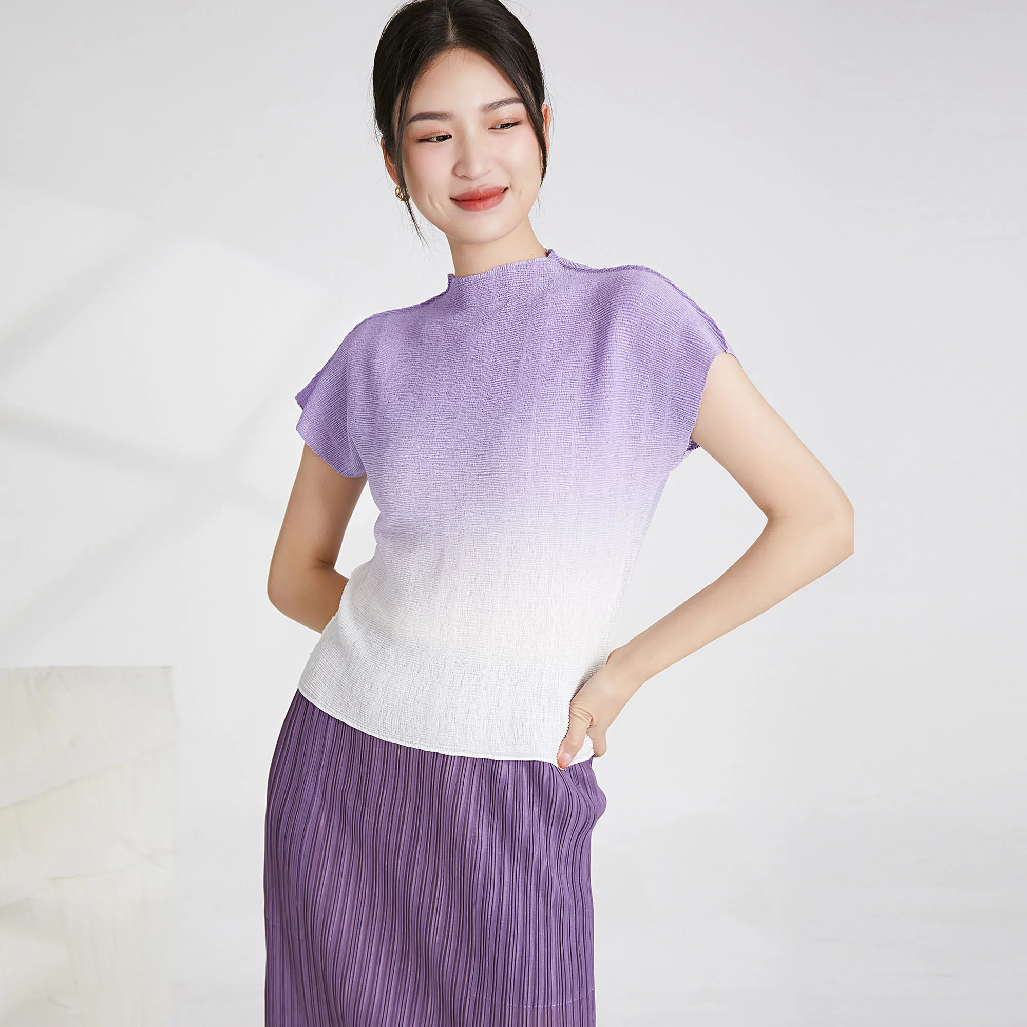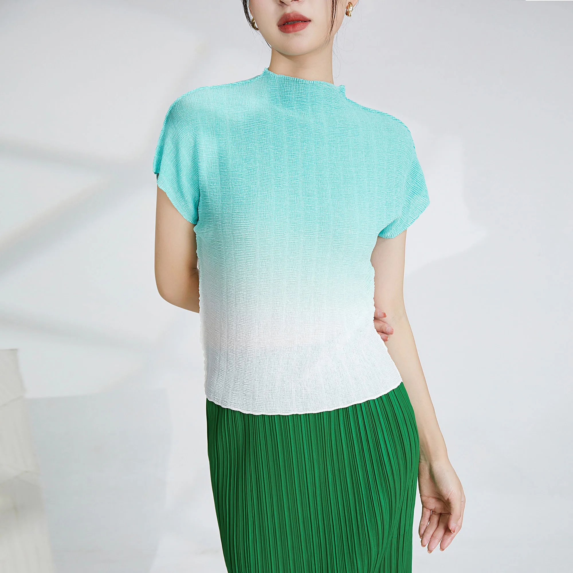 Miyake Pleated Women's Tops Women's Printed Pleated Ombre Shirt Clothing Casual Style Fashion Pleated T-shirts