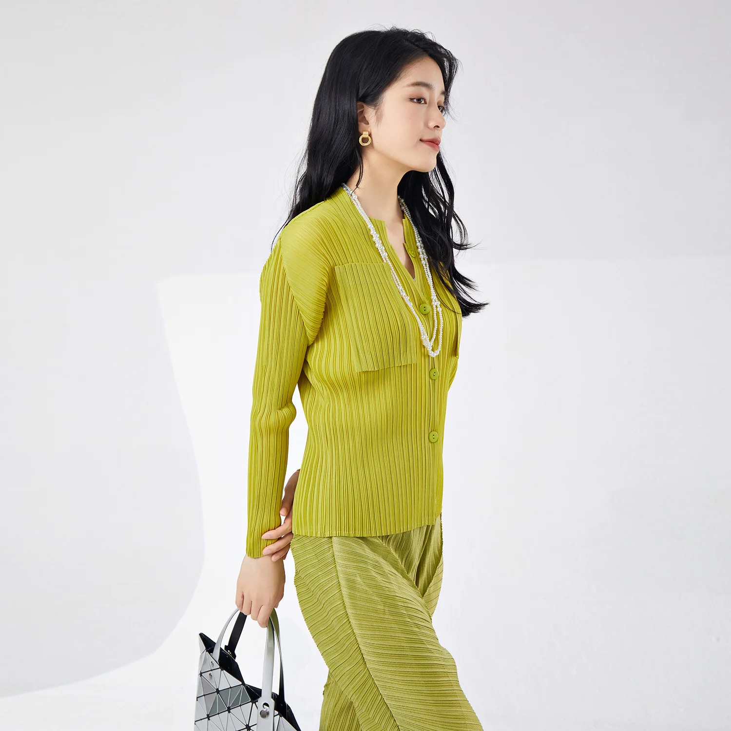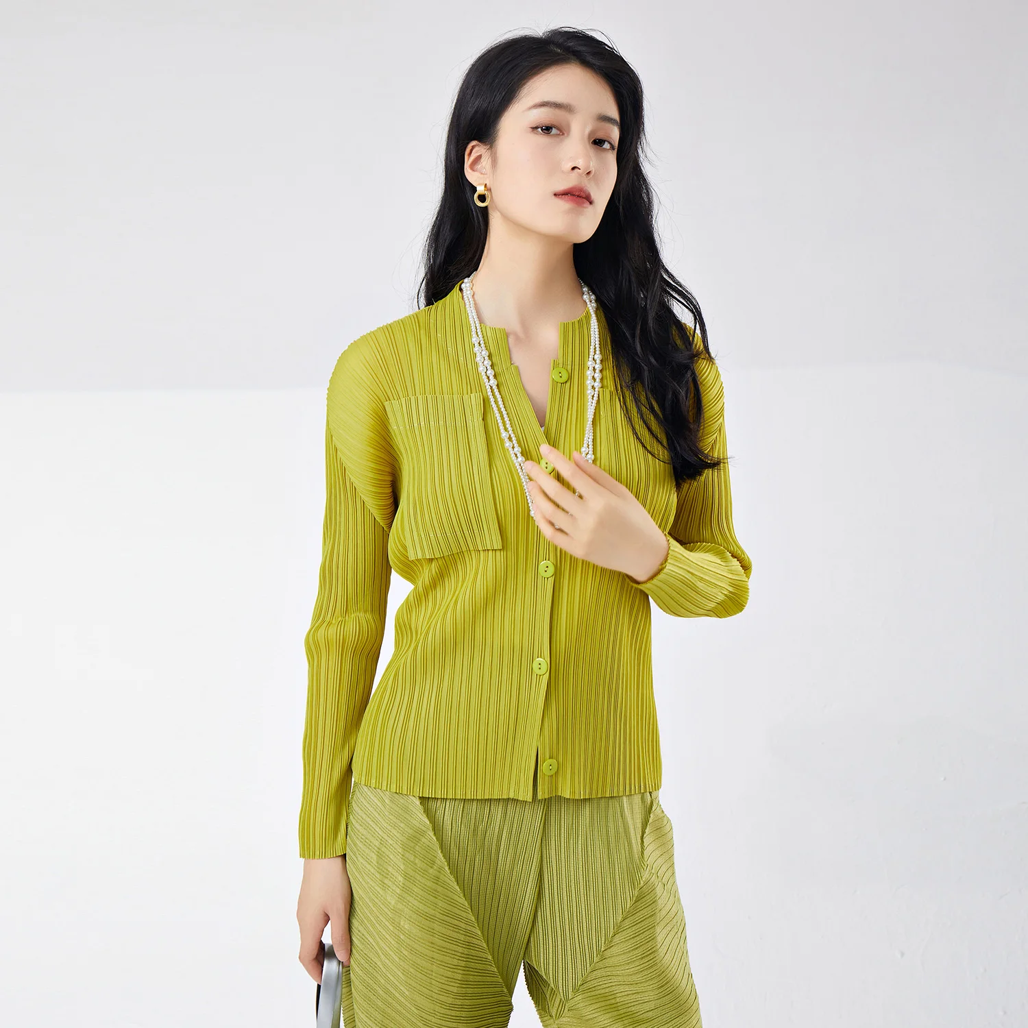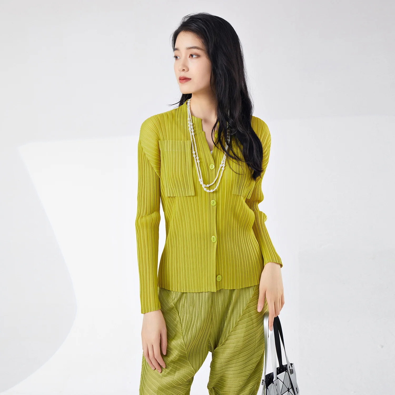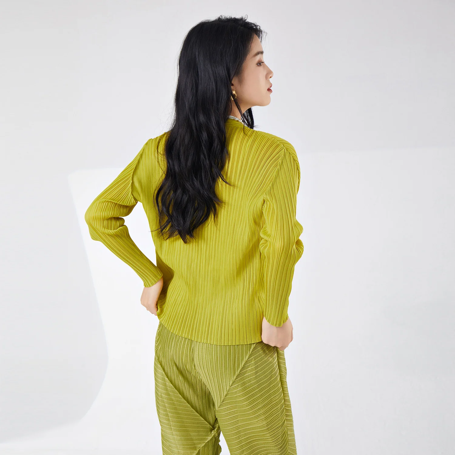 Women's Elegant Pleated T-Shirt Jacket Wholesale Sales High Quality Vintage Style Elastic Printed Loose Casual Top for Ladies