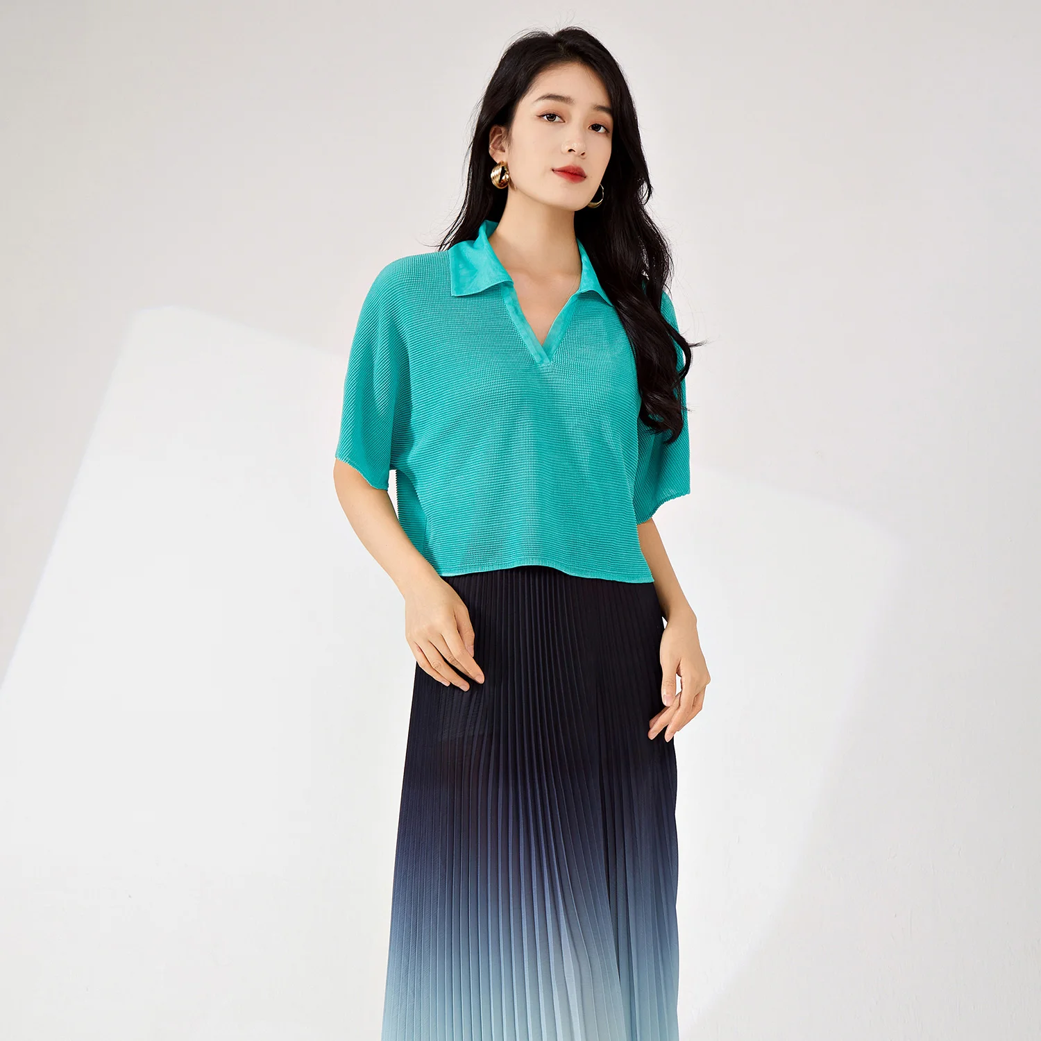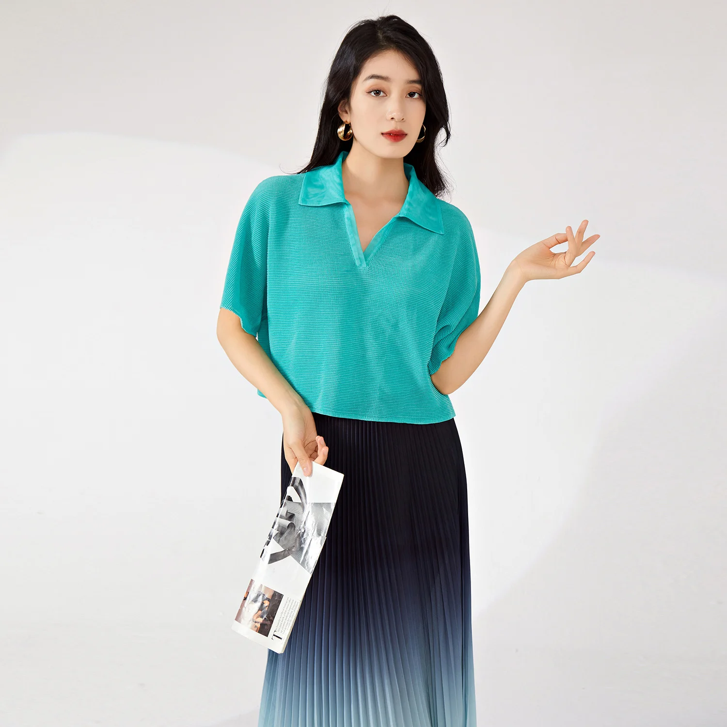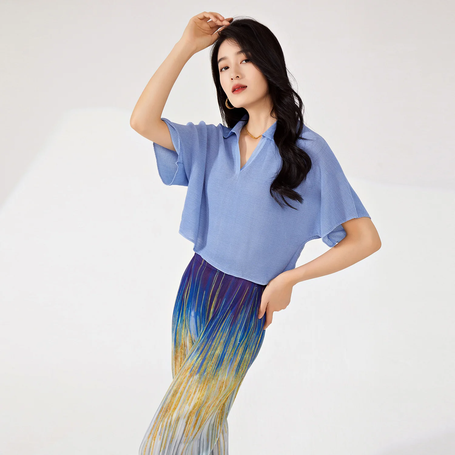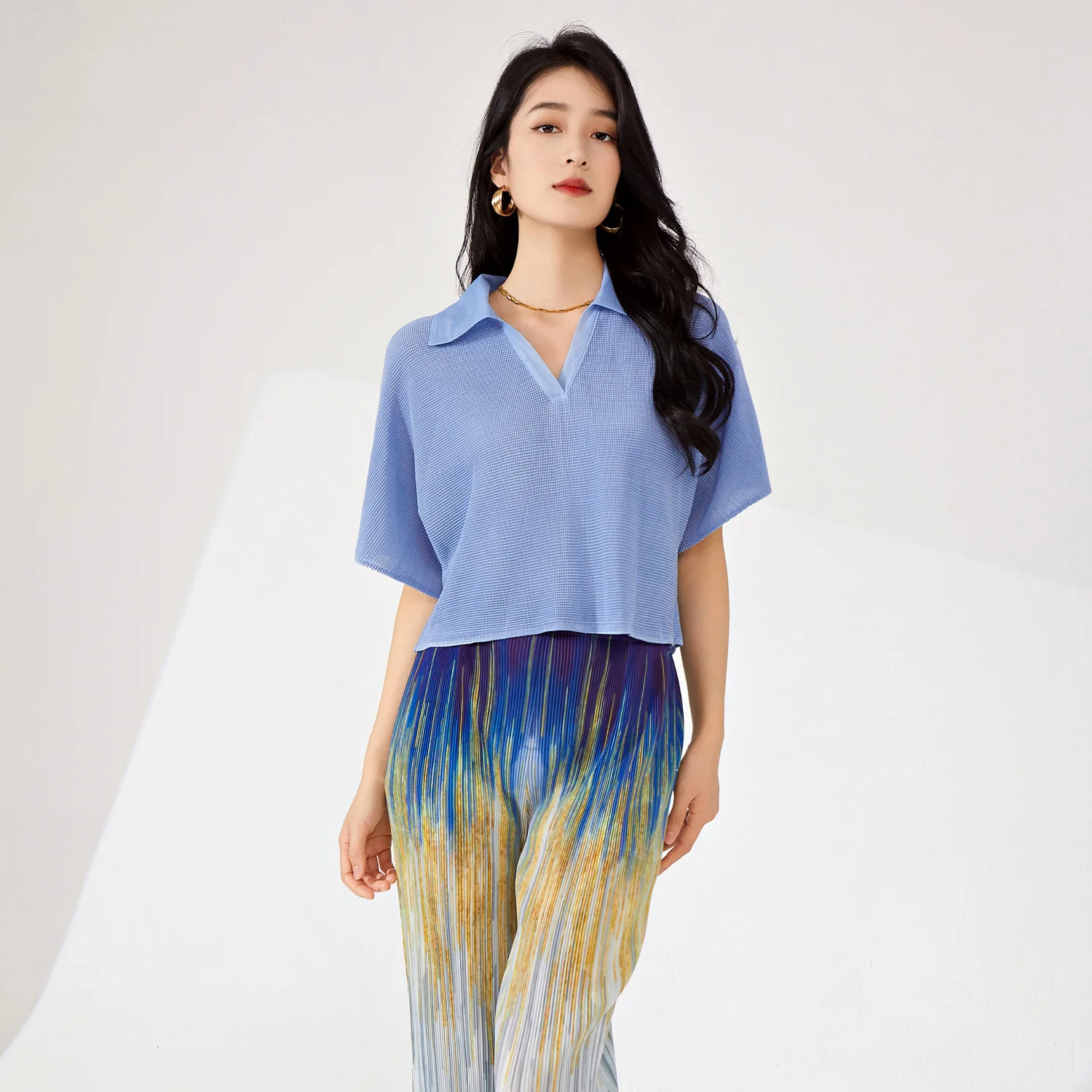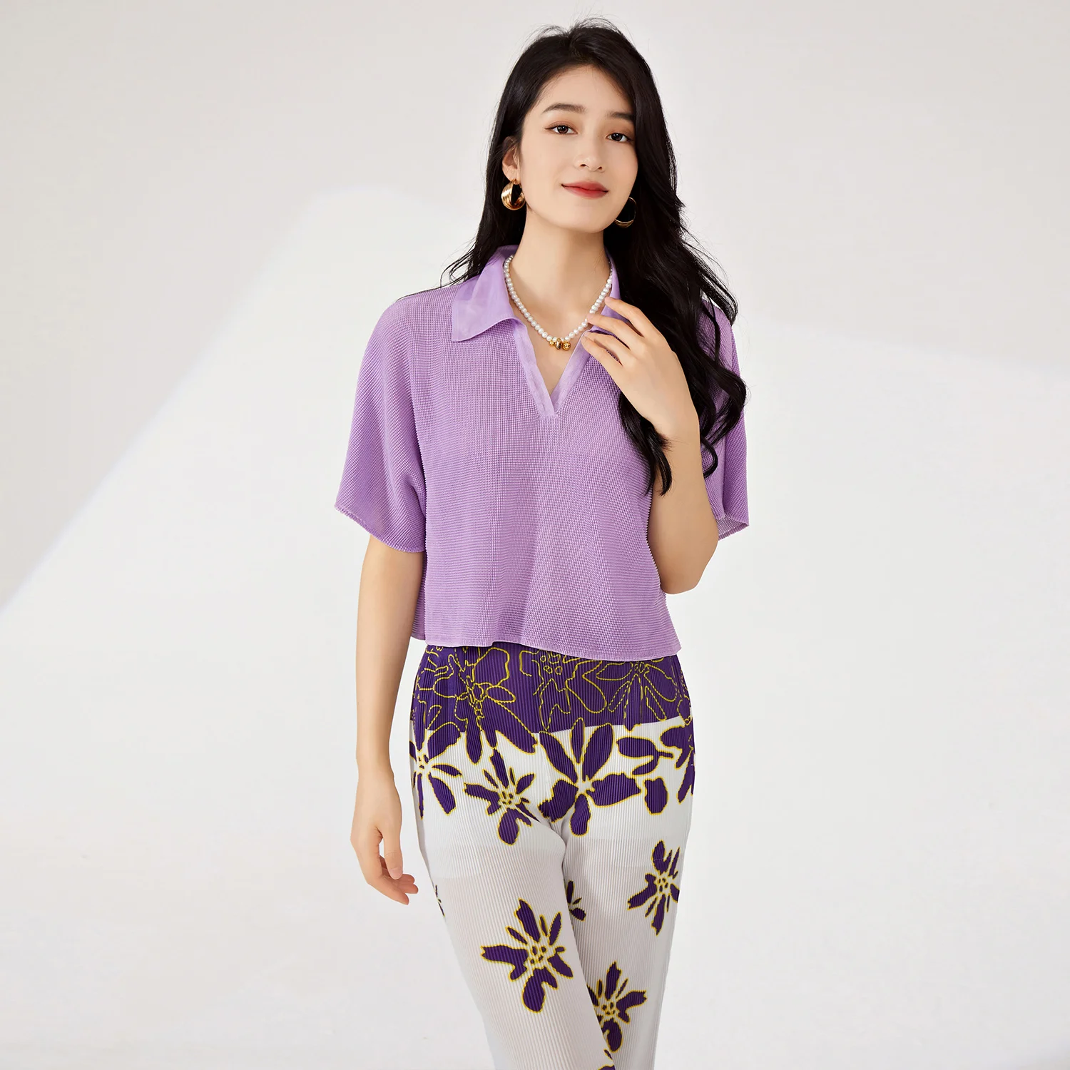 High Quality Pleated Stretch Printed T-Shirt for Women Vintage Style for Summer Season Fashionable Personality-Revealing Tops