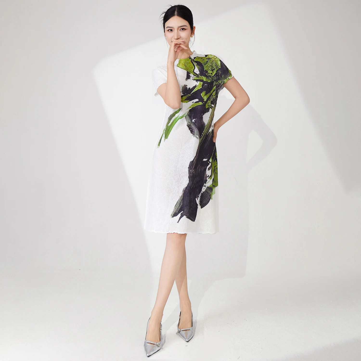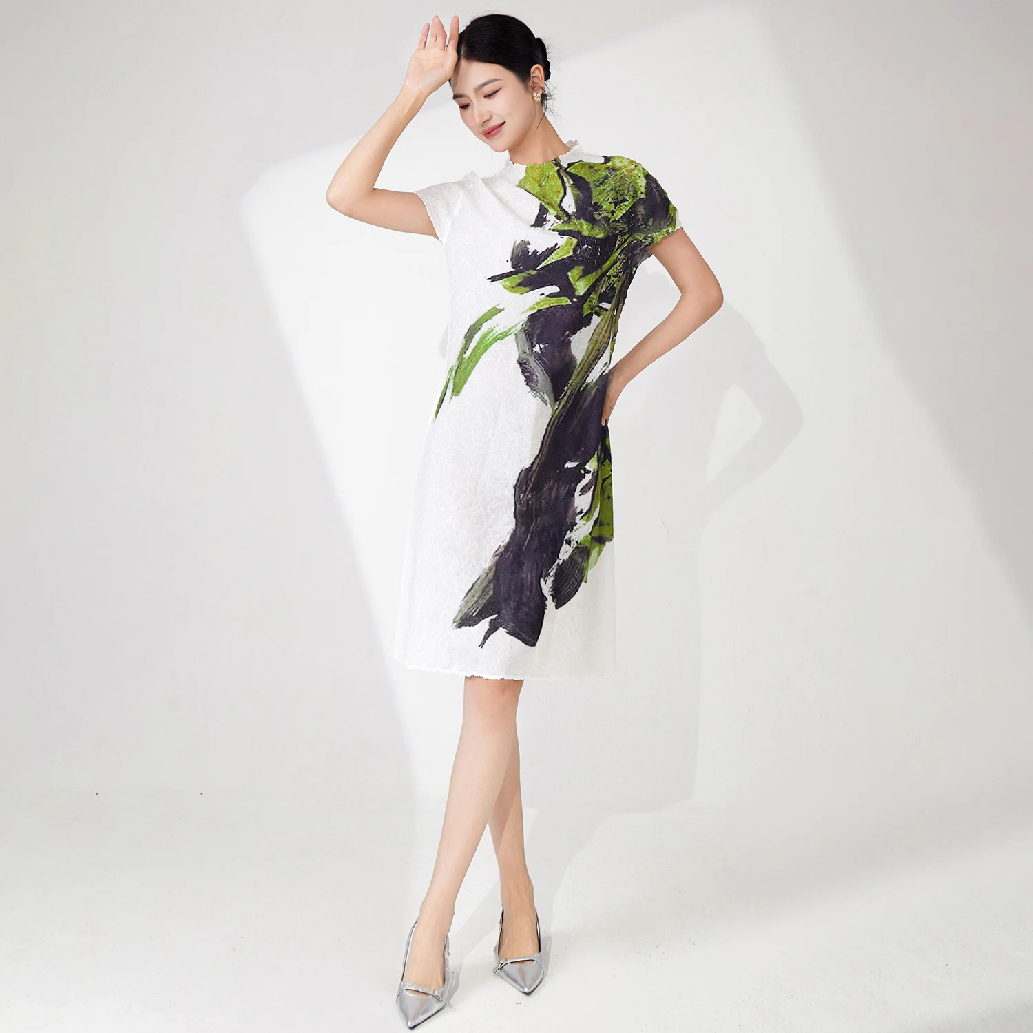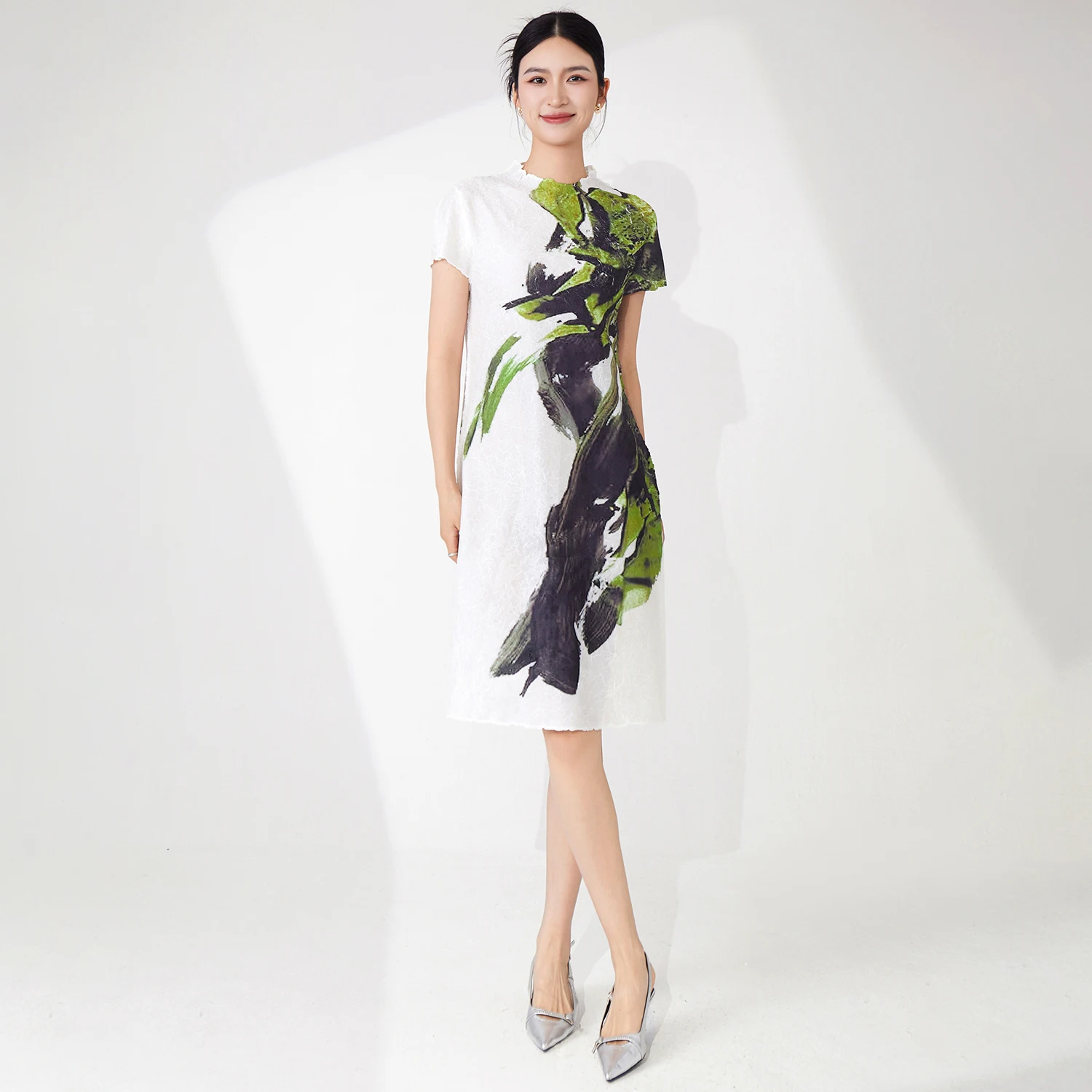 Wholesale Clothing Women's Fashion Dress Design Casual Polyester Fabric Dress Print Short Sleeve Dress