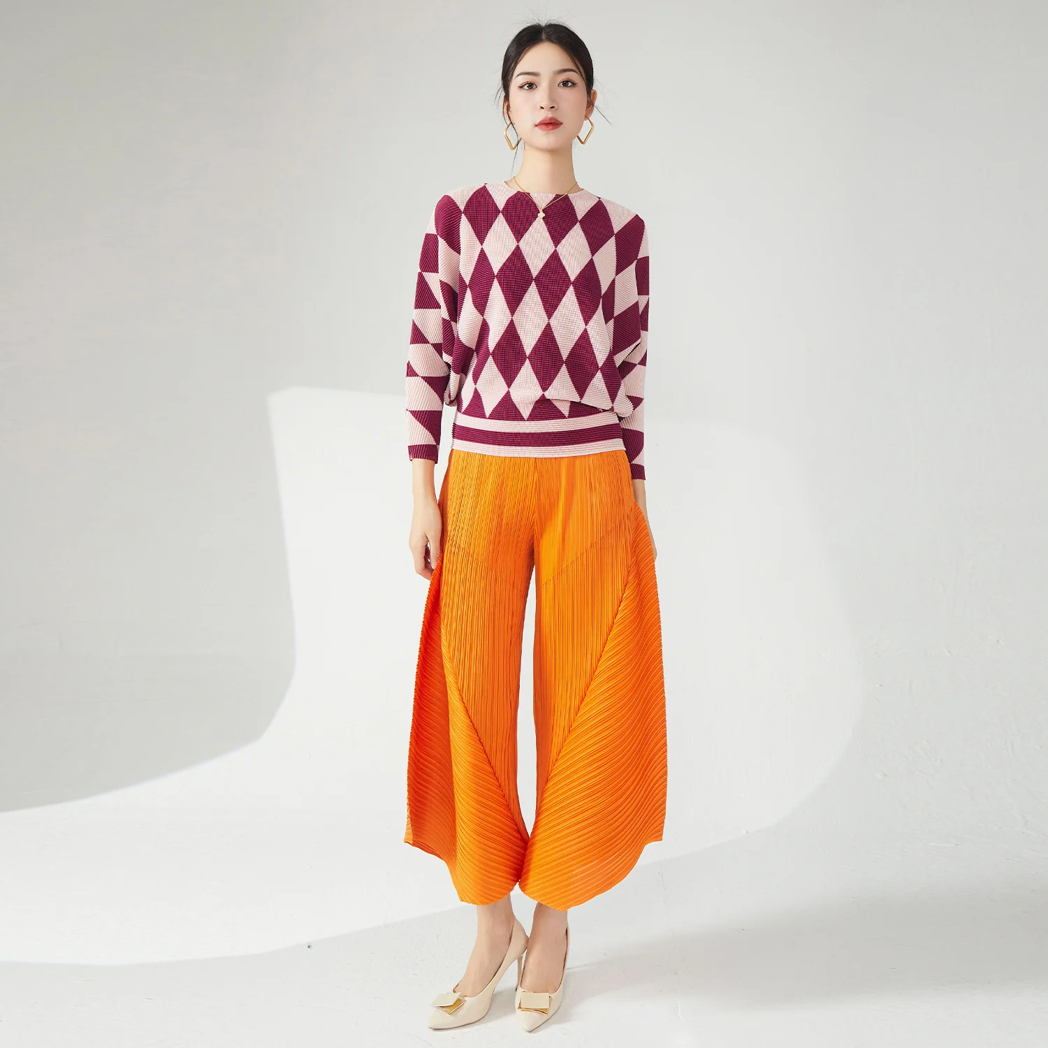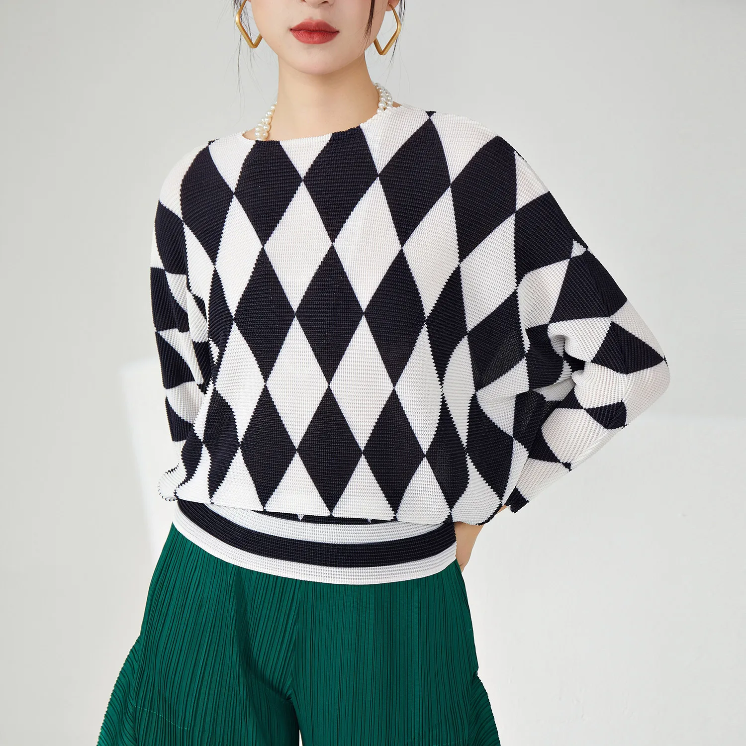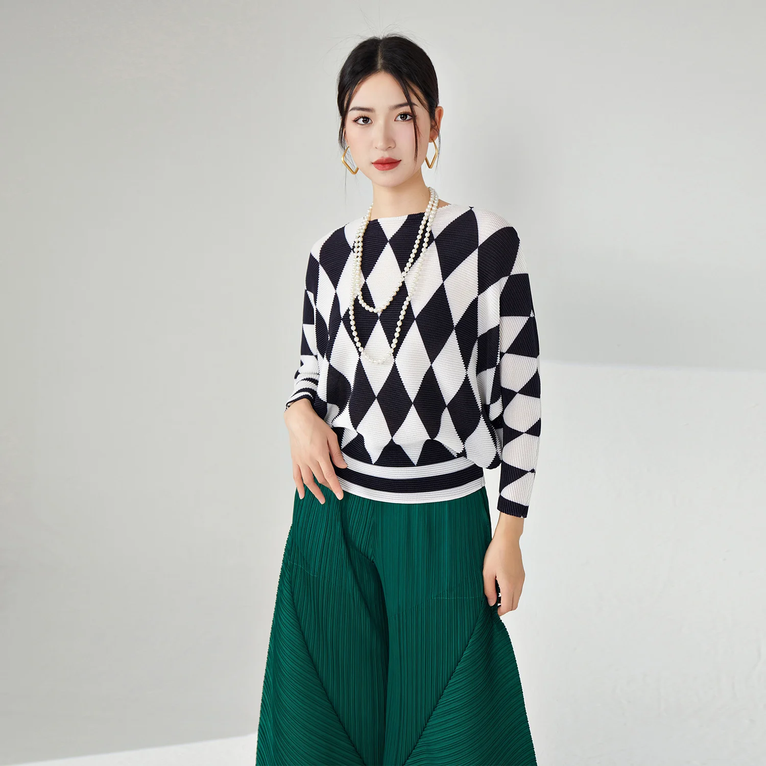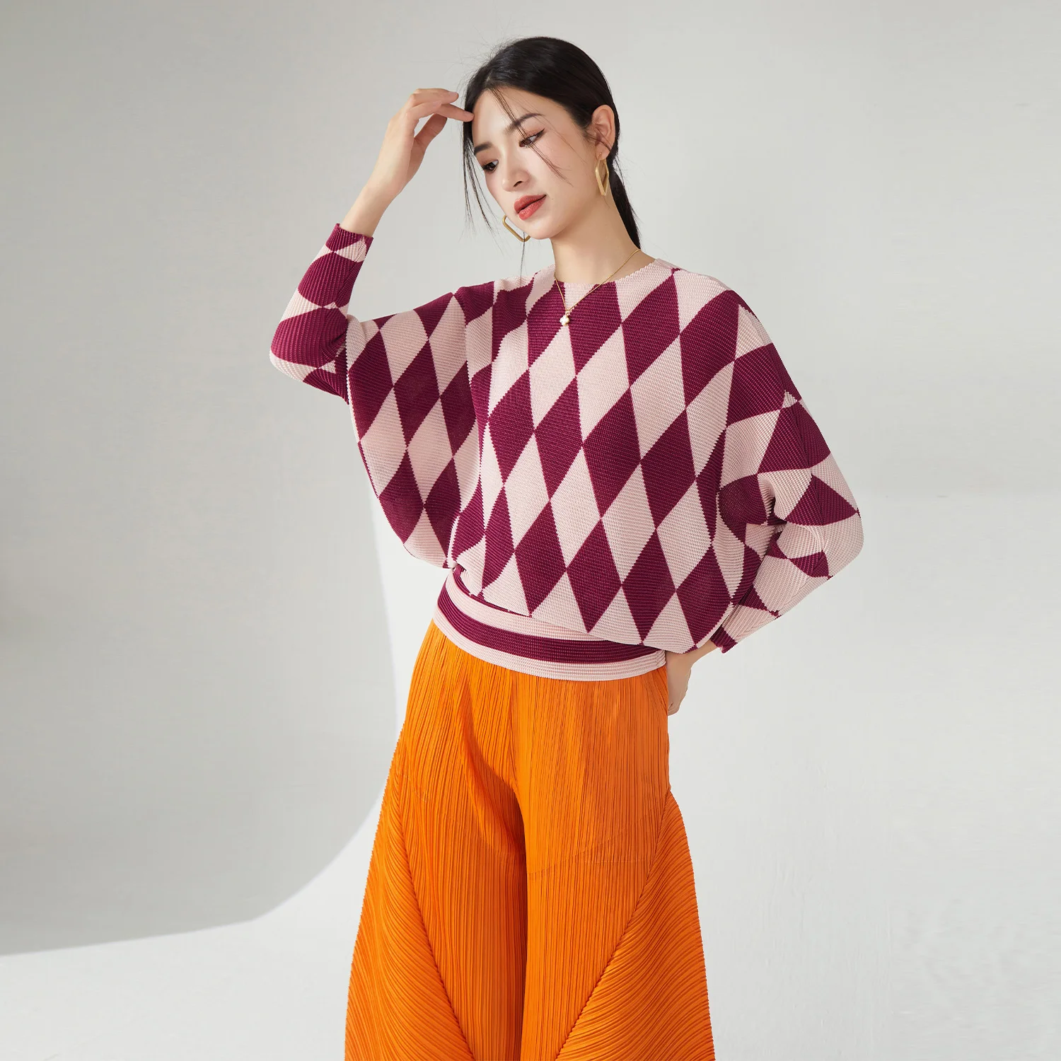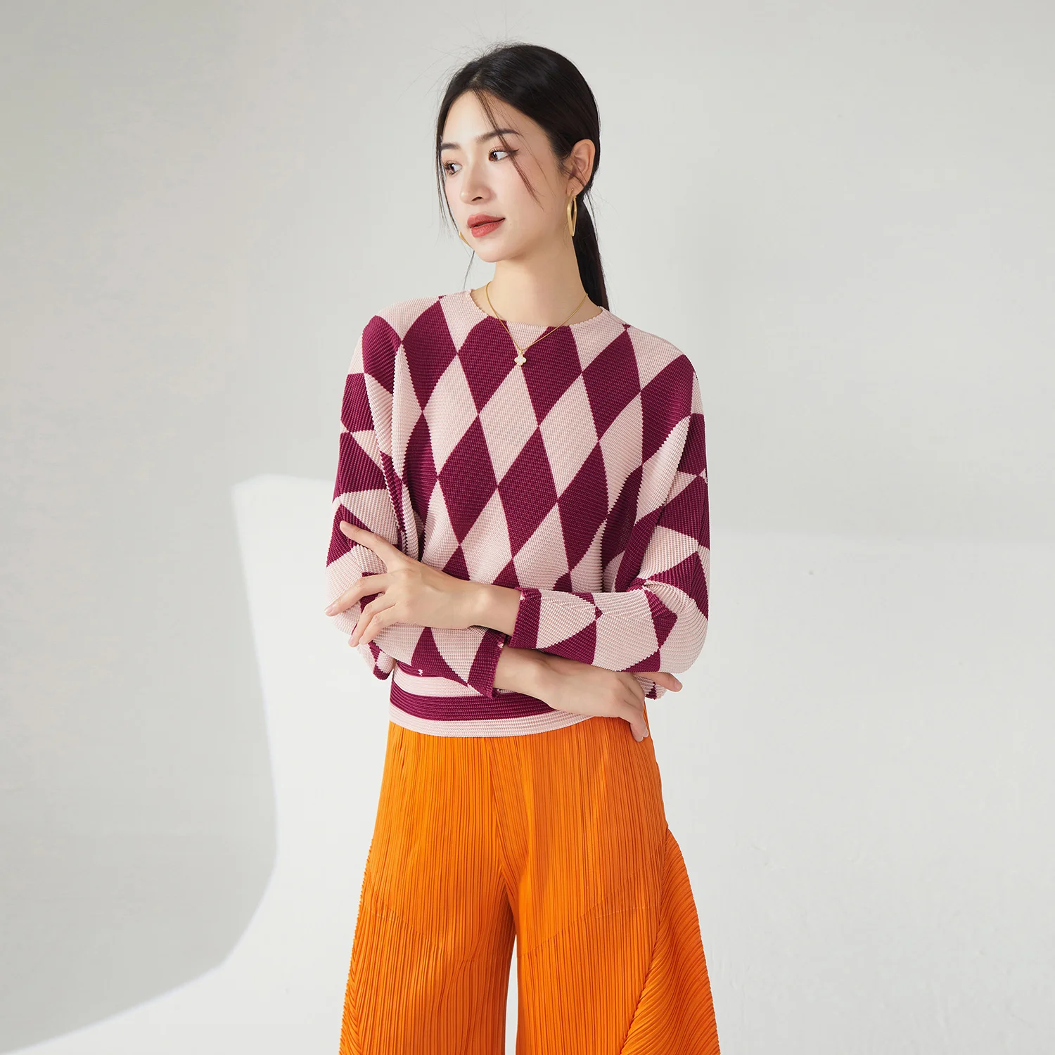 High Quality Women's Vintage Casual Shirts Fashionable Loose Pleated Miyake Tops Stretch Geometric Design for Spring Summer