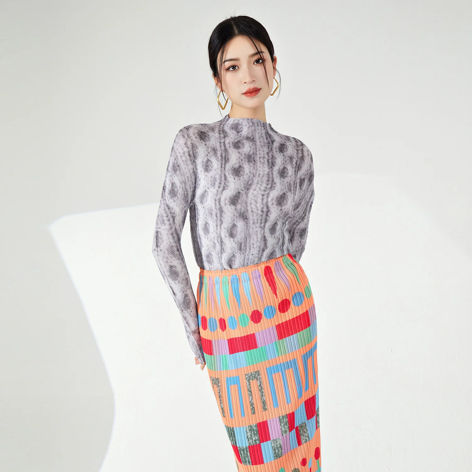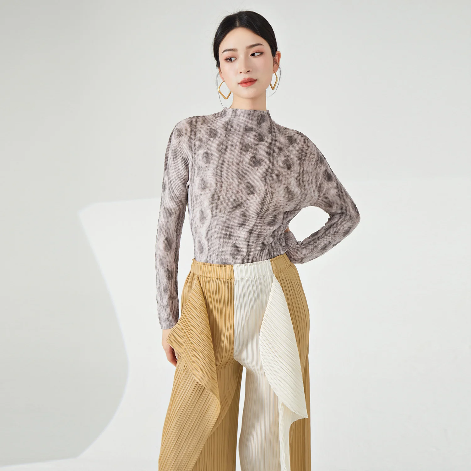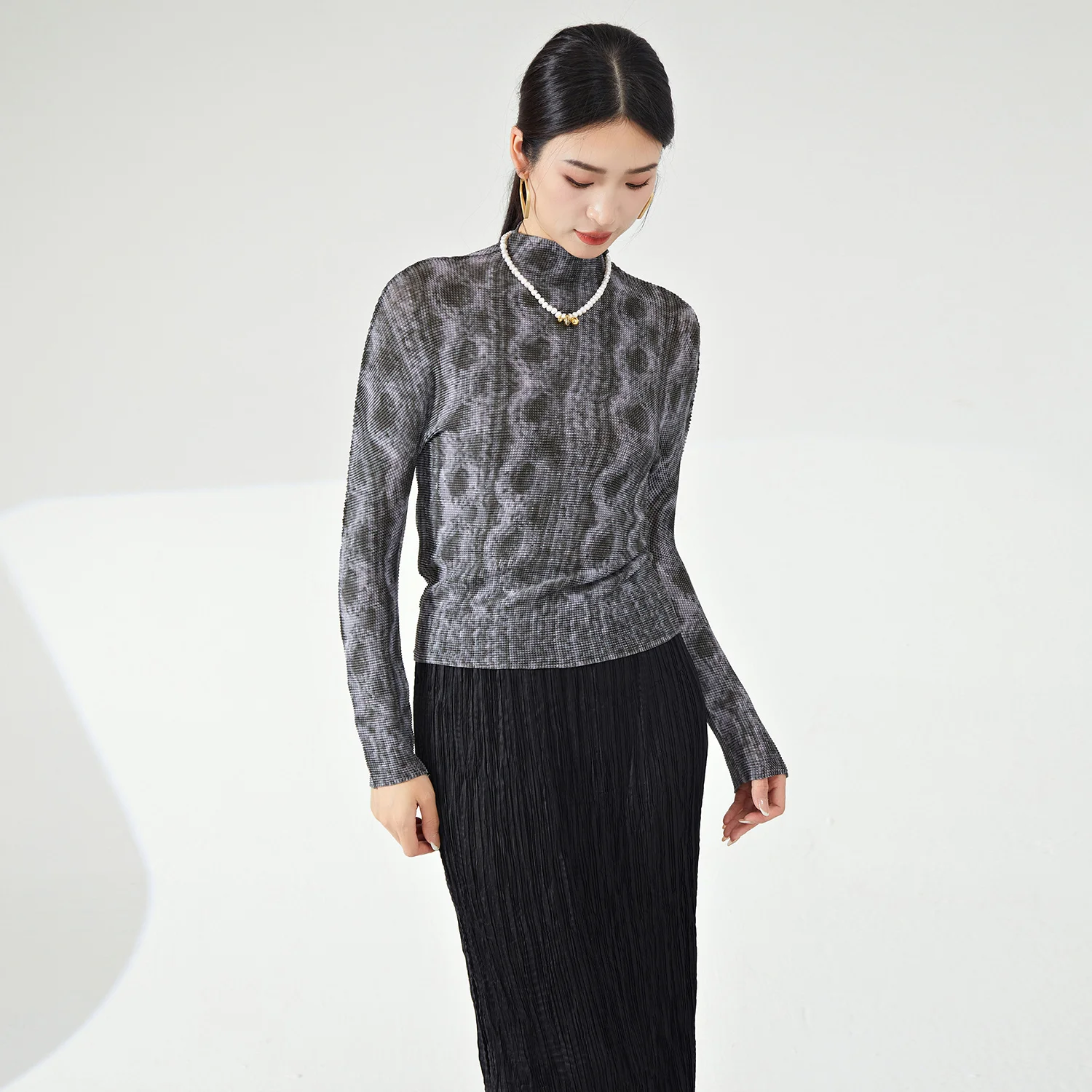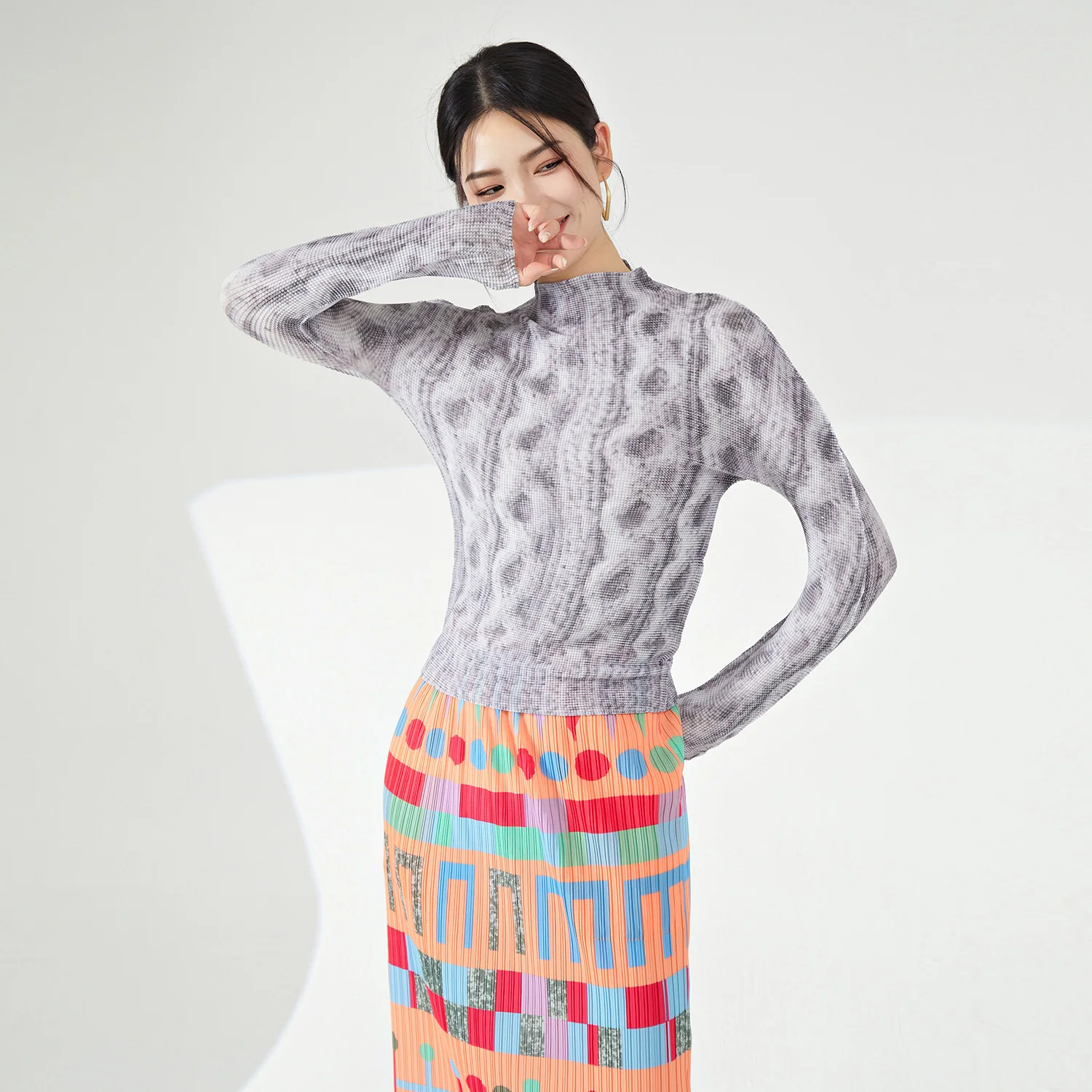 Miyake High Quality Stretch Pleated Long Sleeve T-Shirt Ladies' Vintage Casual Summer Fashion Shirt