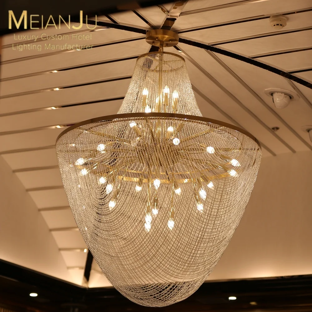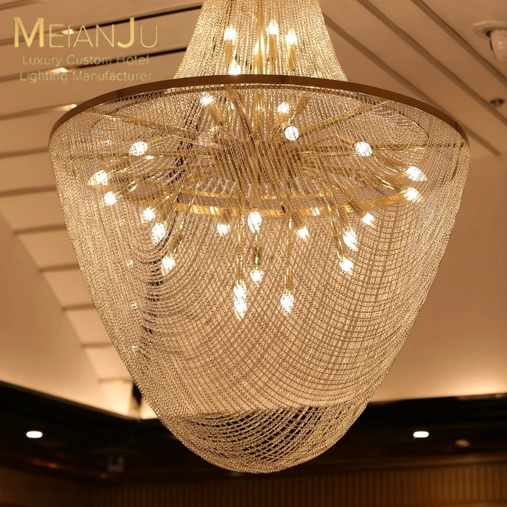 Zeal Lighting Hotel Lobby Hall Decorative Large Hanging Light Customized Long Gold Crystal Elegant Chandelier